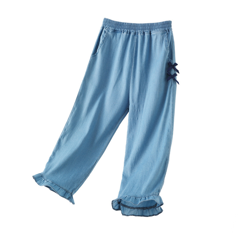어린이 텐셀 청바지 여름 얇은 Lyocell 통기성 스트레이트 팬츠 소녀 루즈 레이스 바지 아동복