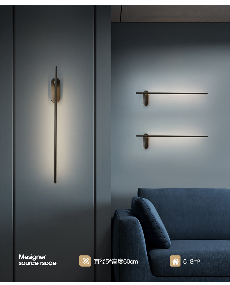 미니멀리스트 라이트 럭셔리 전체 구리 스트립 벽 램프 침실 회전 현대 미니멀 거실 디자이너 배경 벽 통로 벽 램프스토어 가기