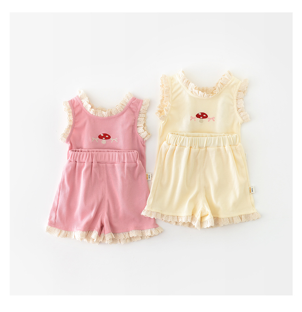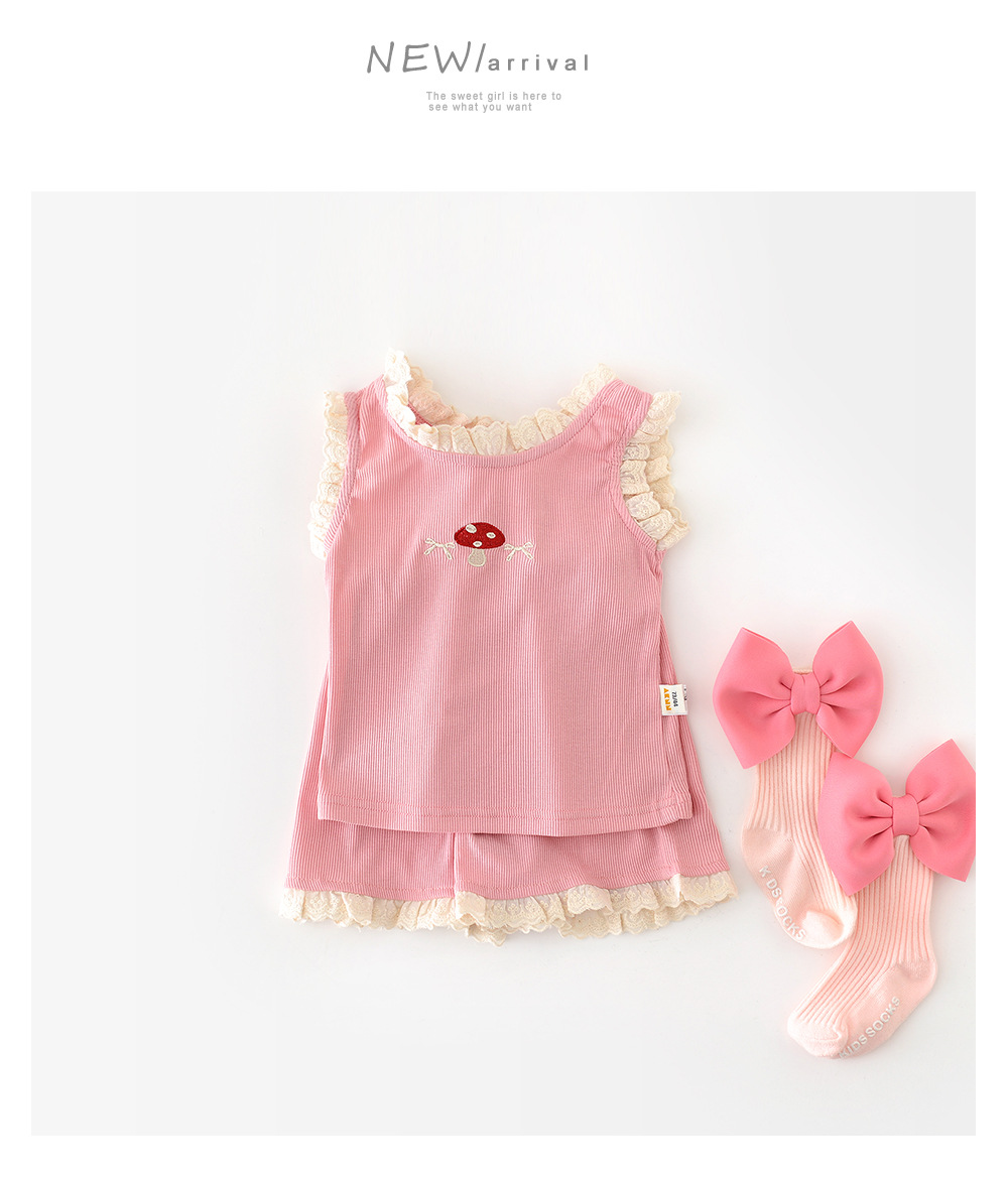 2025 여름 새로운 피트 레이스 레이스 투피스 세트 아기와 유아 한국 자수 조끼 세트 52095