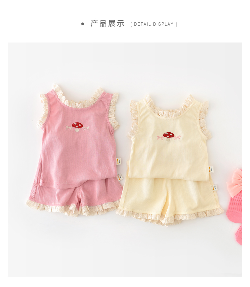 2025 여름 새로운 피트 레이스 레이스 투피스 세트 아기와 유아 한국 자수 조끼 세트 52095스토어 가기