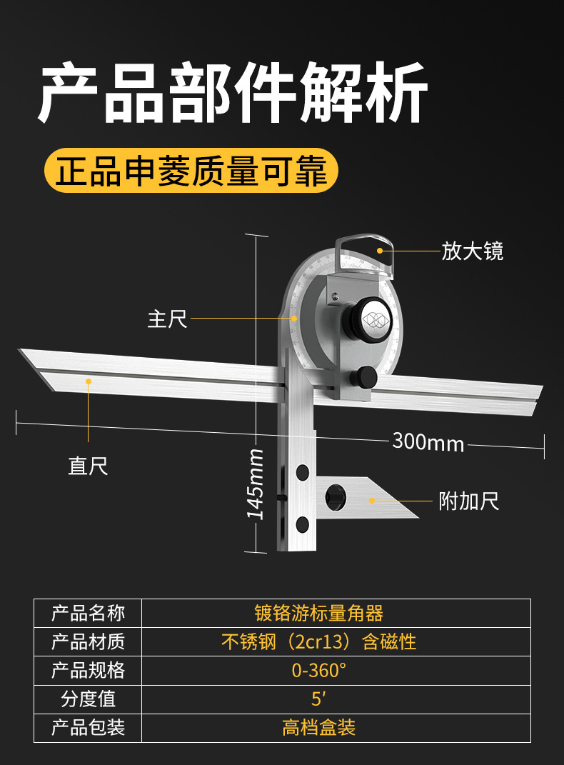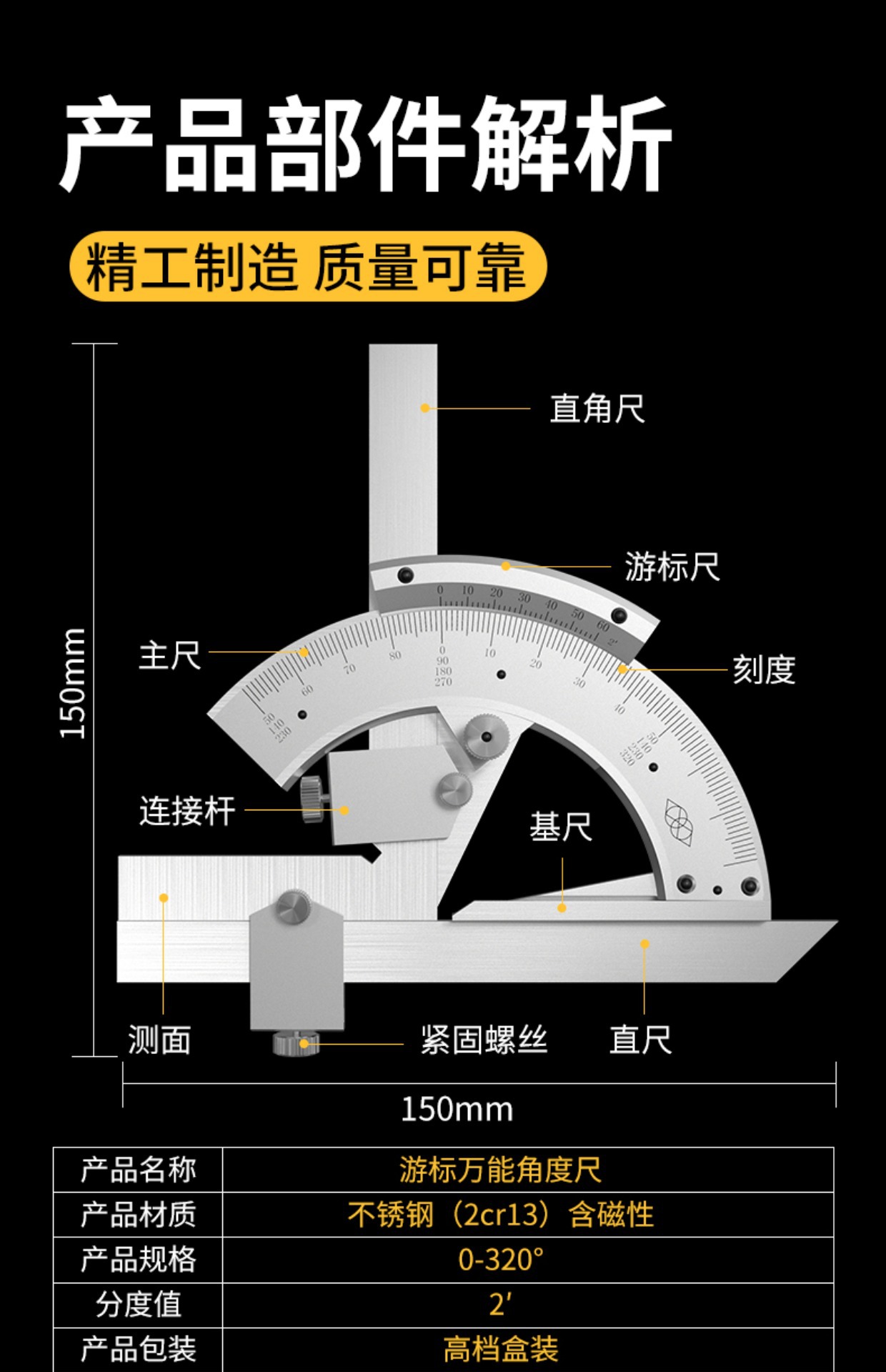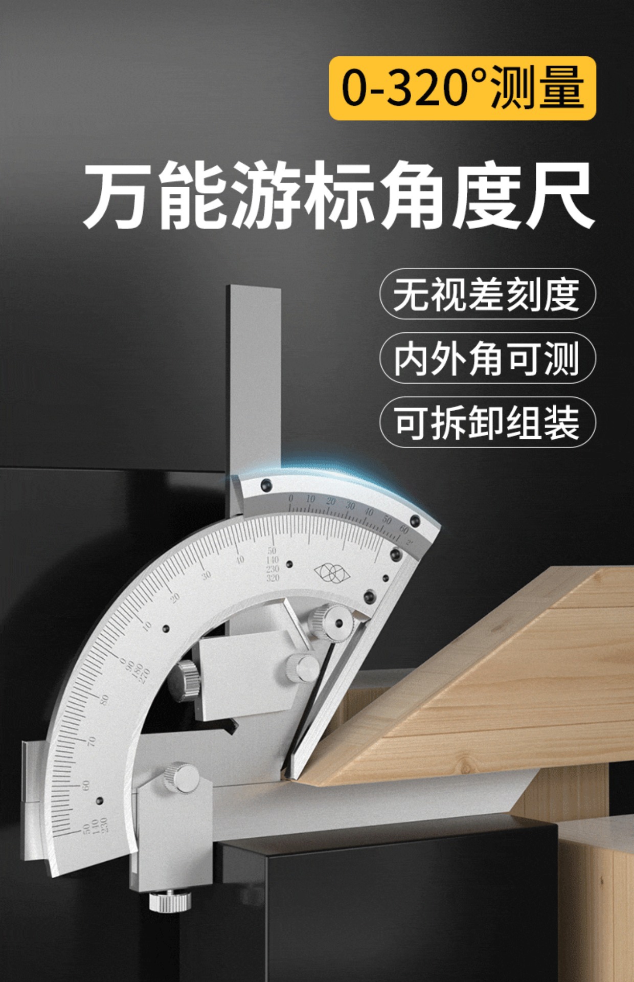 정품 상하이 Shenling 유니버설 앵글 통치자 0-320 도 비동기 각도 측정 계기 360 도 다기능 각 통치자스토어 가기
