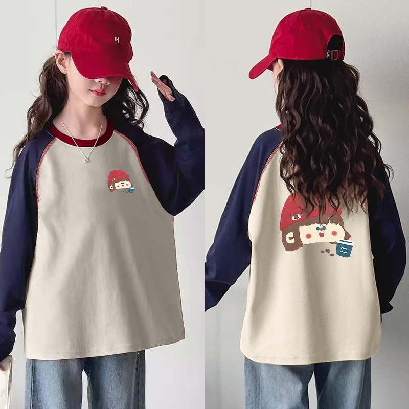 여아 래글런 긴팔 티셔츠 베이스 레이어 봄, 가을 스타일 대비 컬러 탑 초봄 중대형 아동 학생 베이스 레이어 T스토어 가기