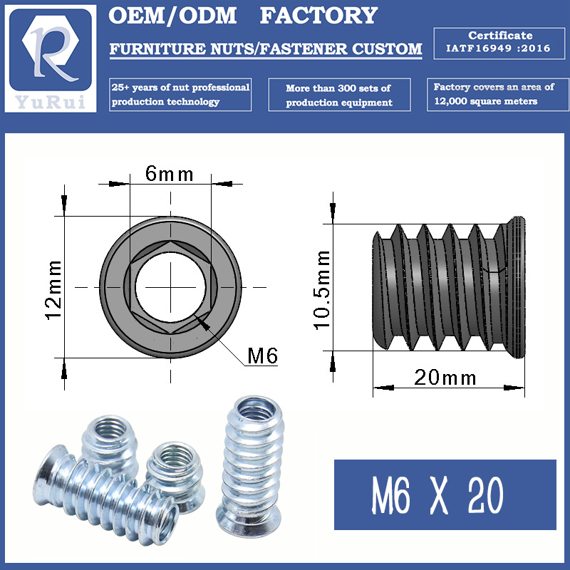 | M6*20 | M6 | 12 | 2.54 | 10.5 | 6 | 20 | |