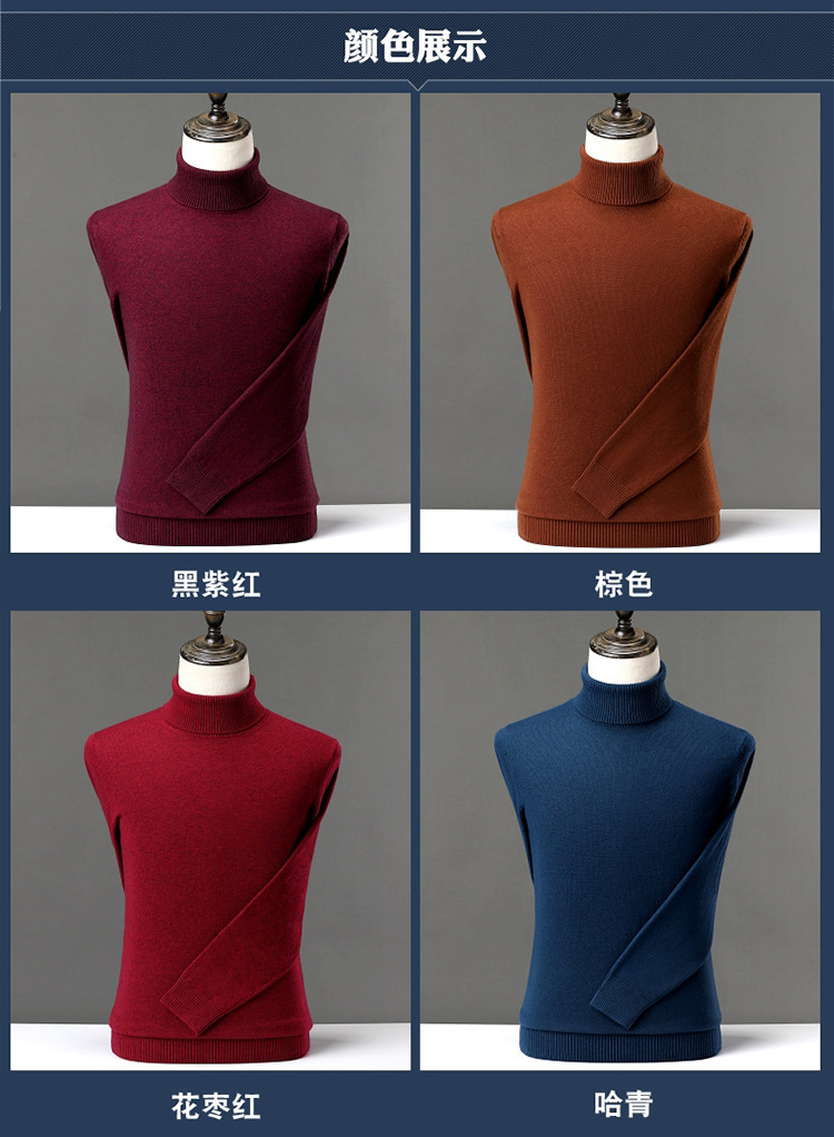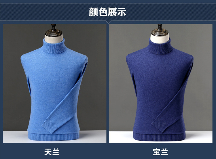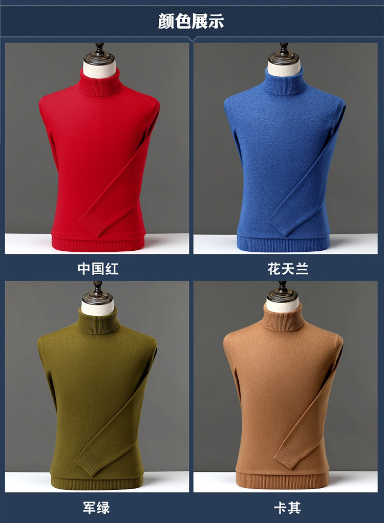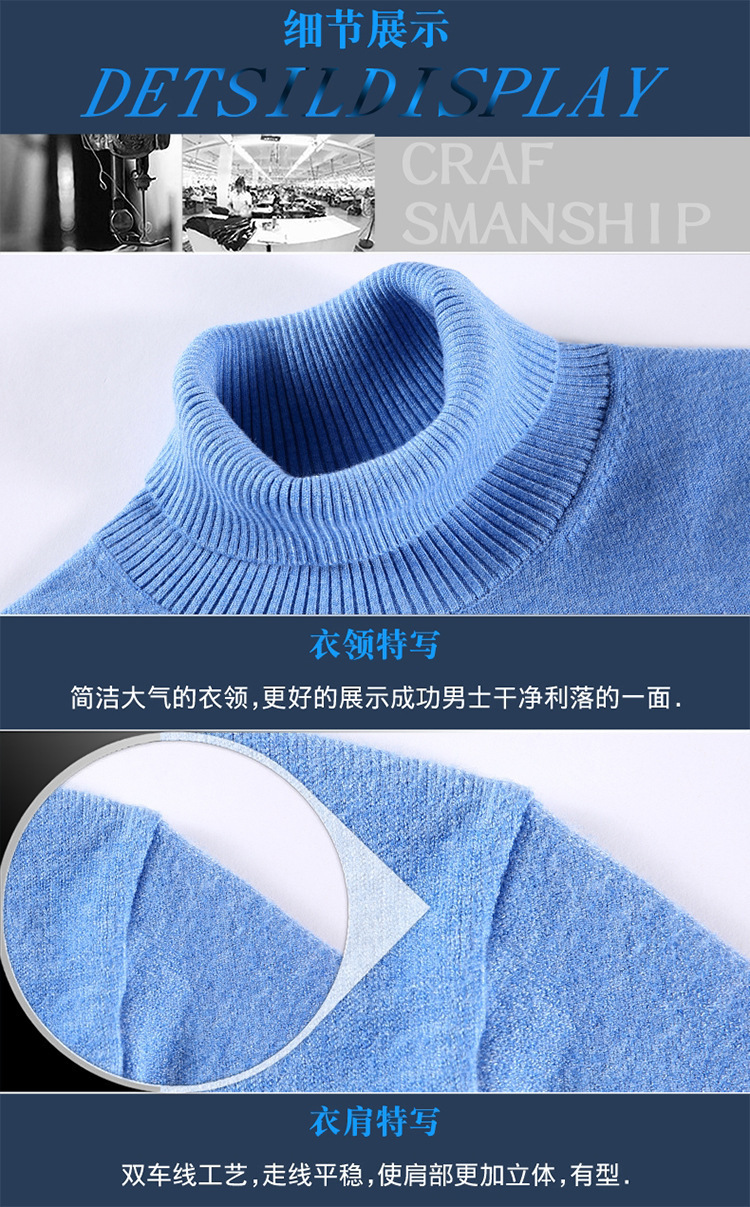 冬季新款仿针织衫男士高领色厚打底衫休闲宽松毛衣男一件代发