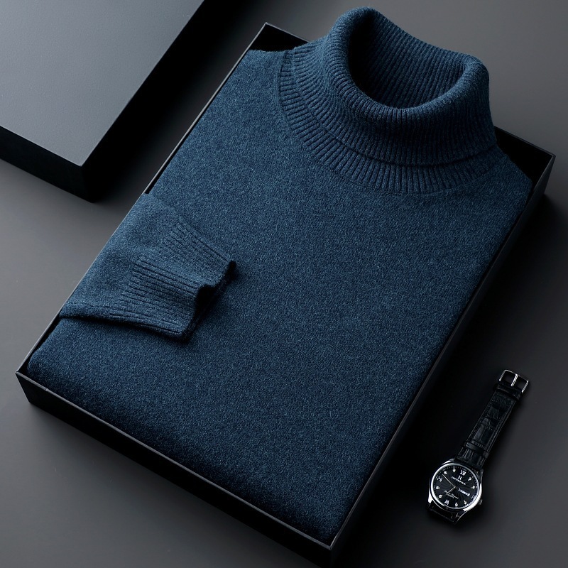 2025 겨울 새로운 모조 스웨터 남자 터틀넥 컬러 두꺼운 바닥 셔츠 캐주얼 루즈 스웨터 남자 드롭 배송
