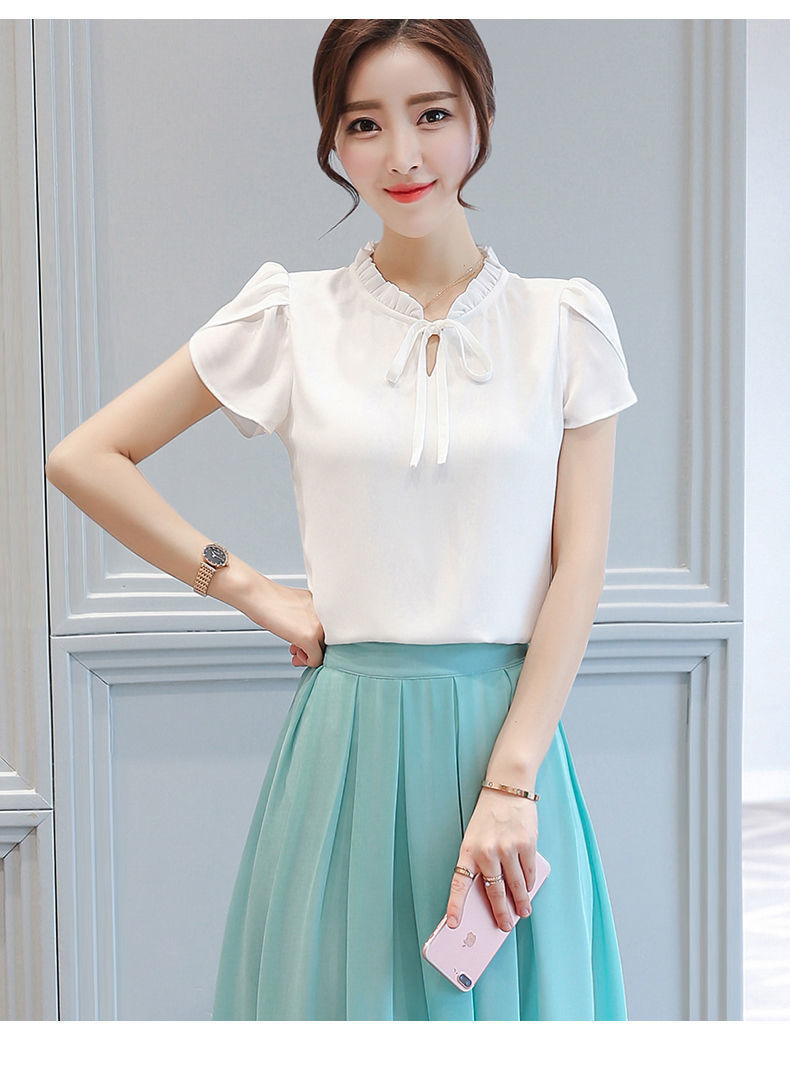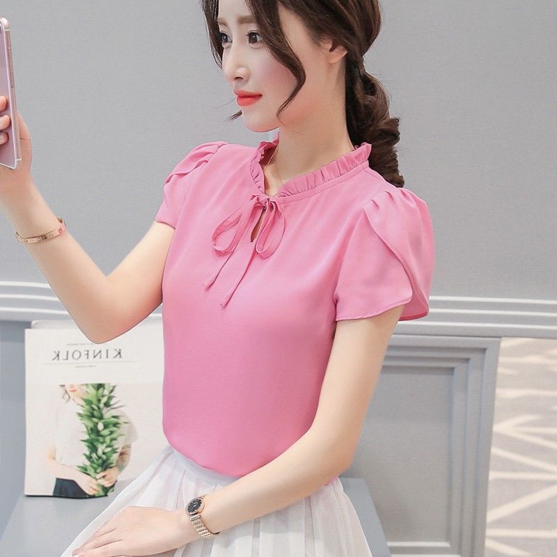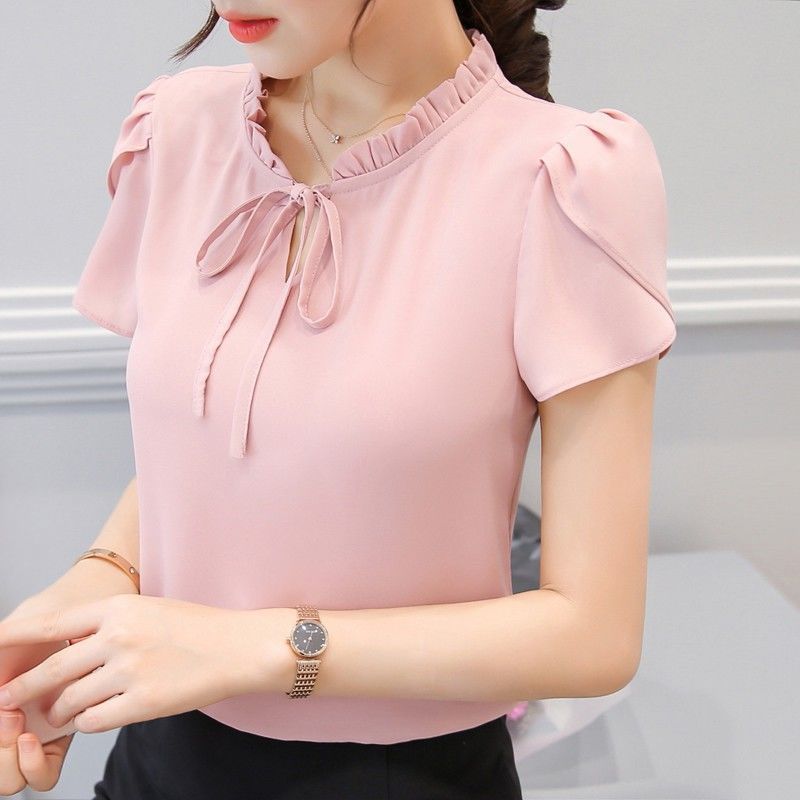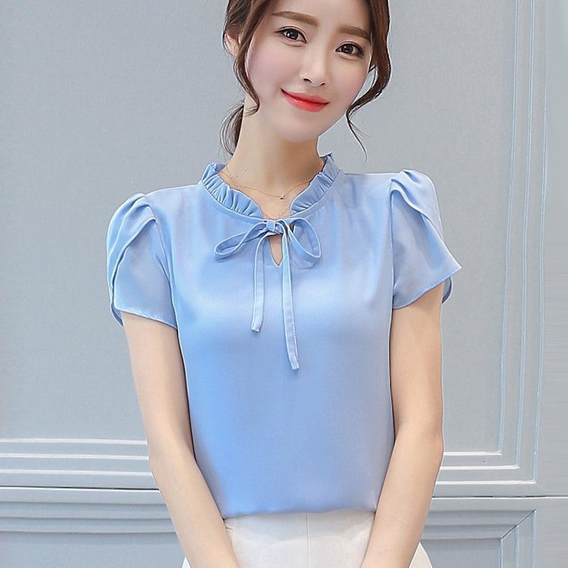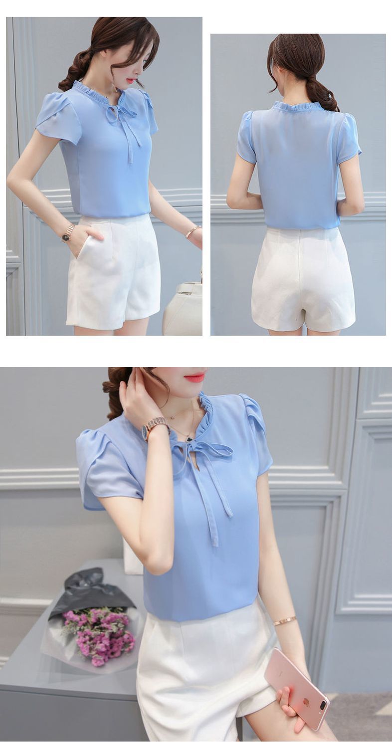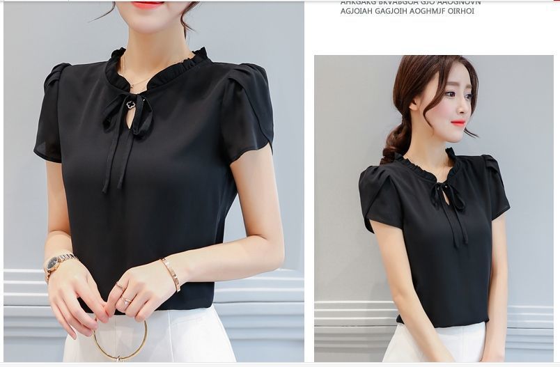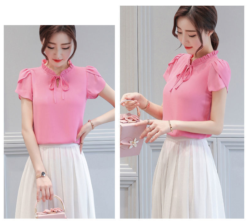 여성용 배를 덮는 쉬폰 셔츠 여름 반팔 2023 신작 통근 풀오버 슬림 전문 작업 셔츠 서양식 셔츠스토어 가기