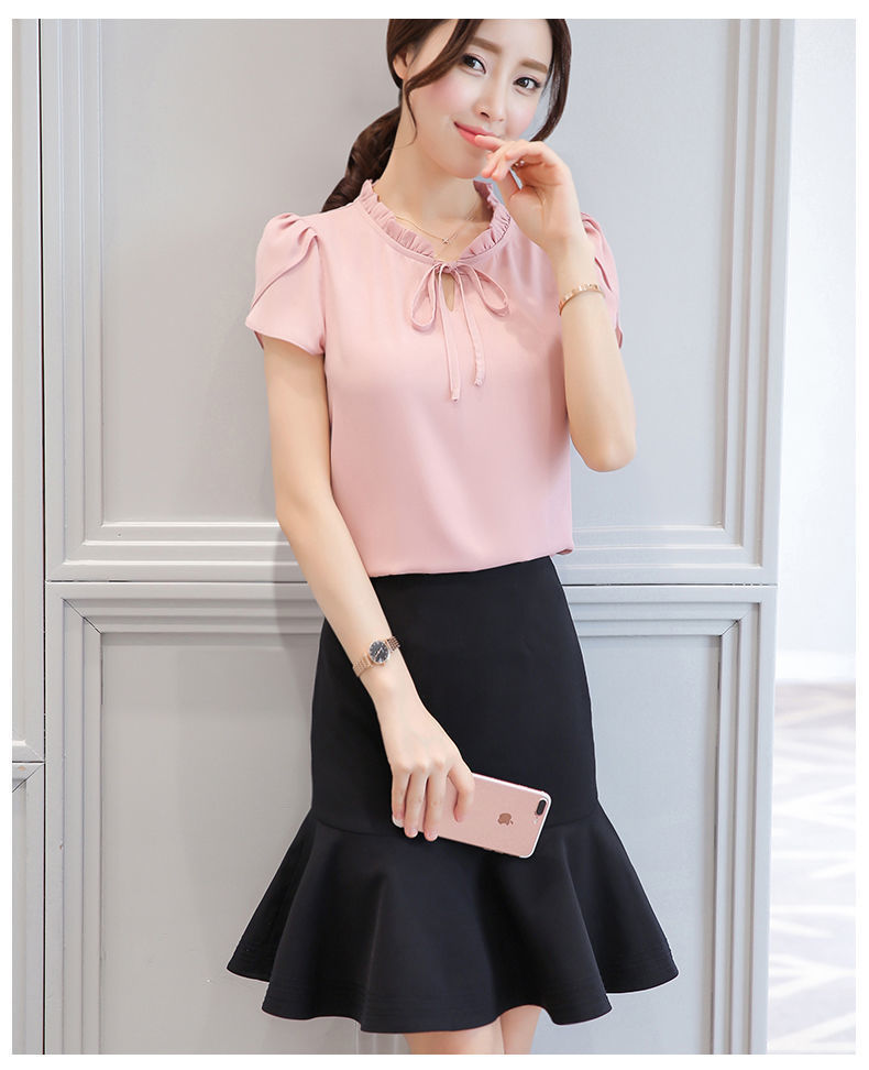 여성용 배를 덮는 쉬폰 셔츠 여름 반팔 2023 신작 통근 풀오버 슬림 전문 작업 셔츠 서양식 셔츠