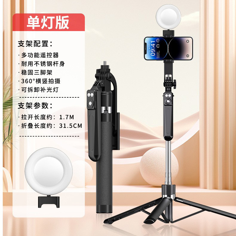 • 블랙 1.7m 손떨림 방지 셀카봉 충전 블루투스 리모컨 + 작은 사각형 조명 1개