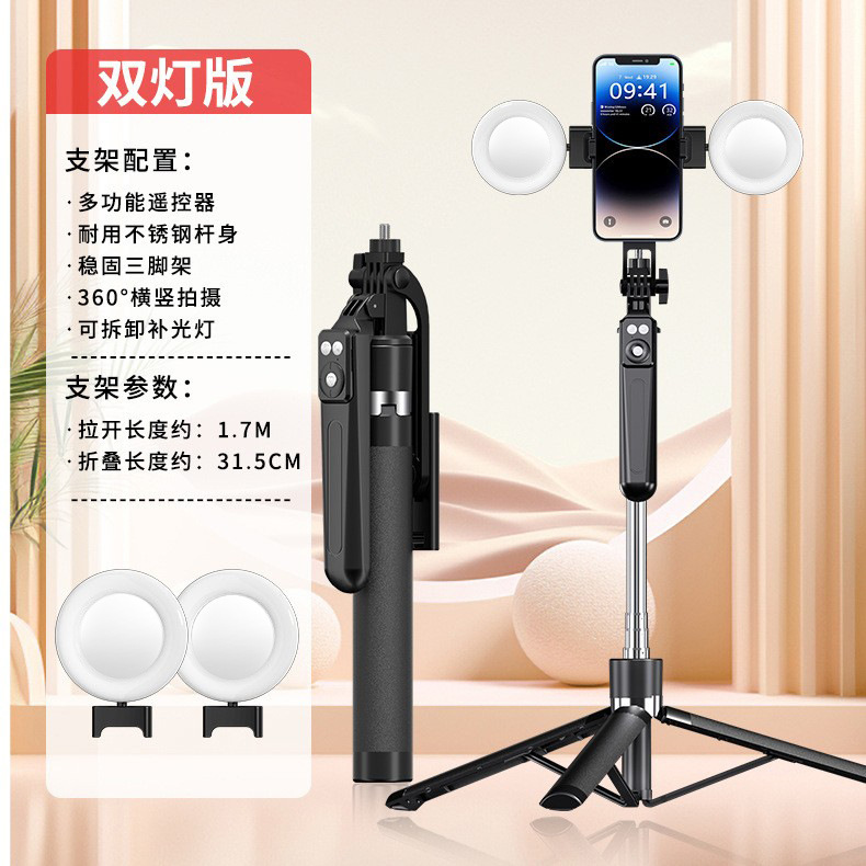 • 블랙 1.7m 손떨림 방지 셀카봉 충전 블루투스 리모컨 + 작은 사각형 조명 2개