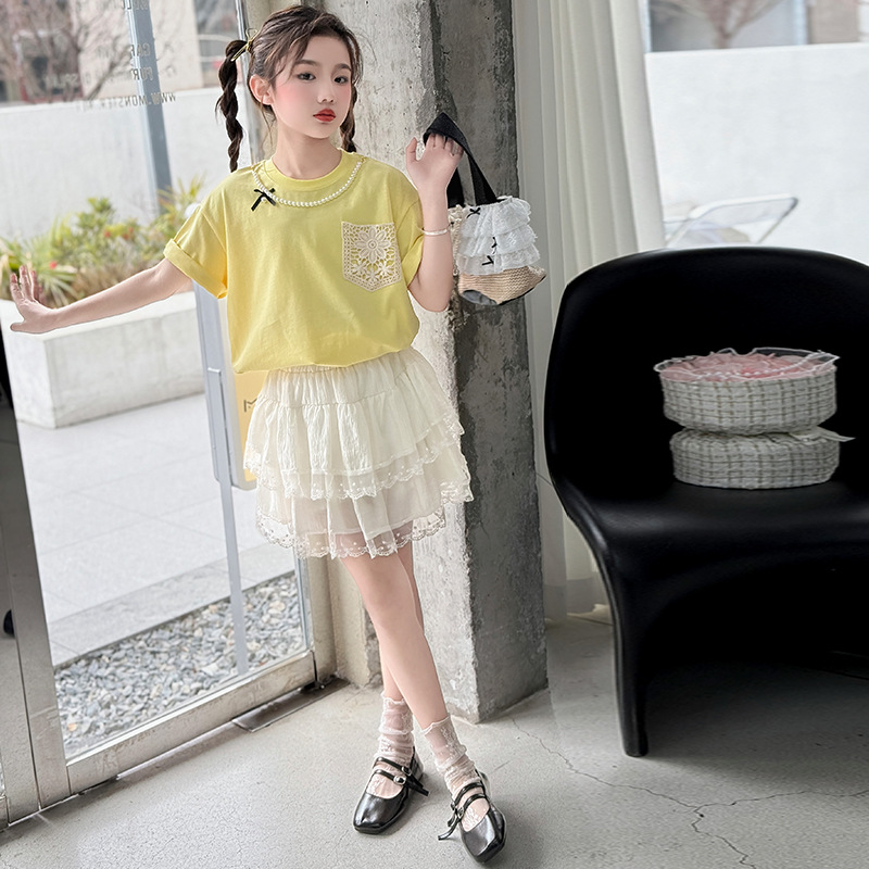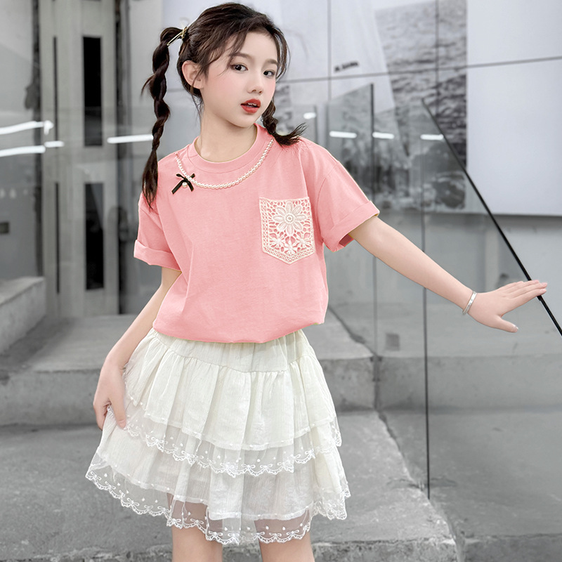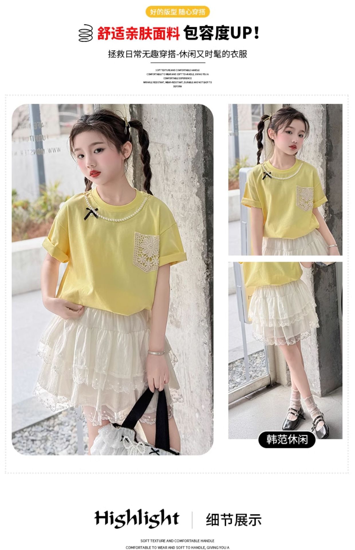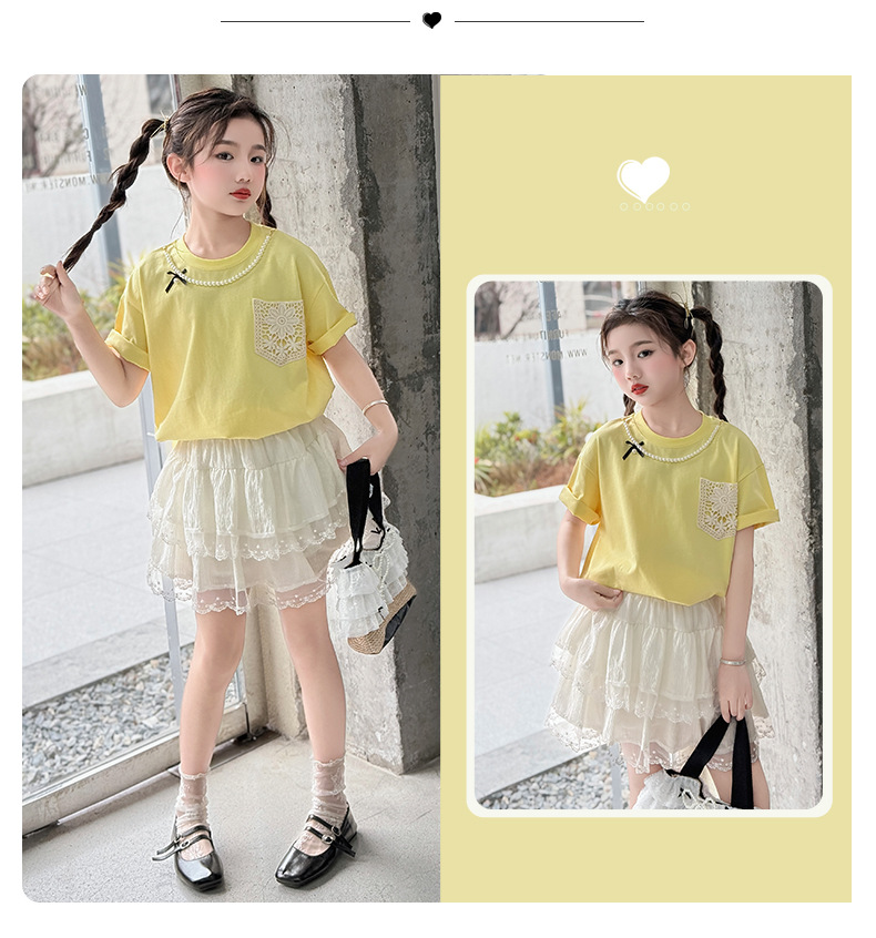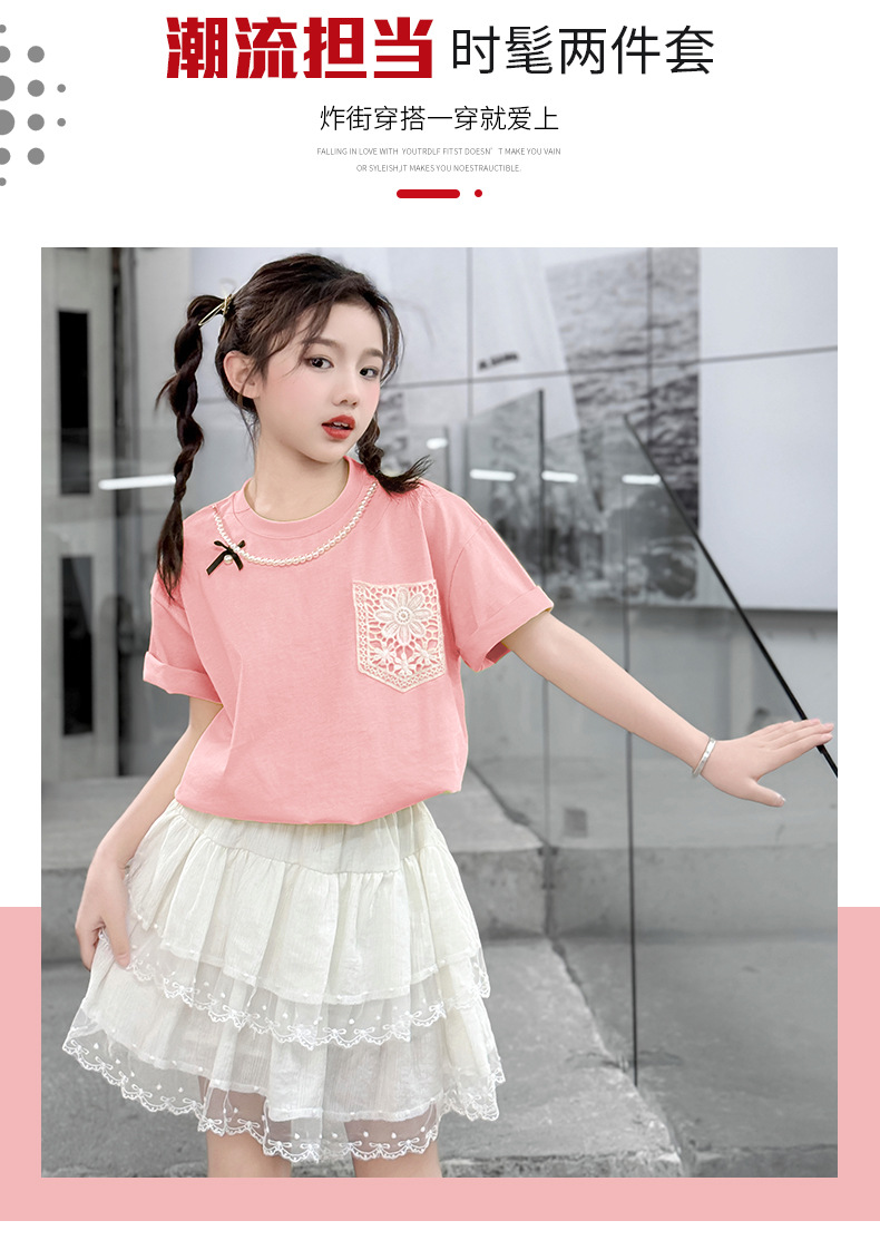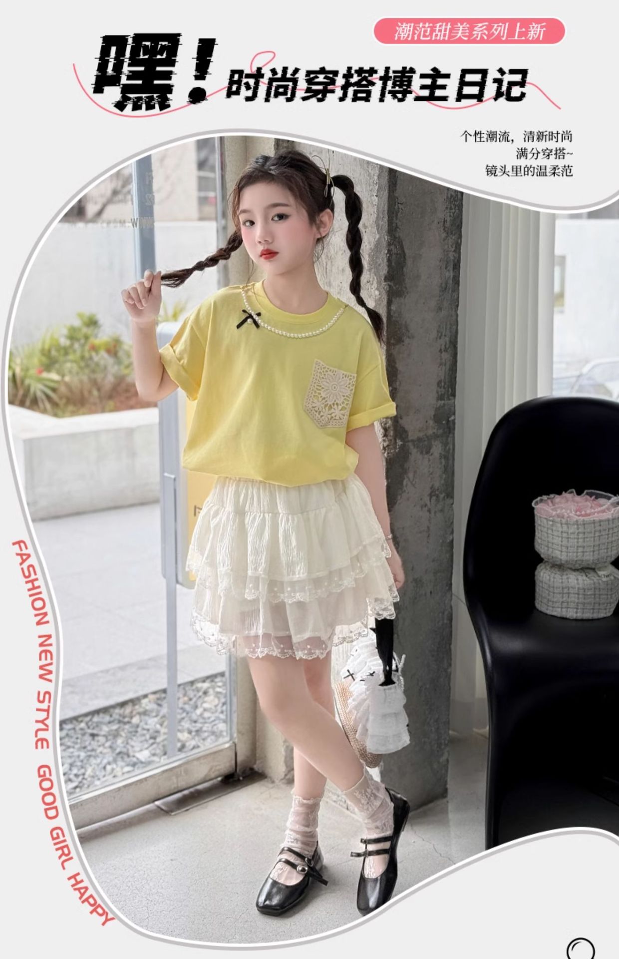 소녀의 치마 세트 2025 새로운 스타일 소녀의 여름 달콤한 착용 소녀의 큰 소년의 아름다운 여름 원피스 투피스 세트