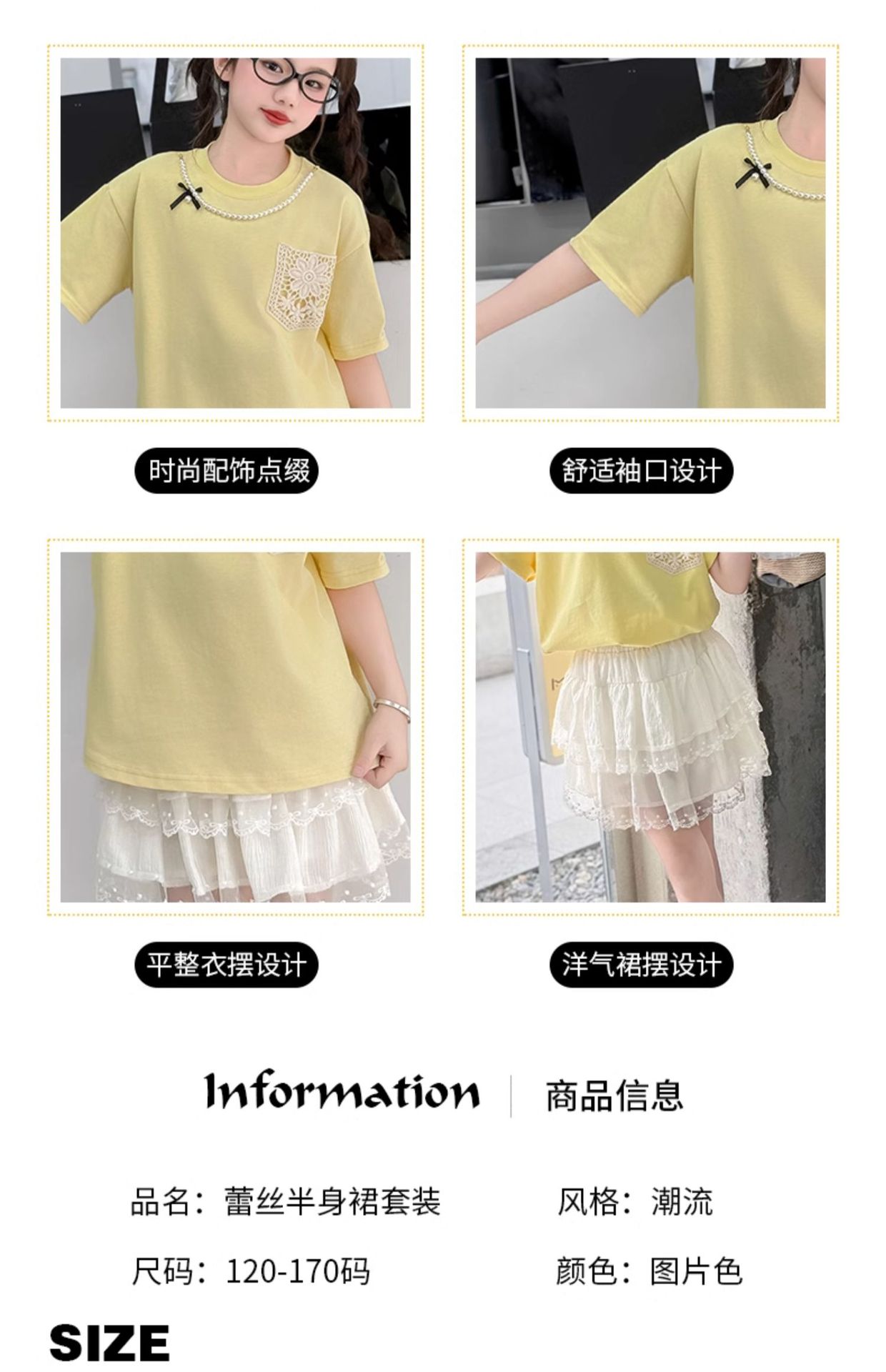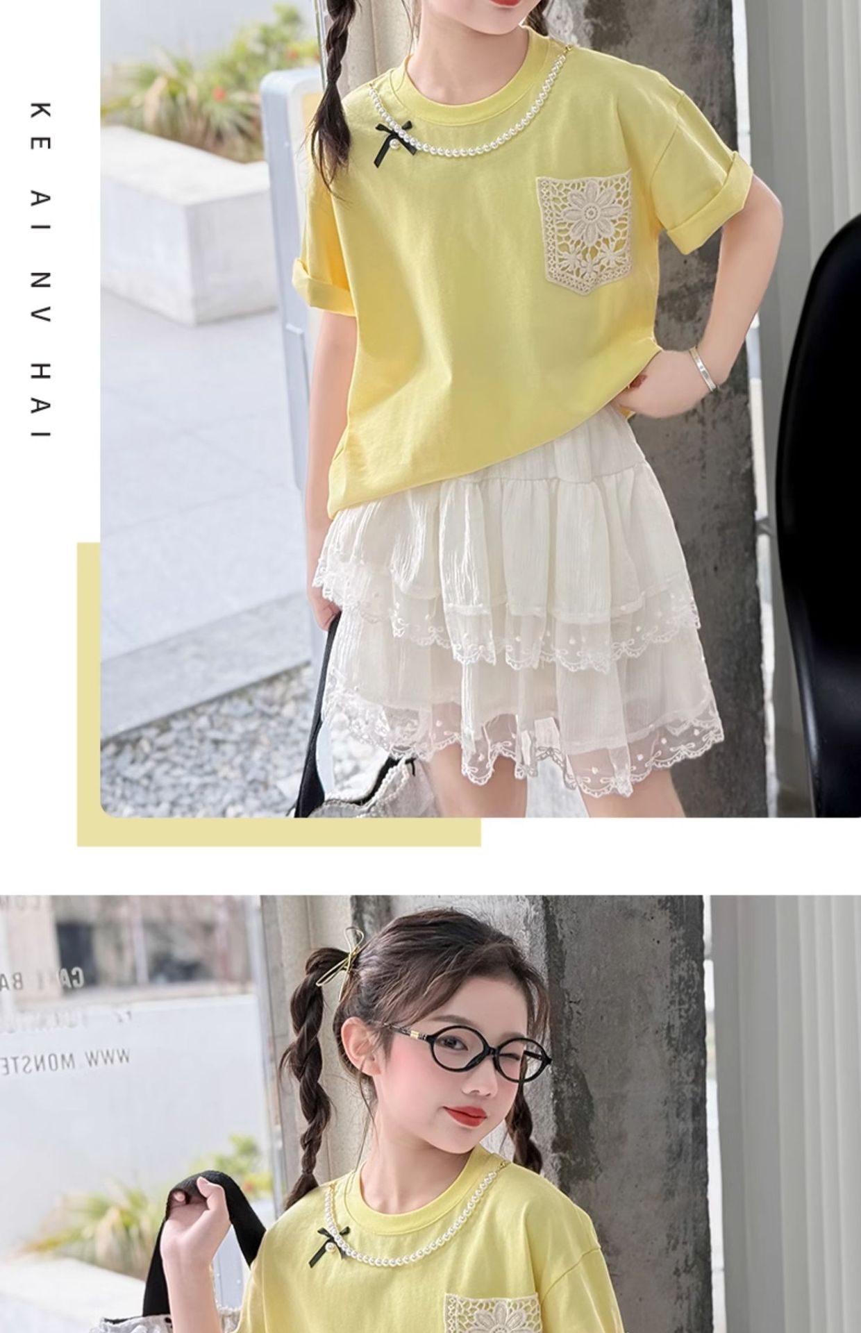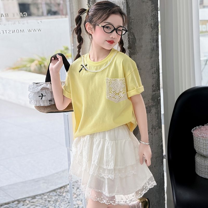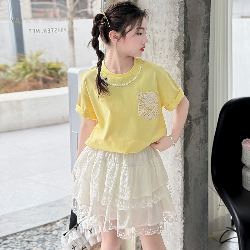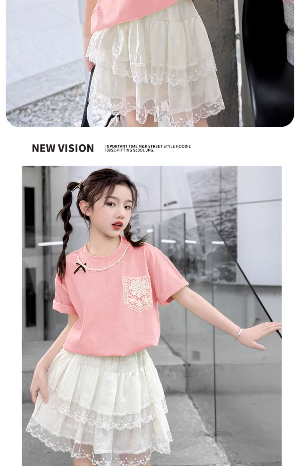 소녀의 치마 세트 2025 새로운 스타일 소녀의 여름 달콤한 착용 소녀의 큰 소년의 아름다운 여름 원피스 투피스 세트