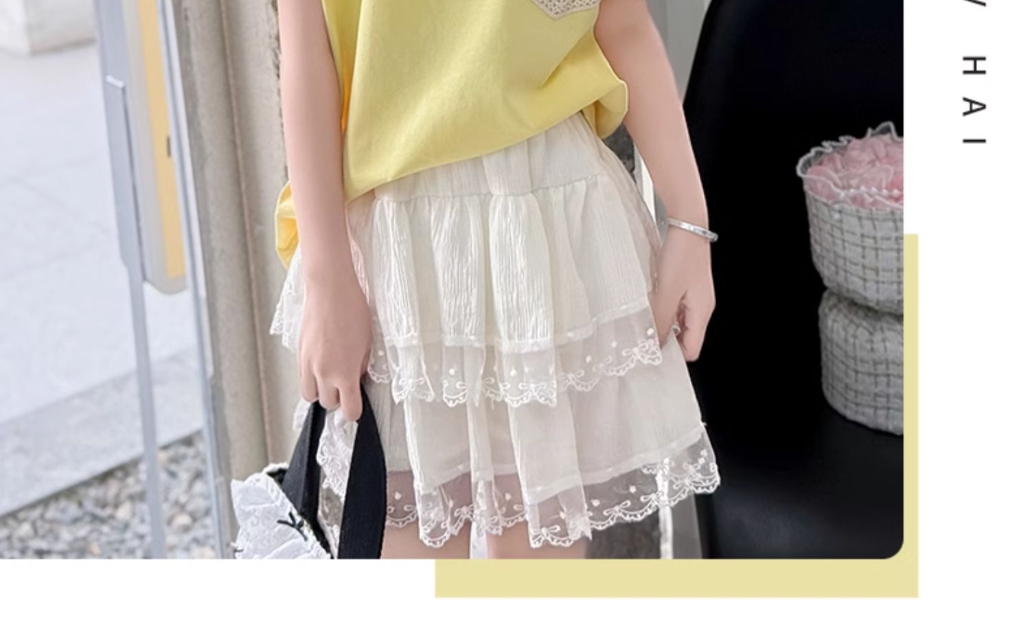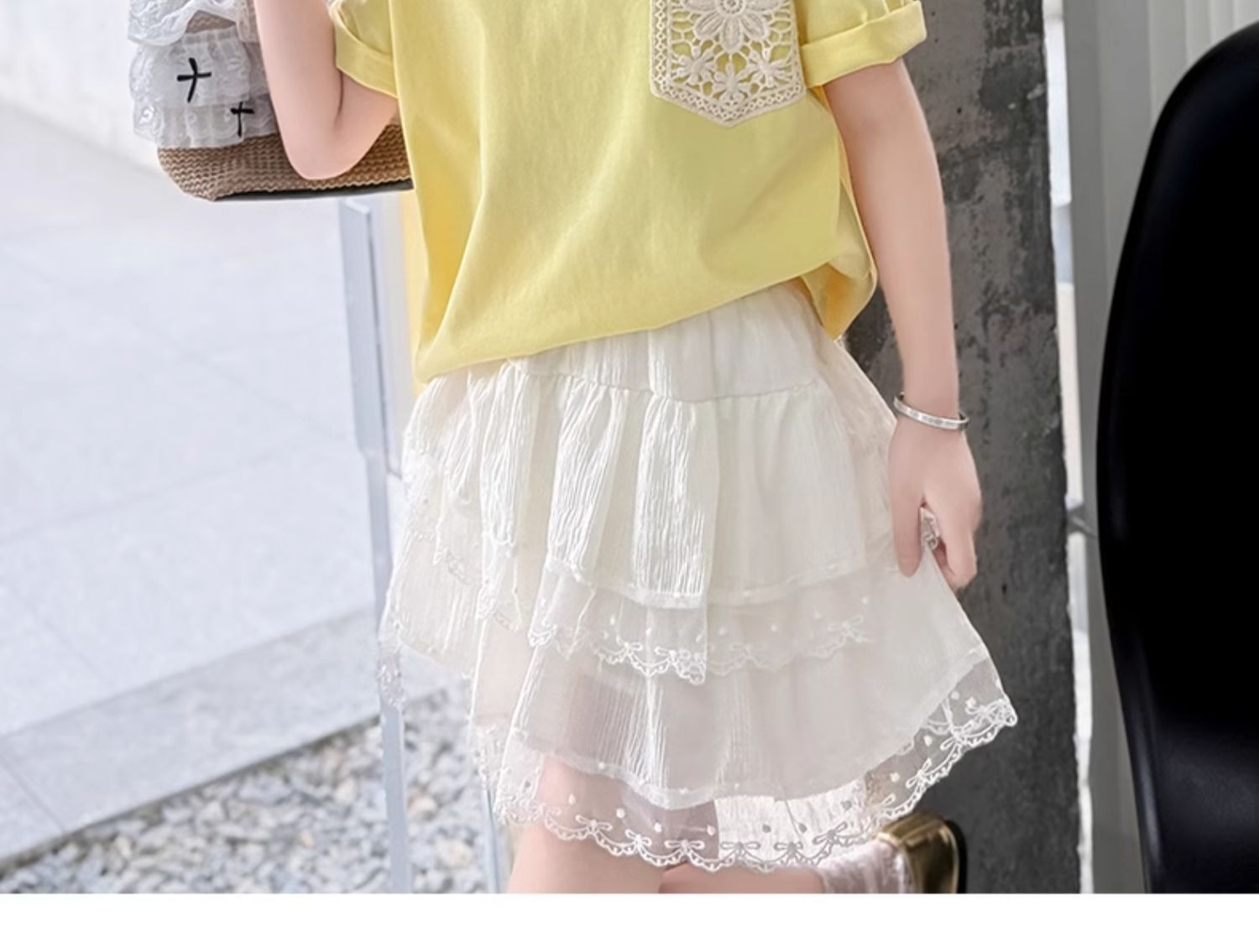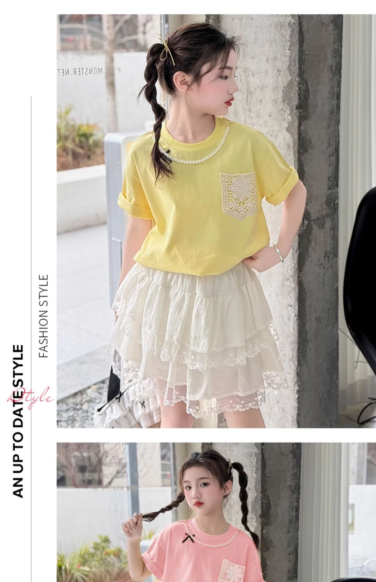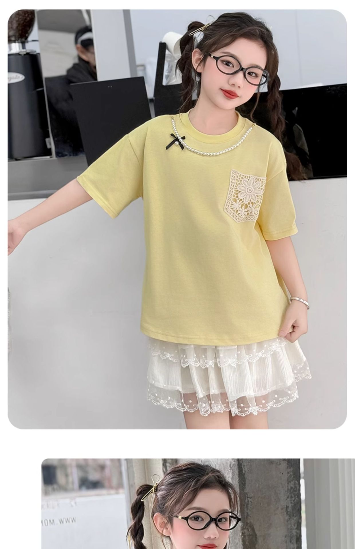 소녀의 치마 세트 2025 새로운 스타일 소녀의 여름 달콤한 착용 소녀의 큰 소년의 아름다운 여름 원피스 투피스 세트