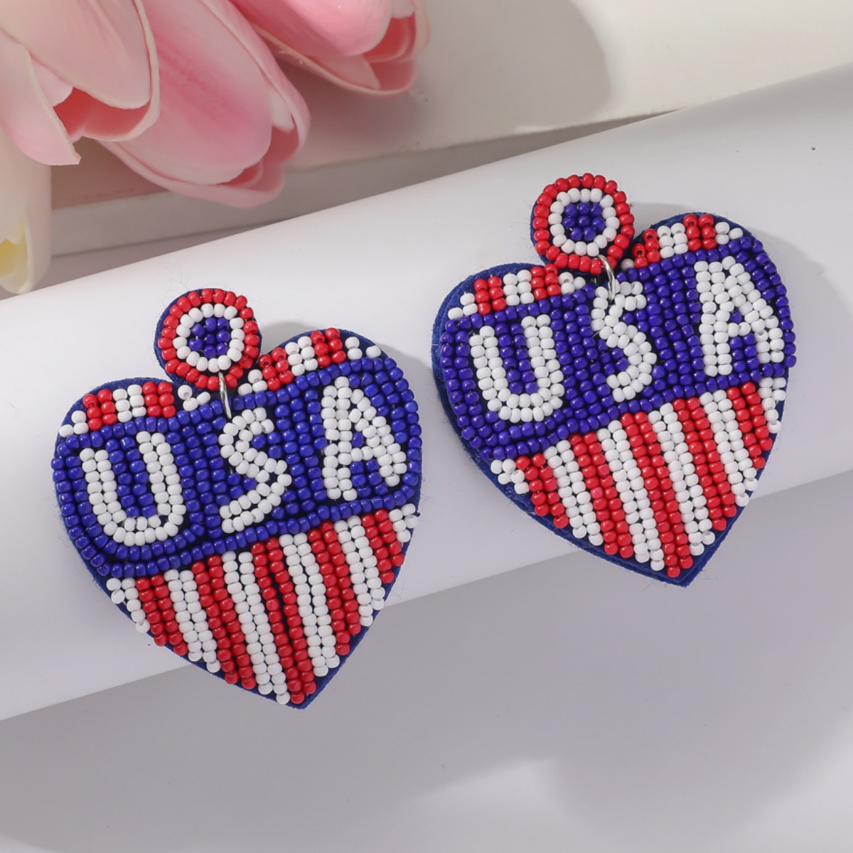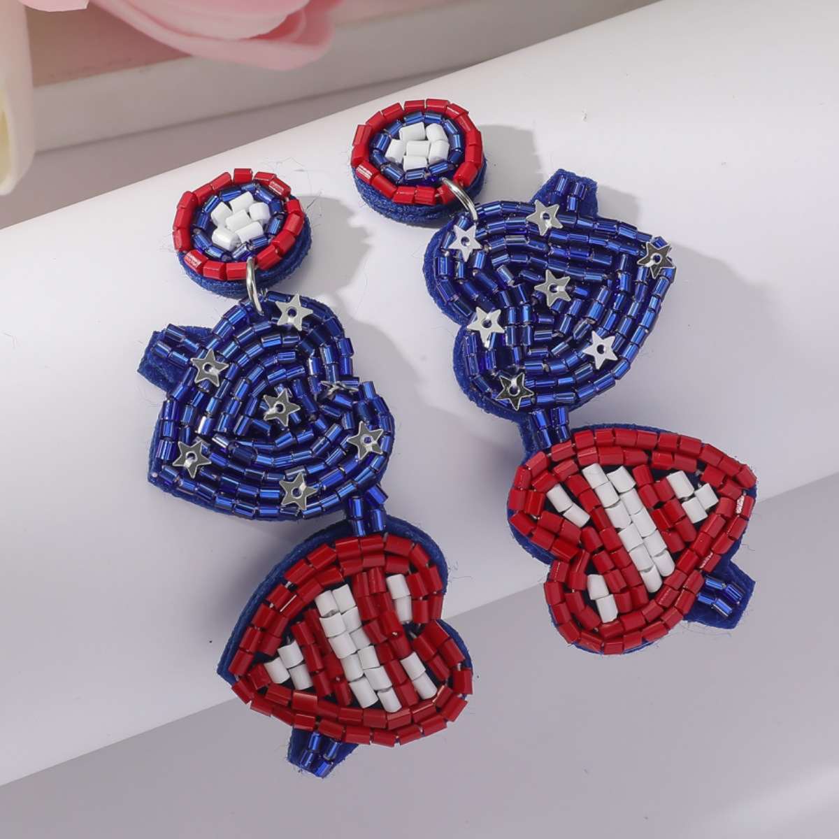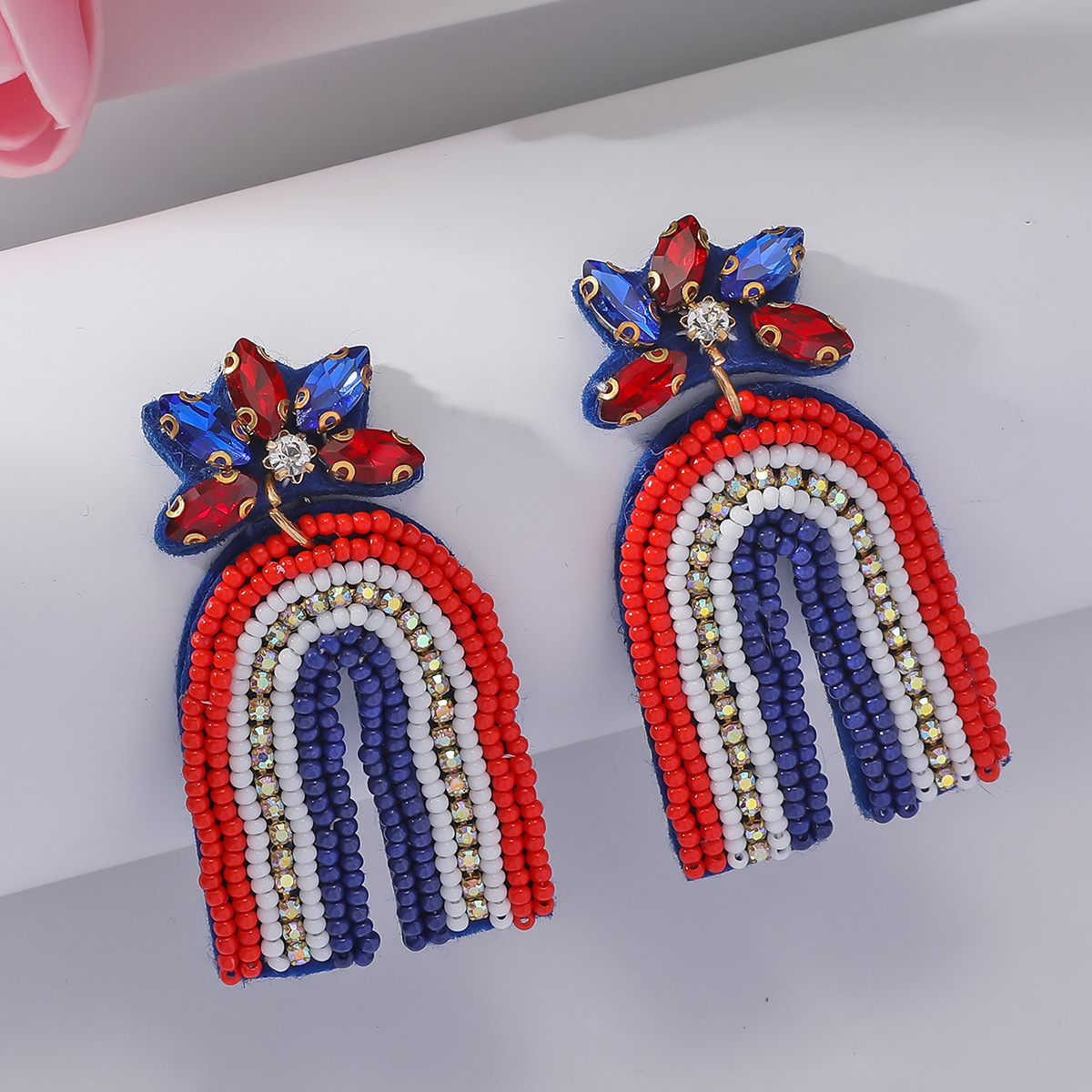 유럽과 미국의 국경 간 미국 독립 기념일 수제 쌀 구슬으로 짠 귀걸이 여성 틈새 패션 귀걸이 창의적인 새로운 귀걸이