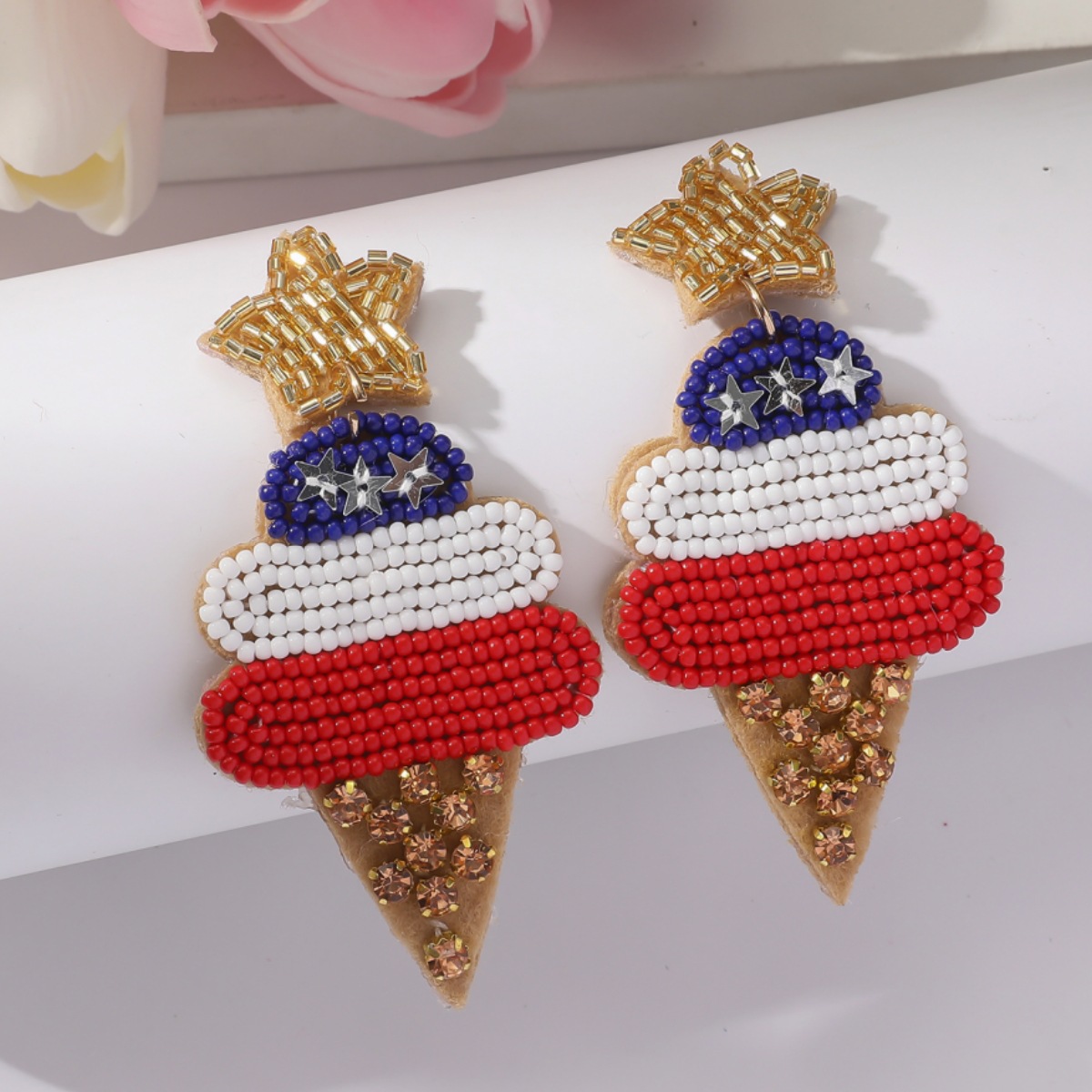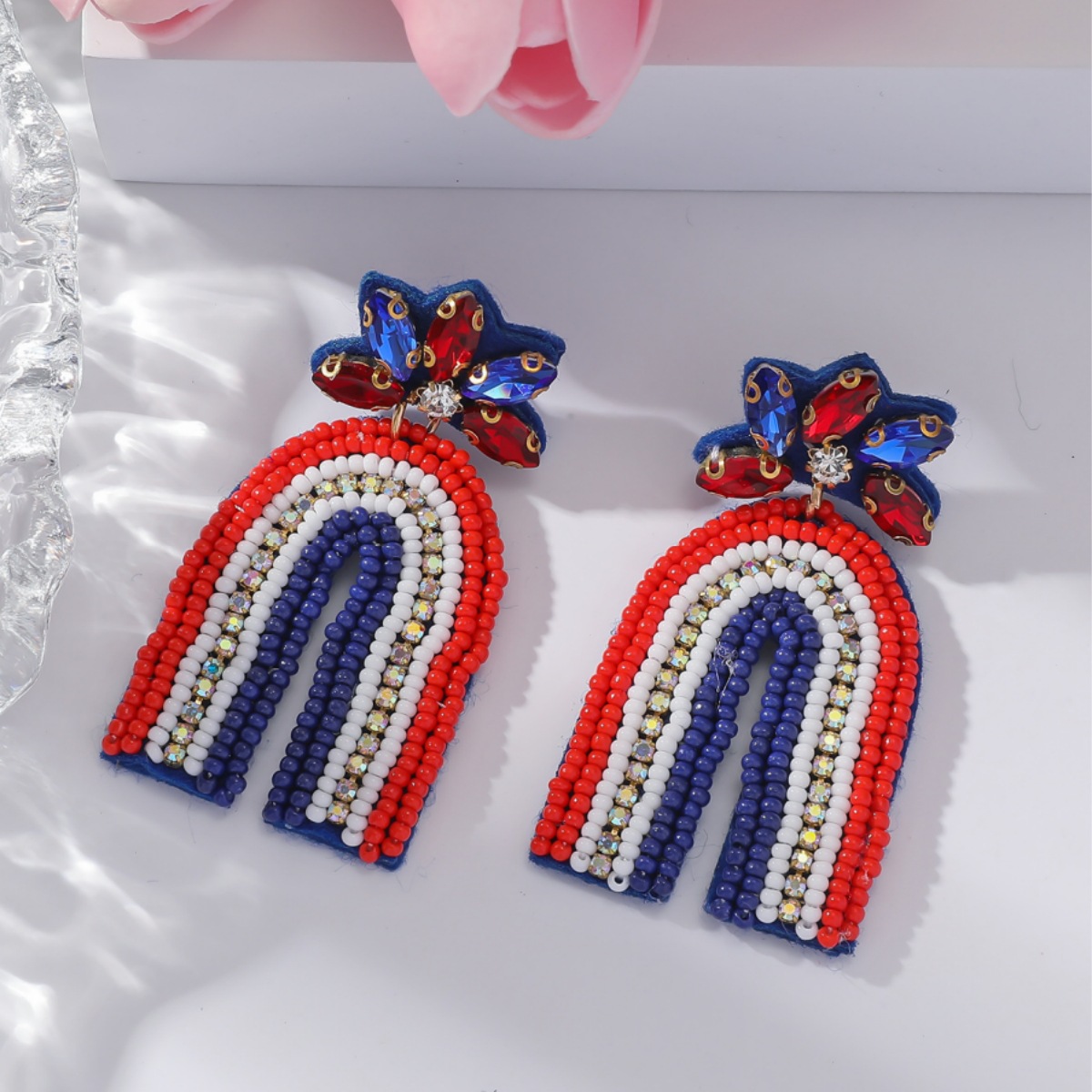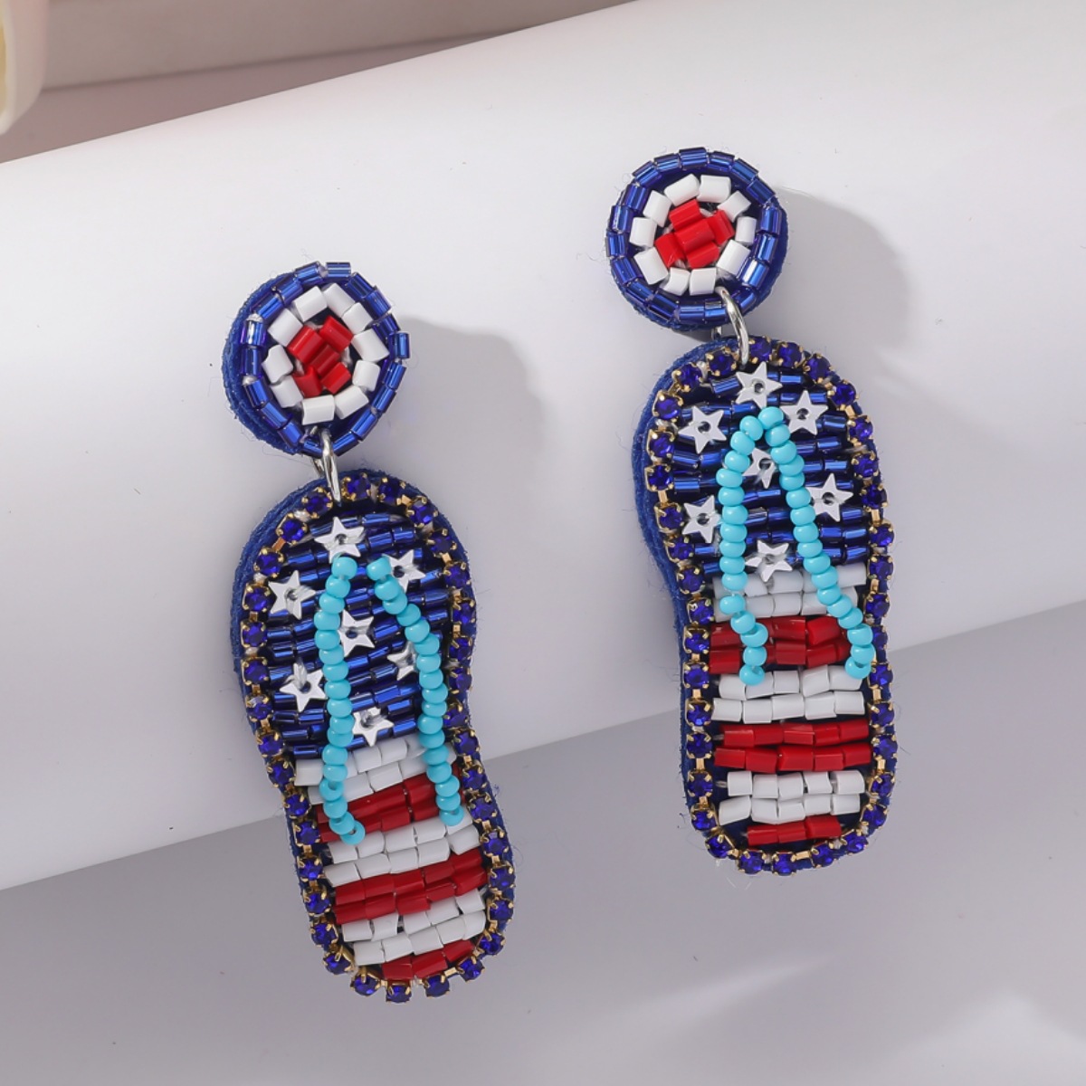 유럽과 미국의 국경 간 미국 독립 기념일 수제 쌀 구슬으로 짠 귀걸이 여성 틈새 패션 귀걸이 창의적인 새로운 귀걸이