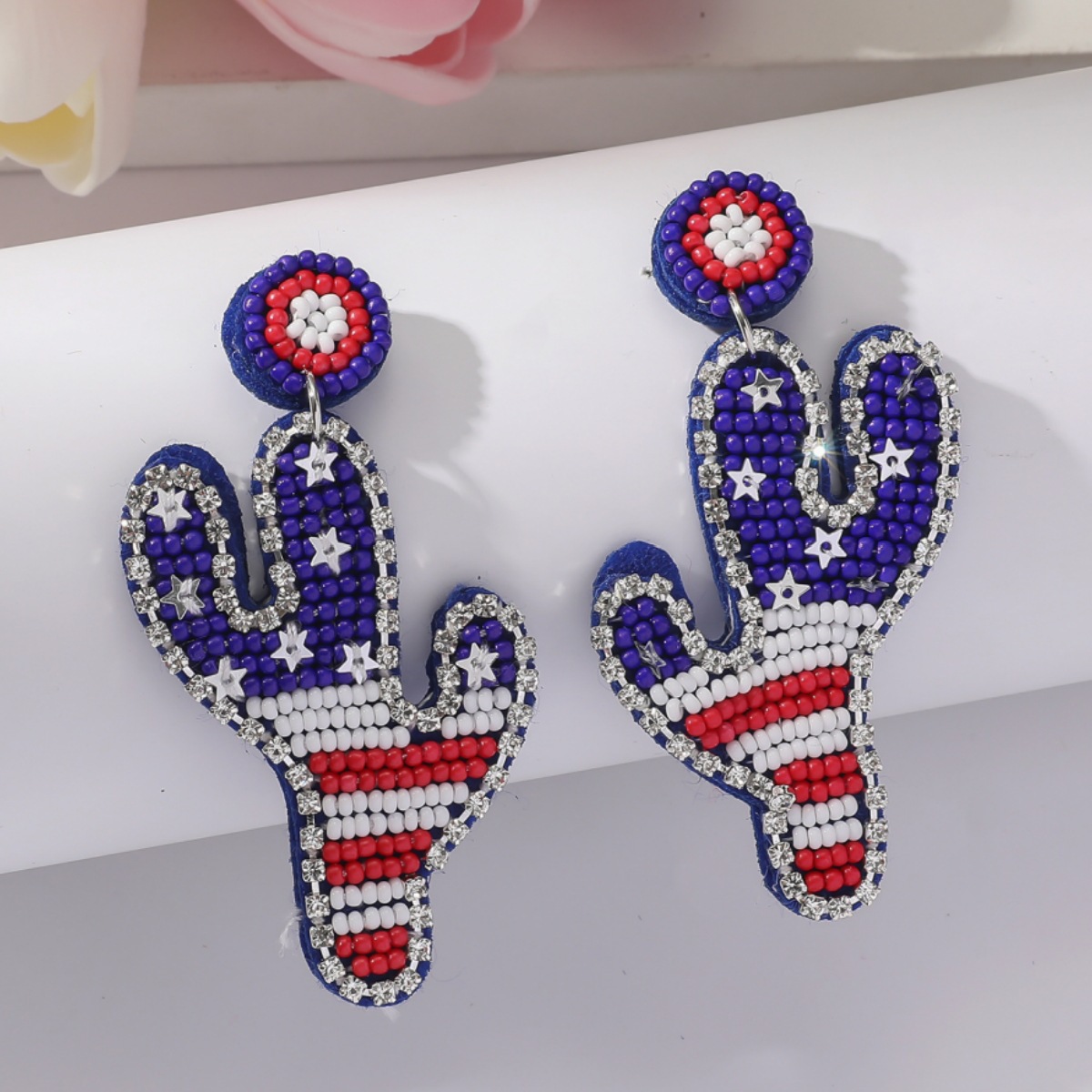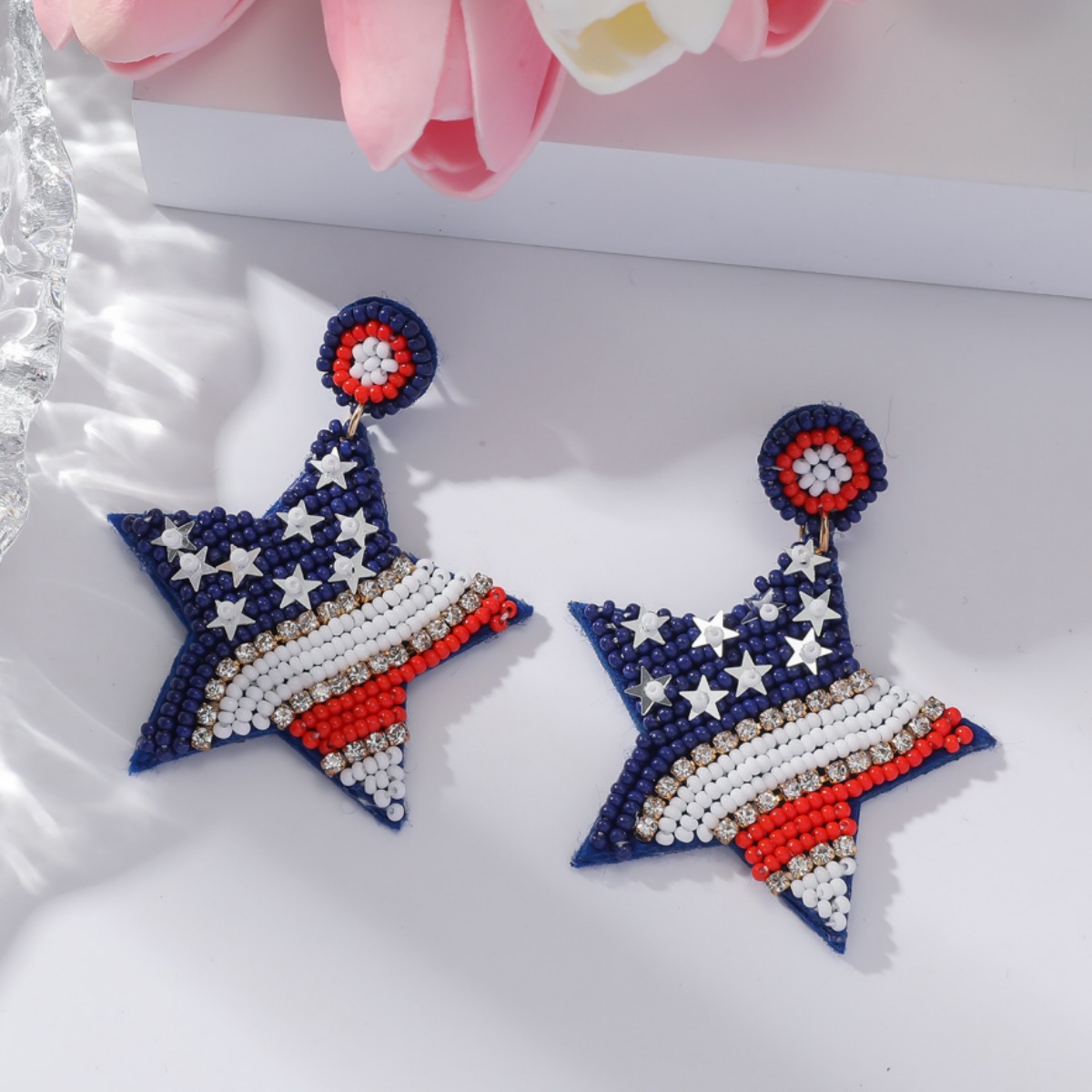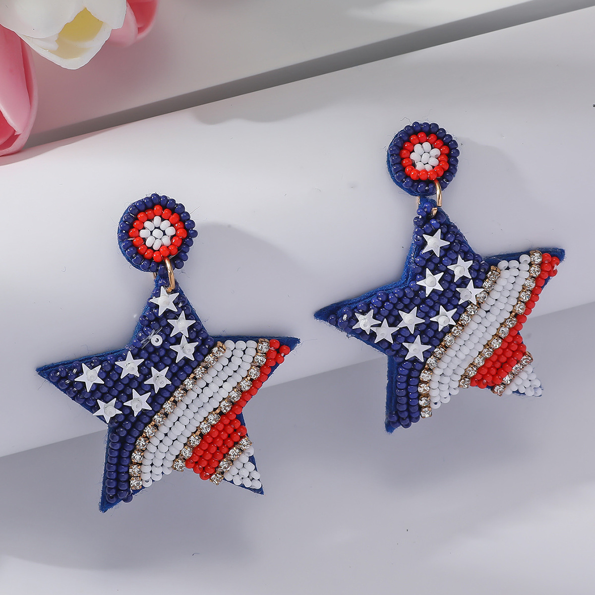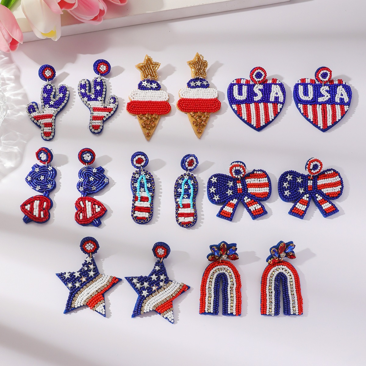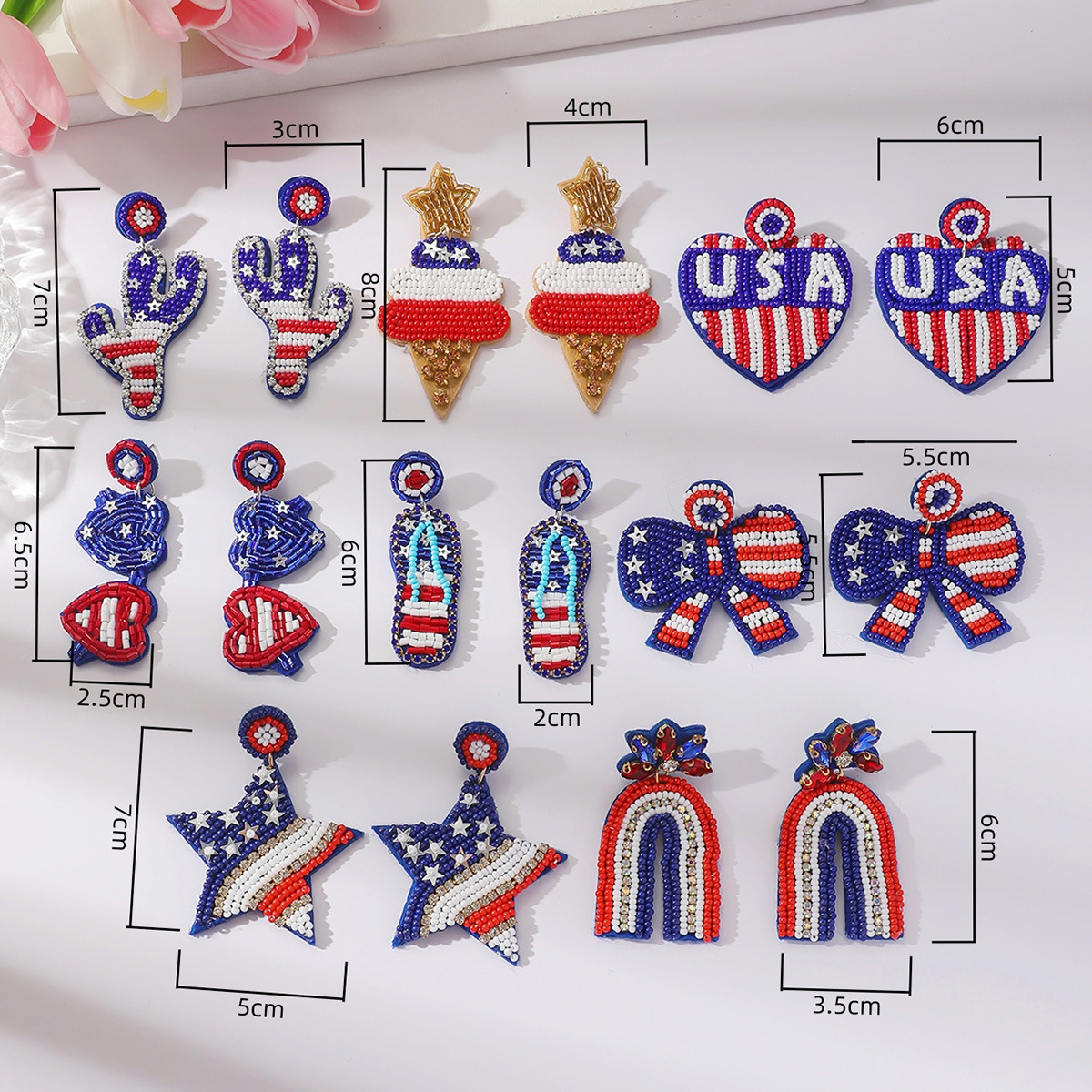 유럽과 미국의 국경 간 미국 독립 기념일 수제 쌀 구슬으로 짠 귀걸이 여성 틈새 패션 귀걸이 창의적인 새로운 귀걸이스토어 가기