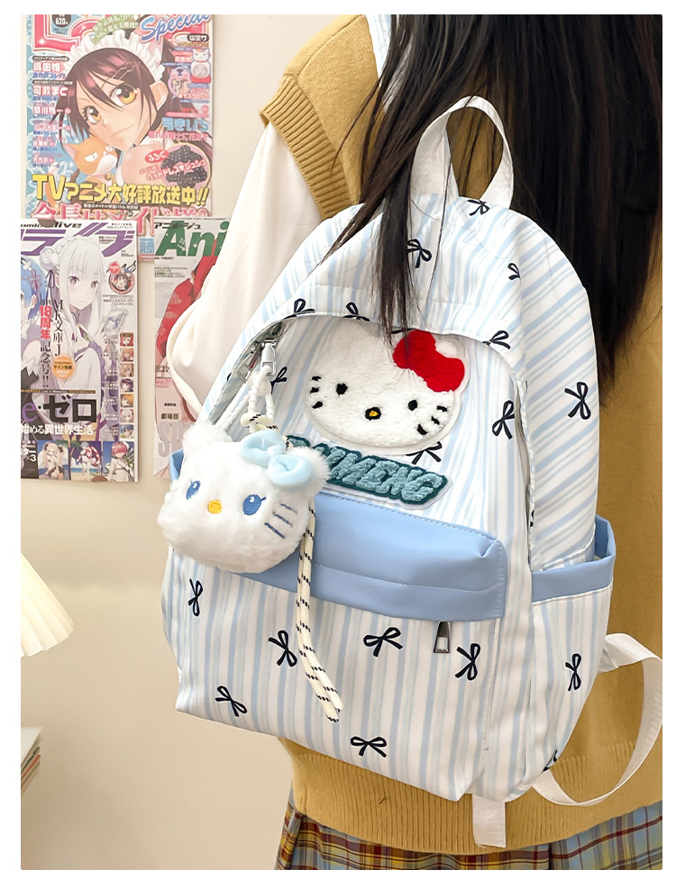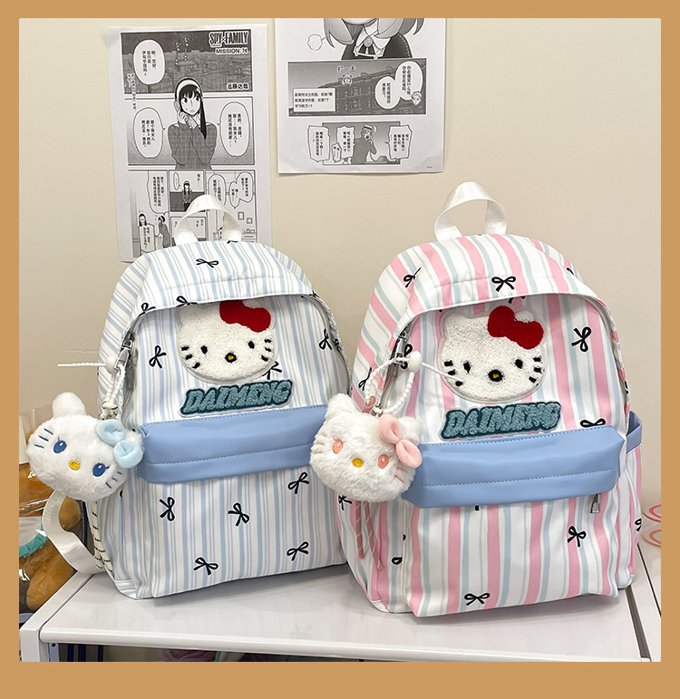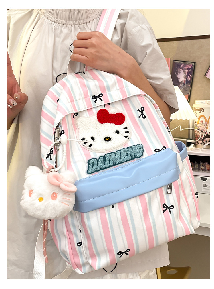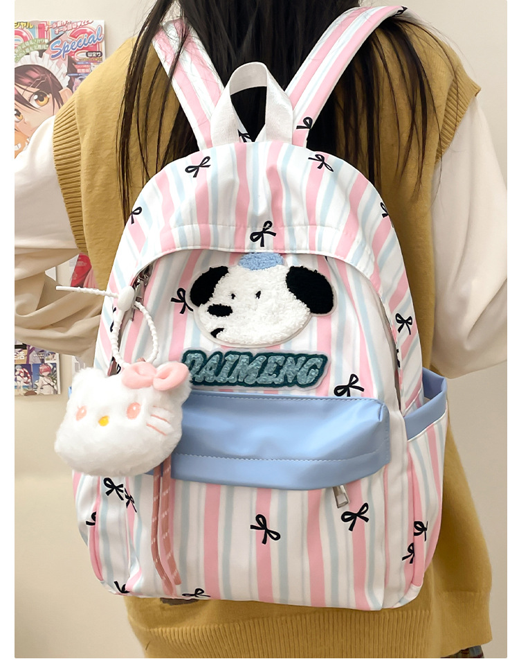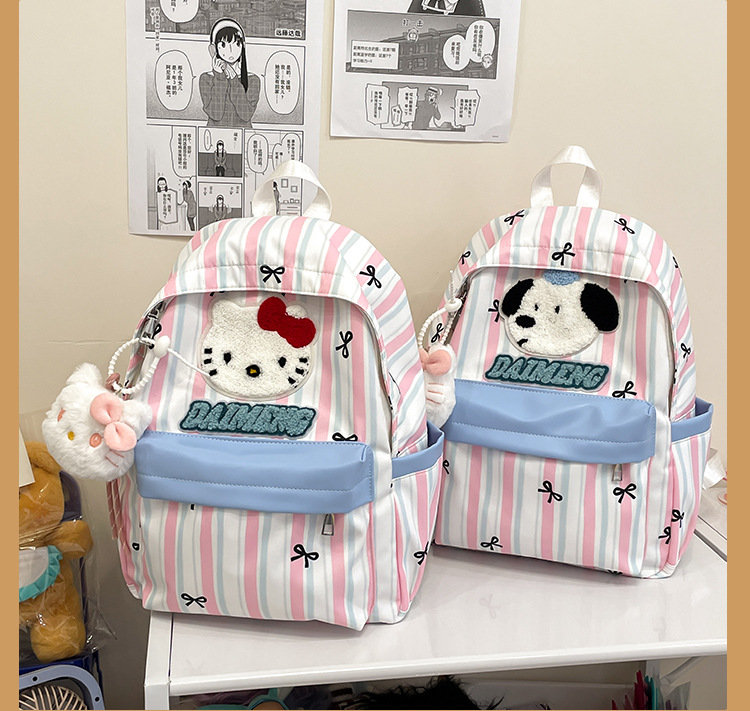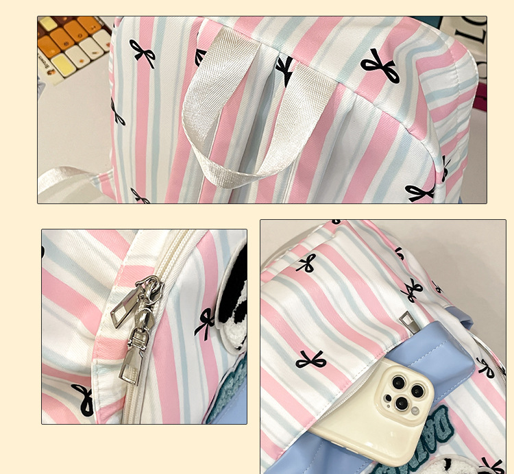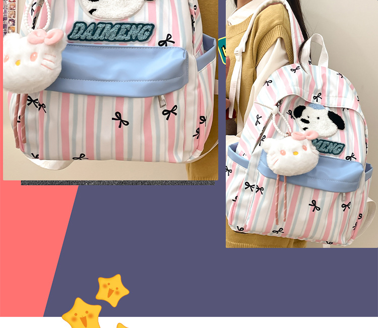 2025 여름 새 스타일 신선한 줄무늬 만화 배낭 여성 중학교 및 초등학교 학생 경량 Schoolbag 외출 배낭스토어 가기