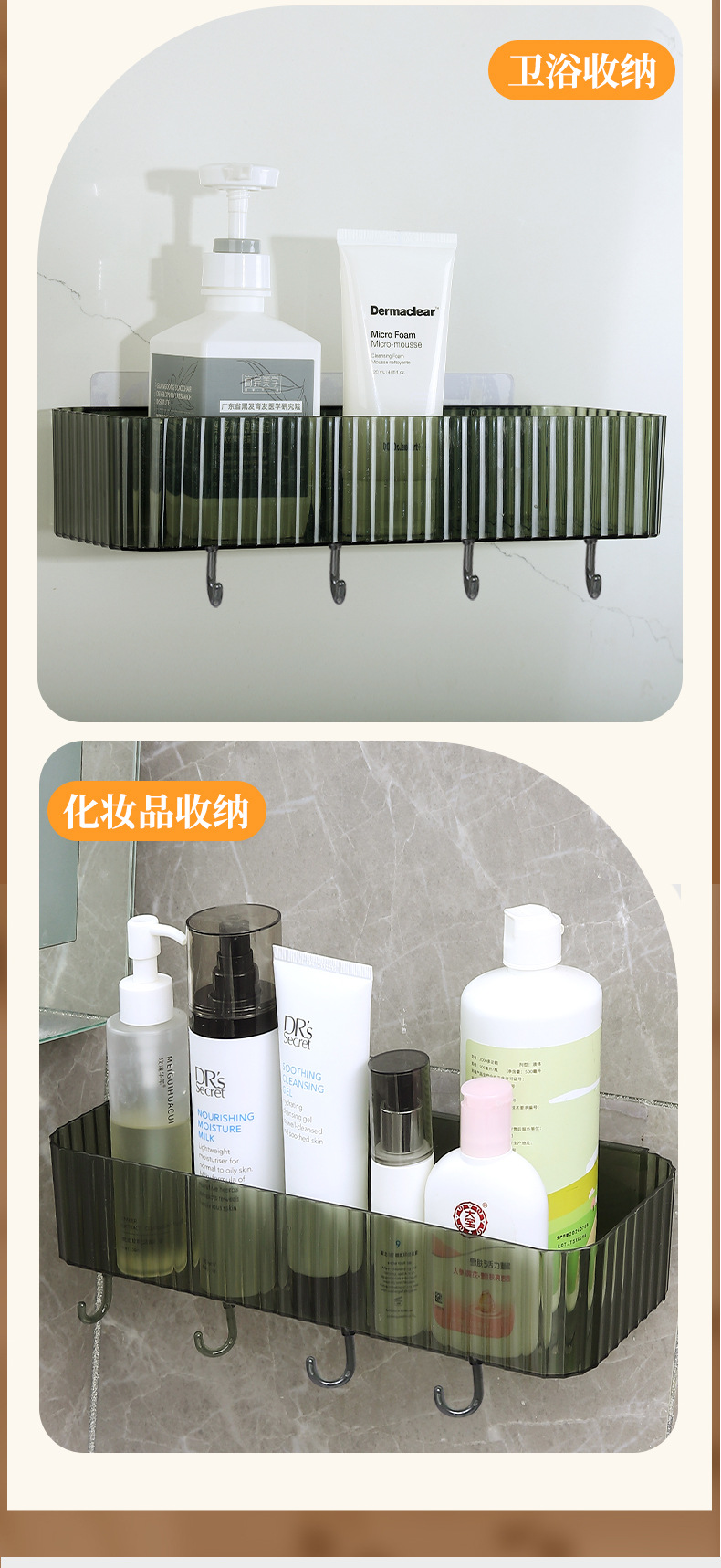 욕실 벽걸이 선반, 욕실 선반, 펀치 없는 욕실 세면대 정리함, 걸이 바구니, 벽걸이형스토어 가기