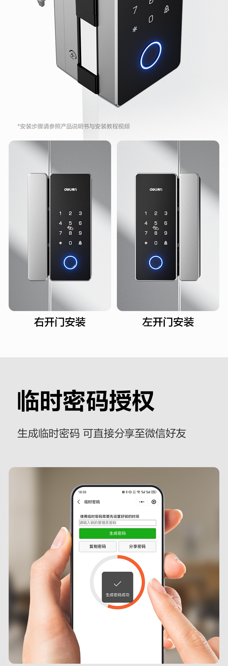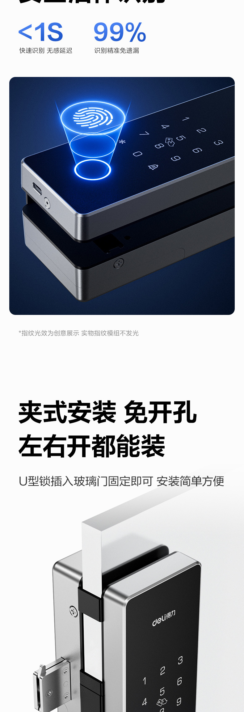 Deli AL103 스크린리스 유리 도어록 펀치프리 오피스 유리 도어록 스마트락 IC 카드 스와이프스토어 가기