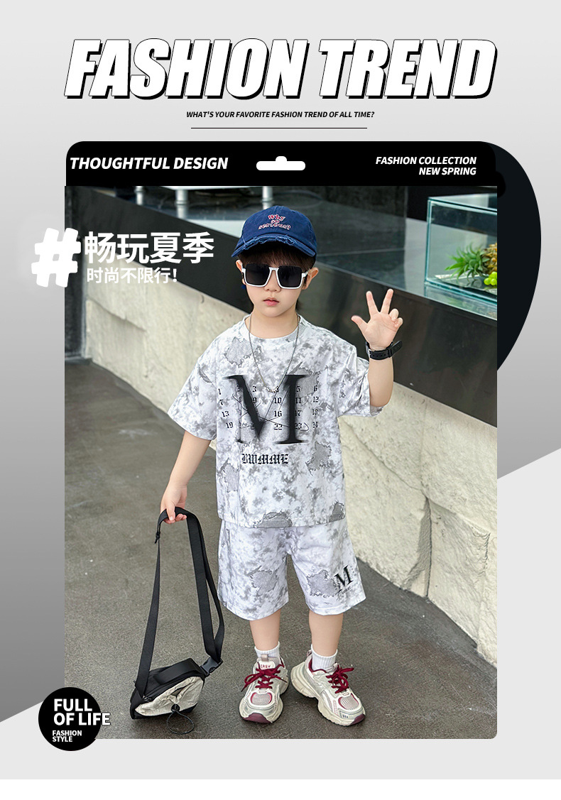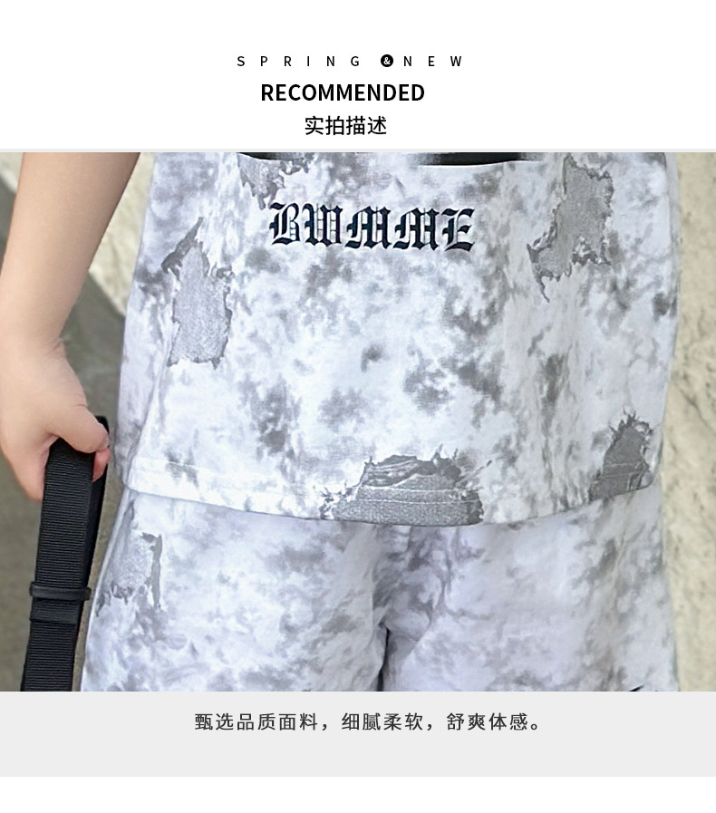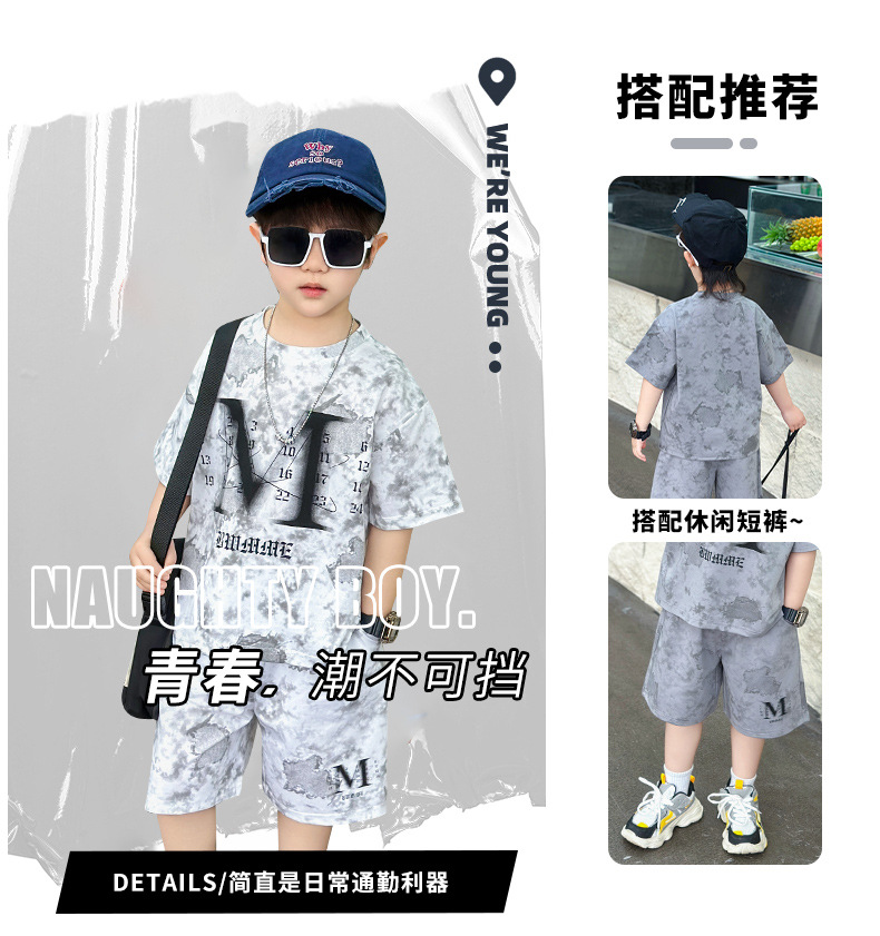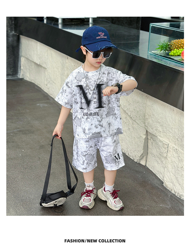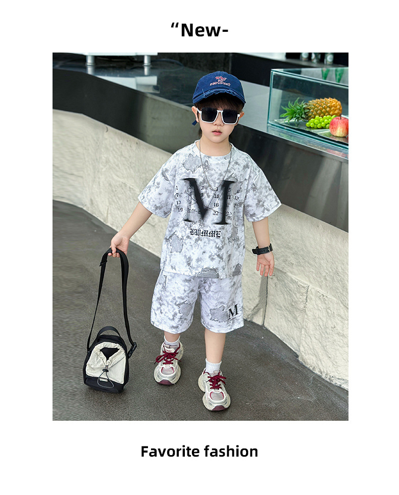 어린이 착용 소년 여름 착용 세트 2025 새로운 소년의 강아지 잘 생긴 반바지 2 개 세트 아기 넥타이-염색 반팔 트렌디 T스토어 가기
