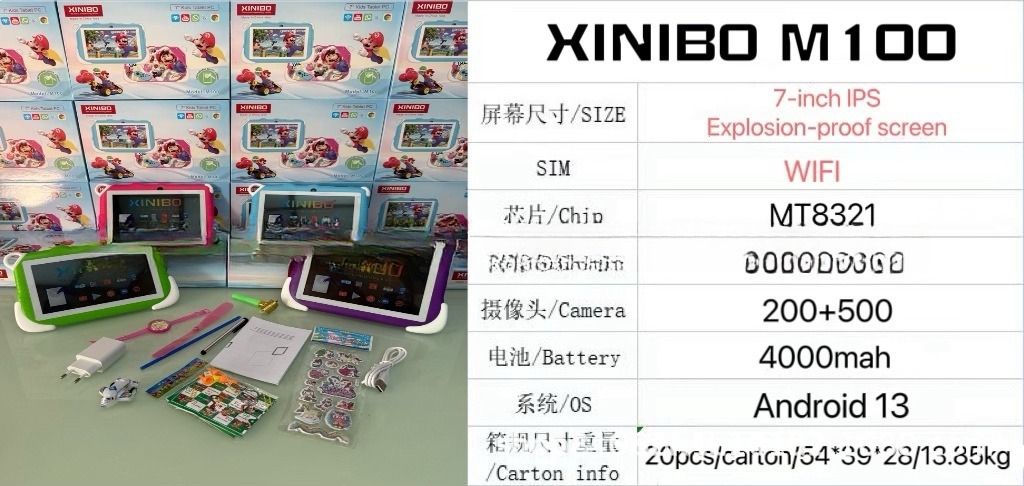 어린이 태블릿 PC7인치 M100 국경 간 안드로이드 태블릿 8+256GB WiFi 안드로이드