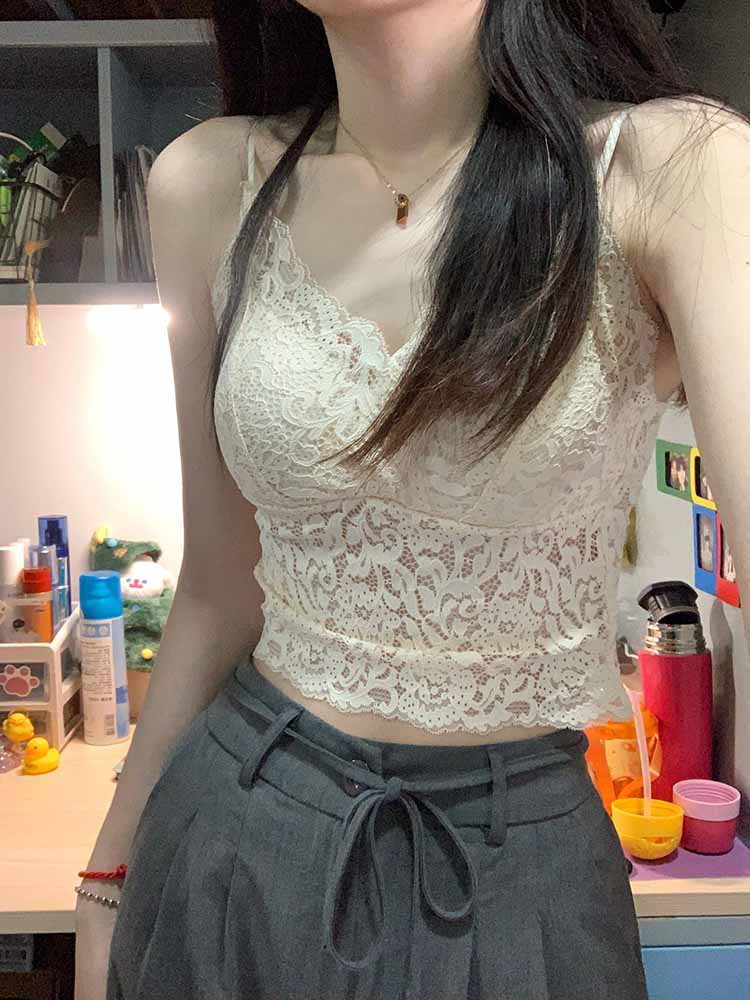 순수한 욕망 스타일 레이스 카미 솔 여성의 슬림 핏 슬림 핏 쇼트 탑 틈새 디자인 외부 및 내부 최고 폭발 여름
