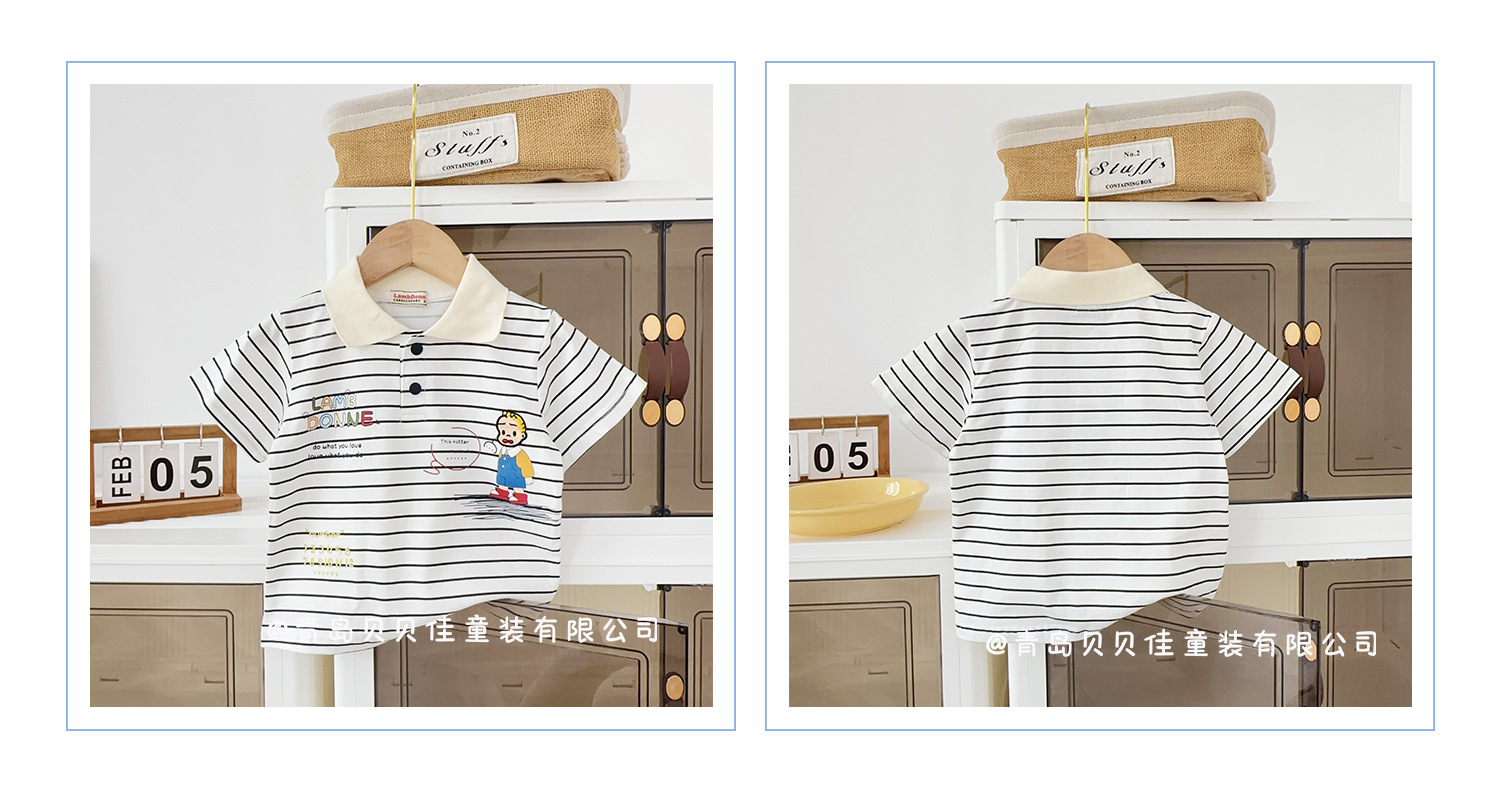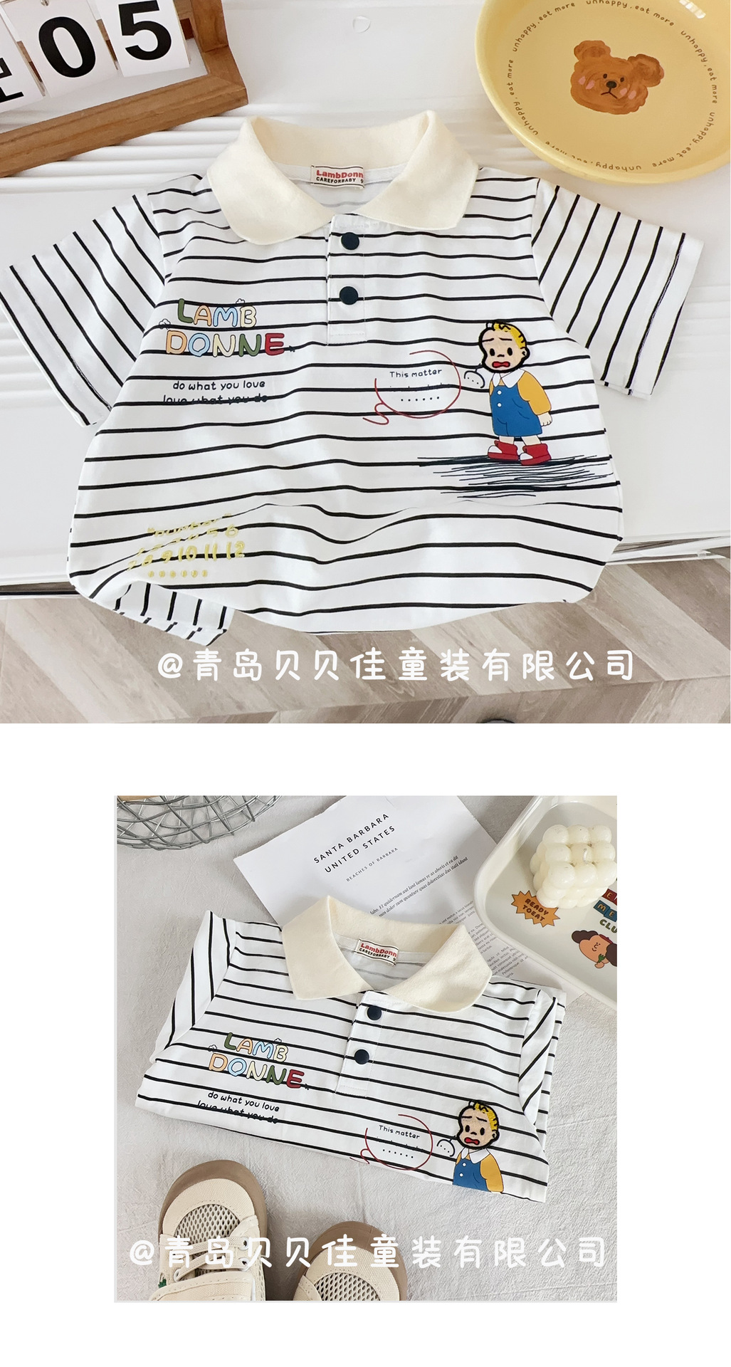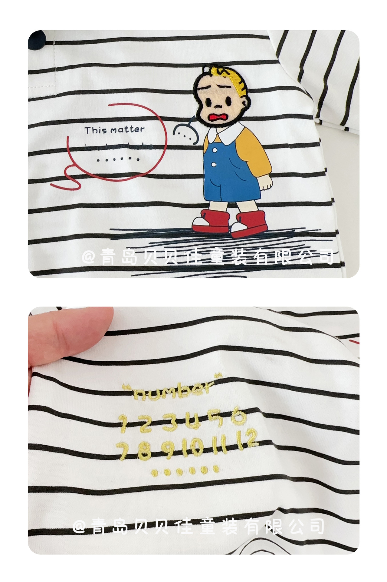일본 하라다 아동 스트라이프 봄 신작 소년 소녀용 반팔 T 베이비 셔츠 대외 무역 아동복스토어 가기