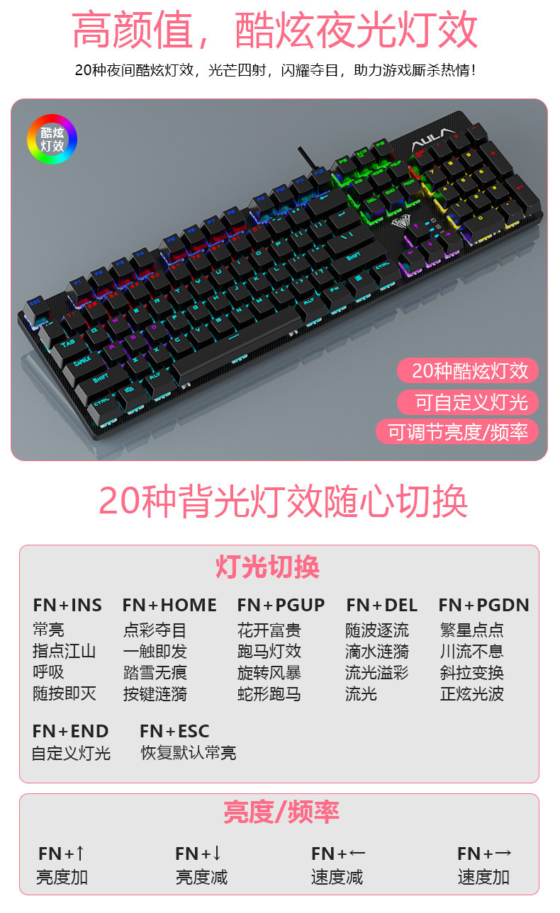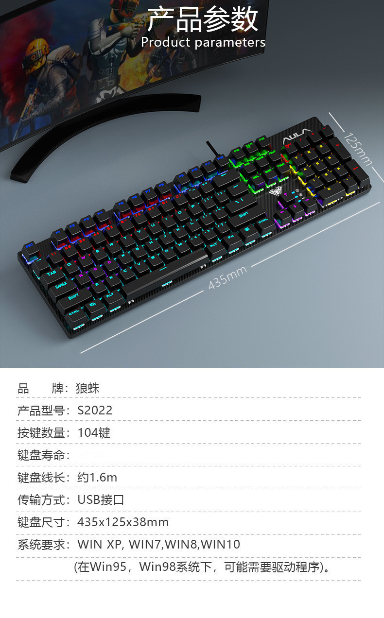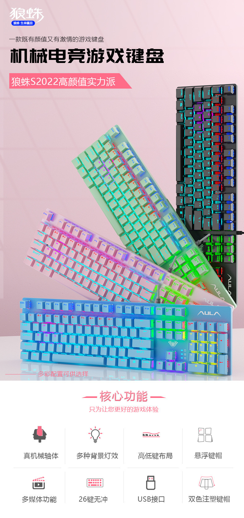 Wolf Spider S2022 기계식 키보드 녹색 축 데스크탑 노트북 게임 e-스포츠 발광 USB 키보드스토어 가기