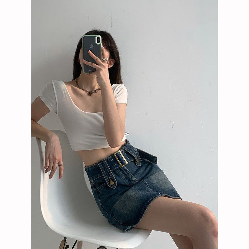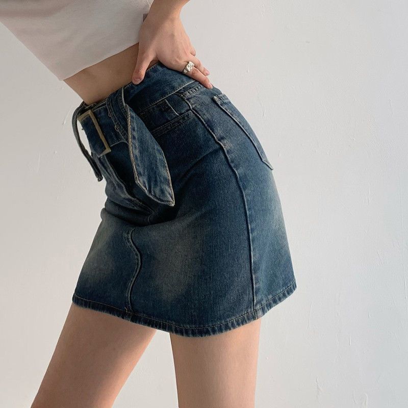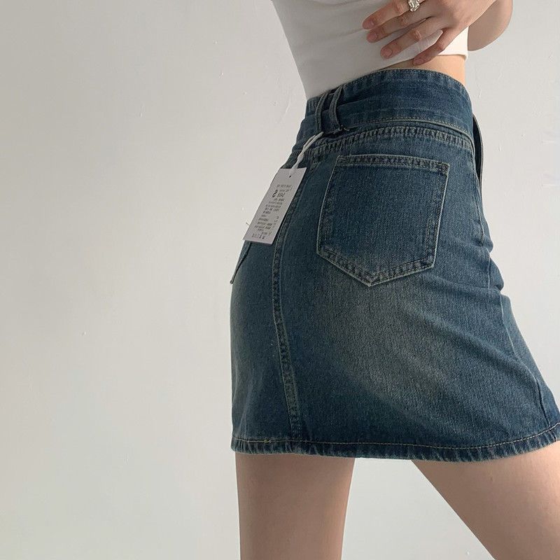 빈티지 스파이스 소녀 데님 스커트 여성 여름 2024 새로운 짧은 스커트 높은 허리 슬리밍 안티 라이트 스커트스토어 가기