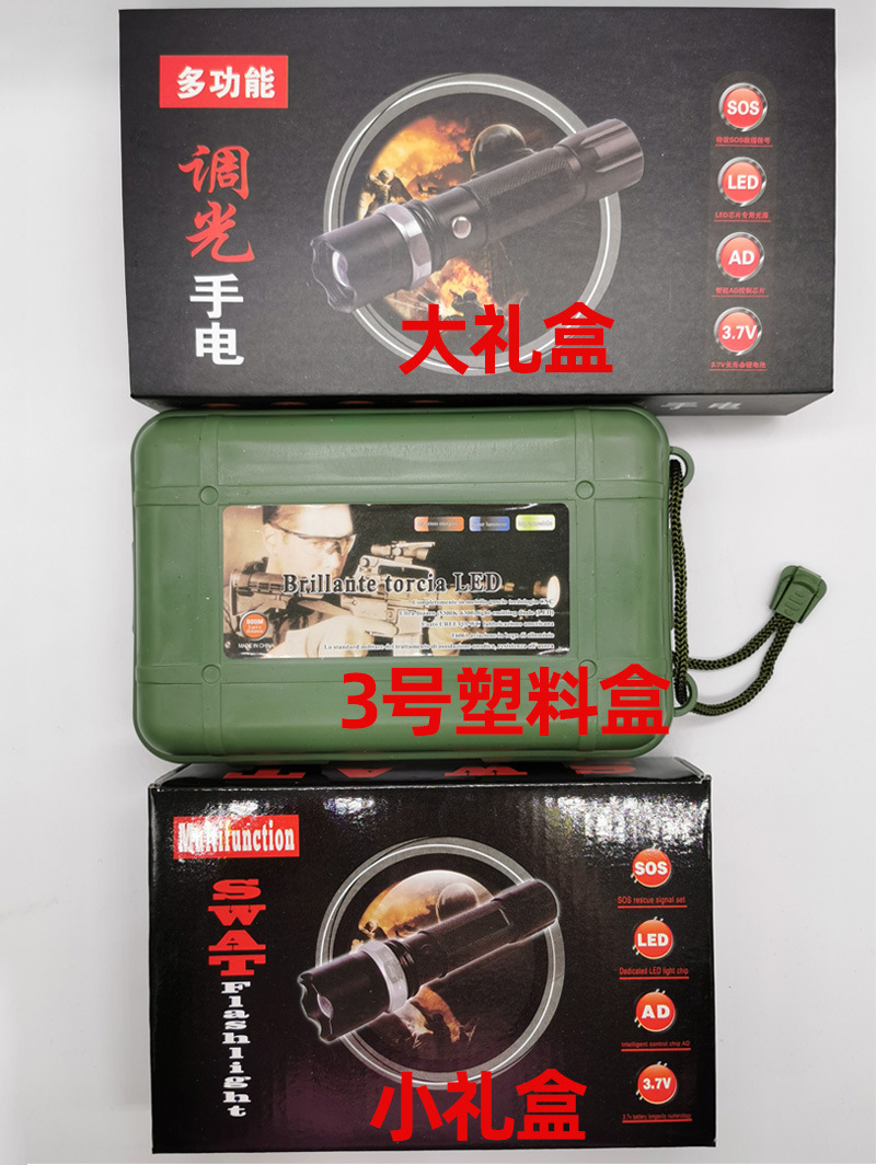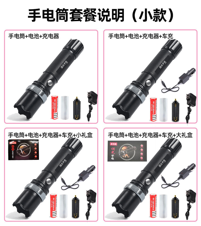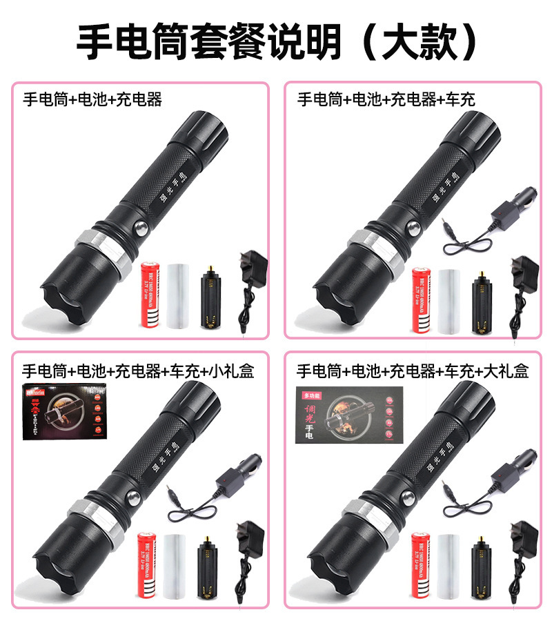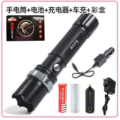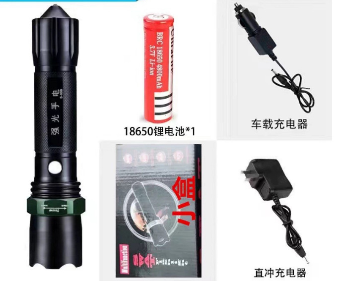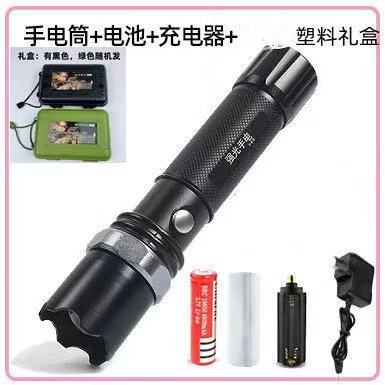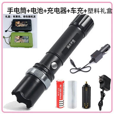 • TJ 자동차 플라스틱 선물 상자 [손전등 + 18650 배터리 + 직접 충전 + 자동차 충전기]