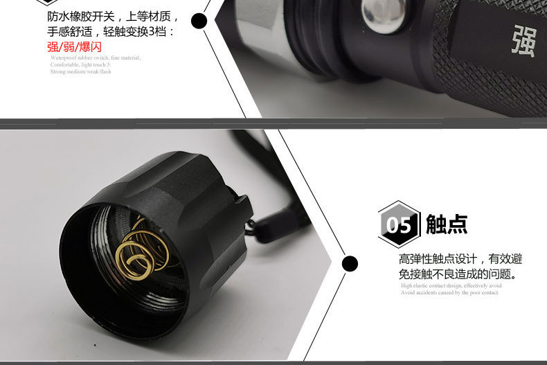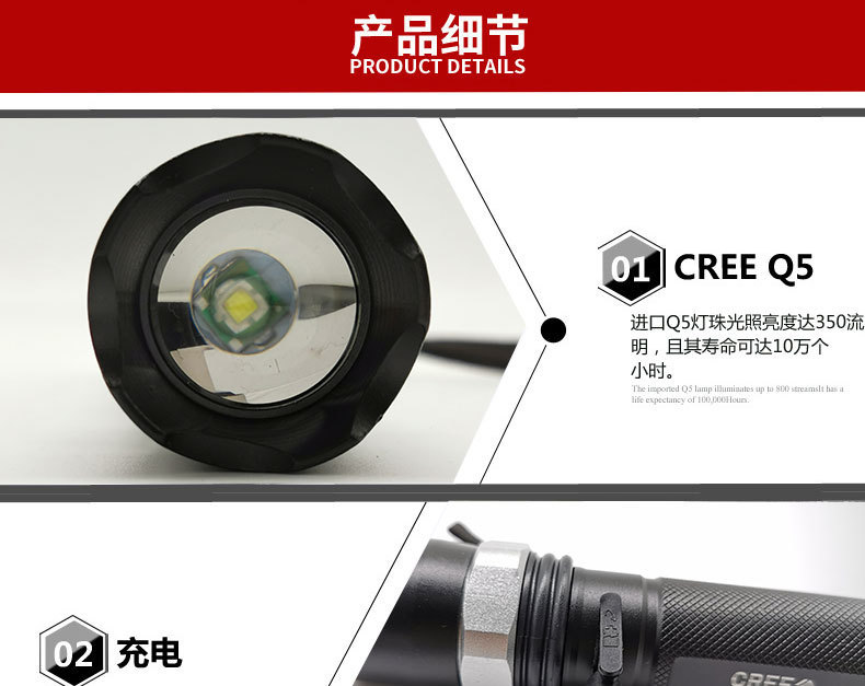 • TJ 플라스틱 상자 [손전등 + 직접 충전 + 1 18650 배터리]