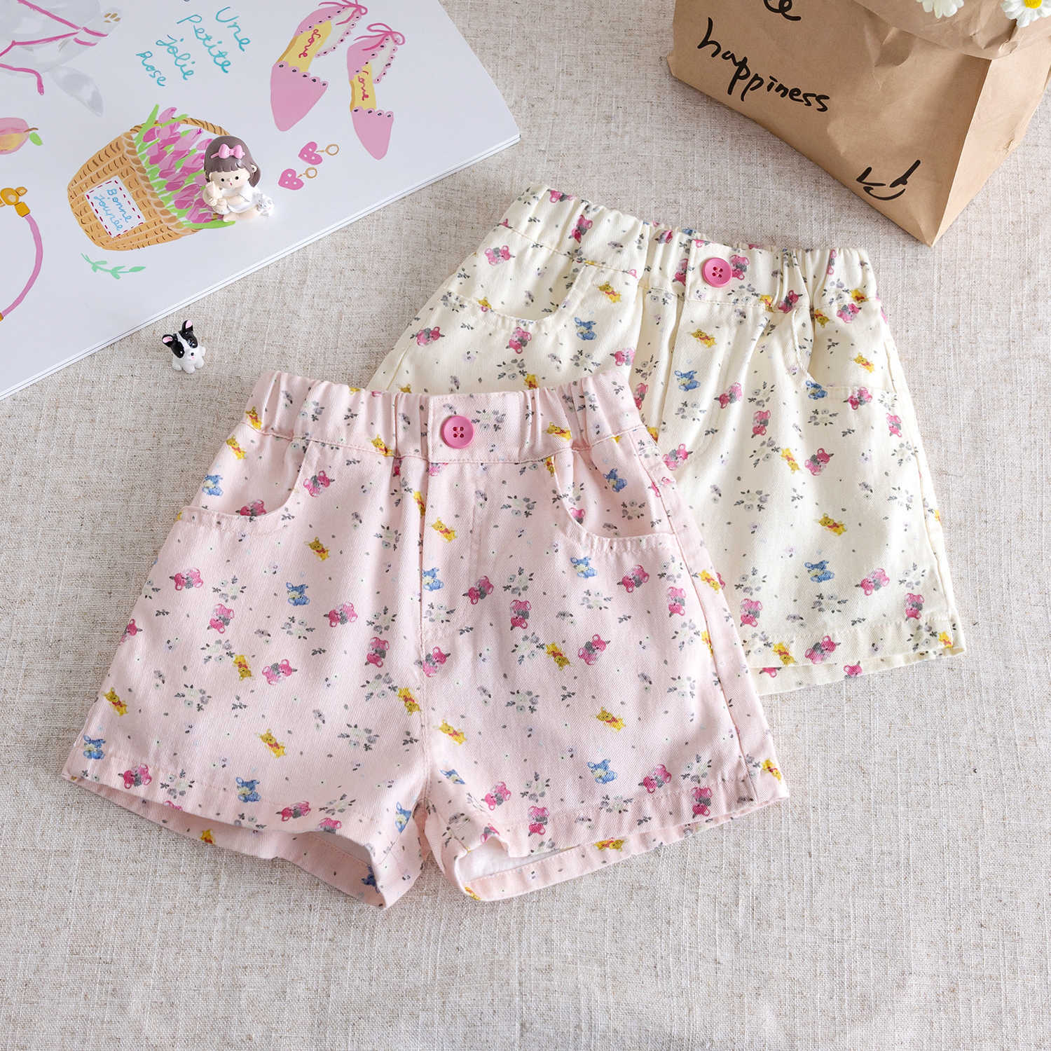 여자 반바지 2025 여름 새로운 도착 스타일 꽃 인쇄 뜨거운 바지 여자 아기의 여름 한국 올 매치 바지