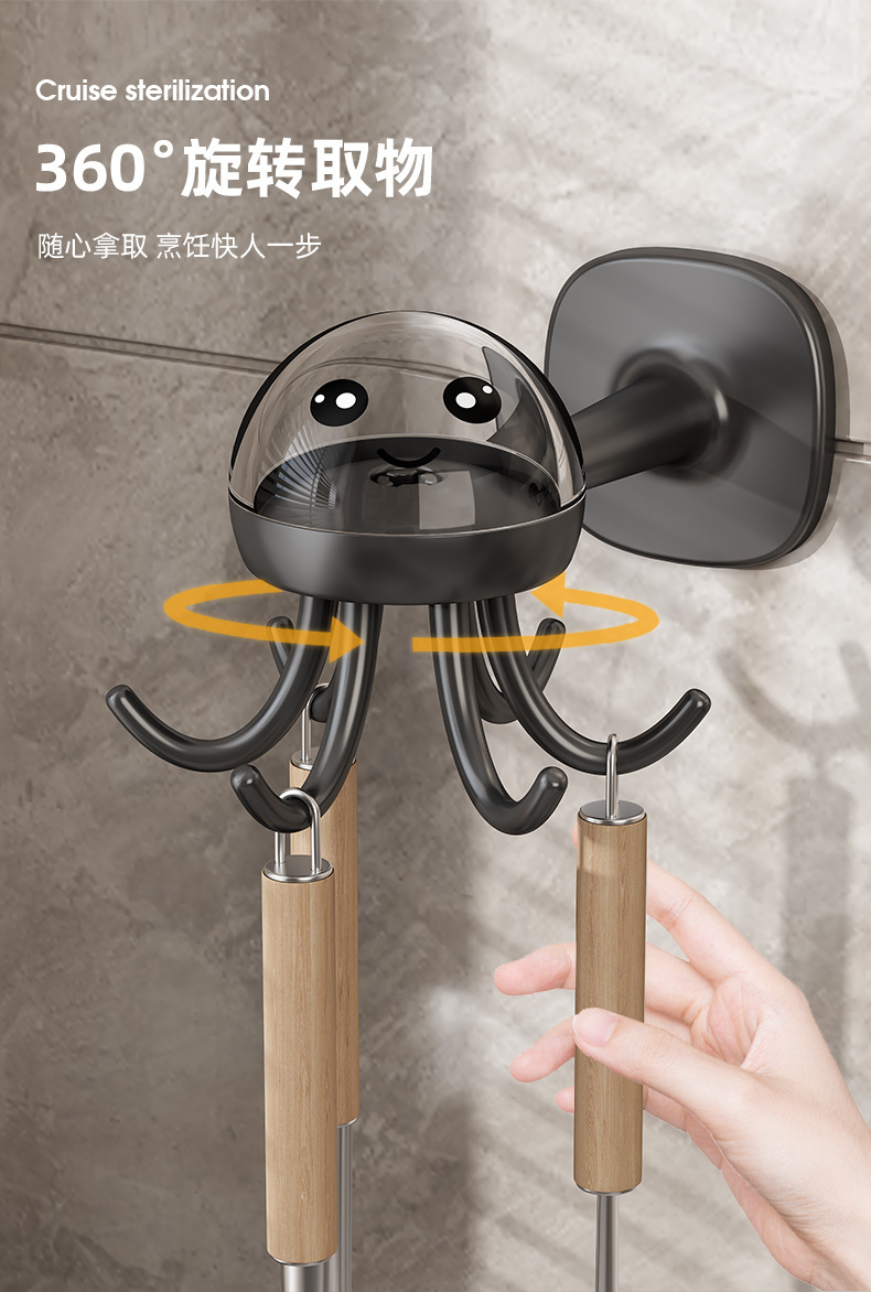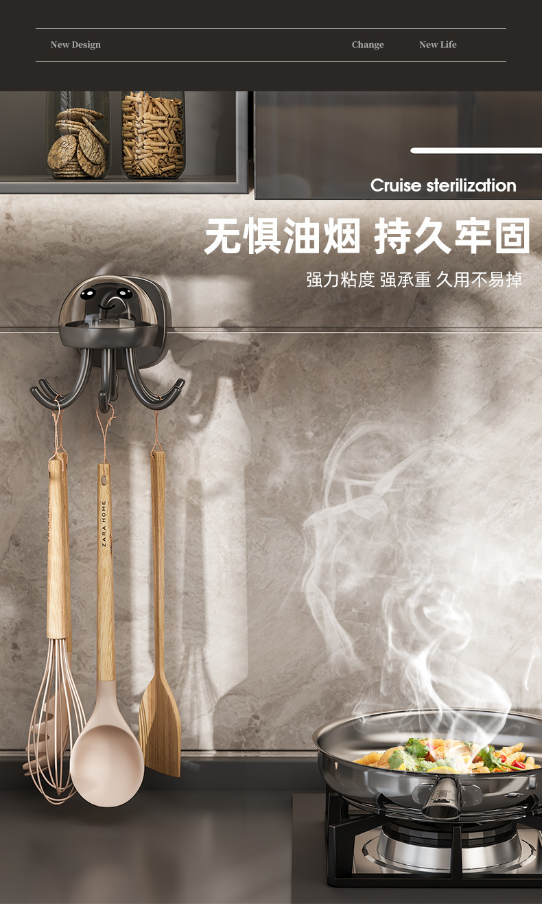강력한 회전식 6발톱 후크, 주방용 주걱 보관함, 접착 후크, 펀치 없는 스푼 및 주걱 걸이, 강력한 내하중스토어 가기