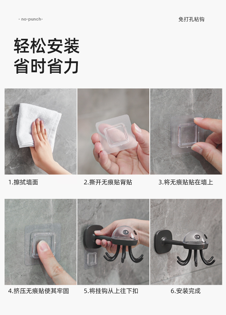 강력한 회전식 6발톱 후크, 주방용 주걱 보관함, 접착 후크, 펀치 없는 스푼 및 주걱 걸이, 강력한 내하중