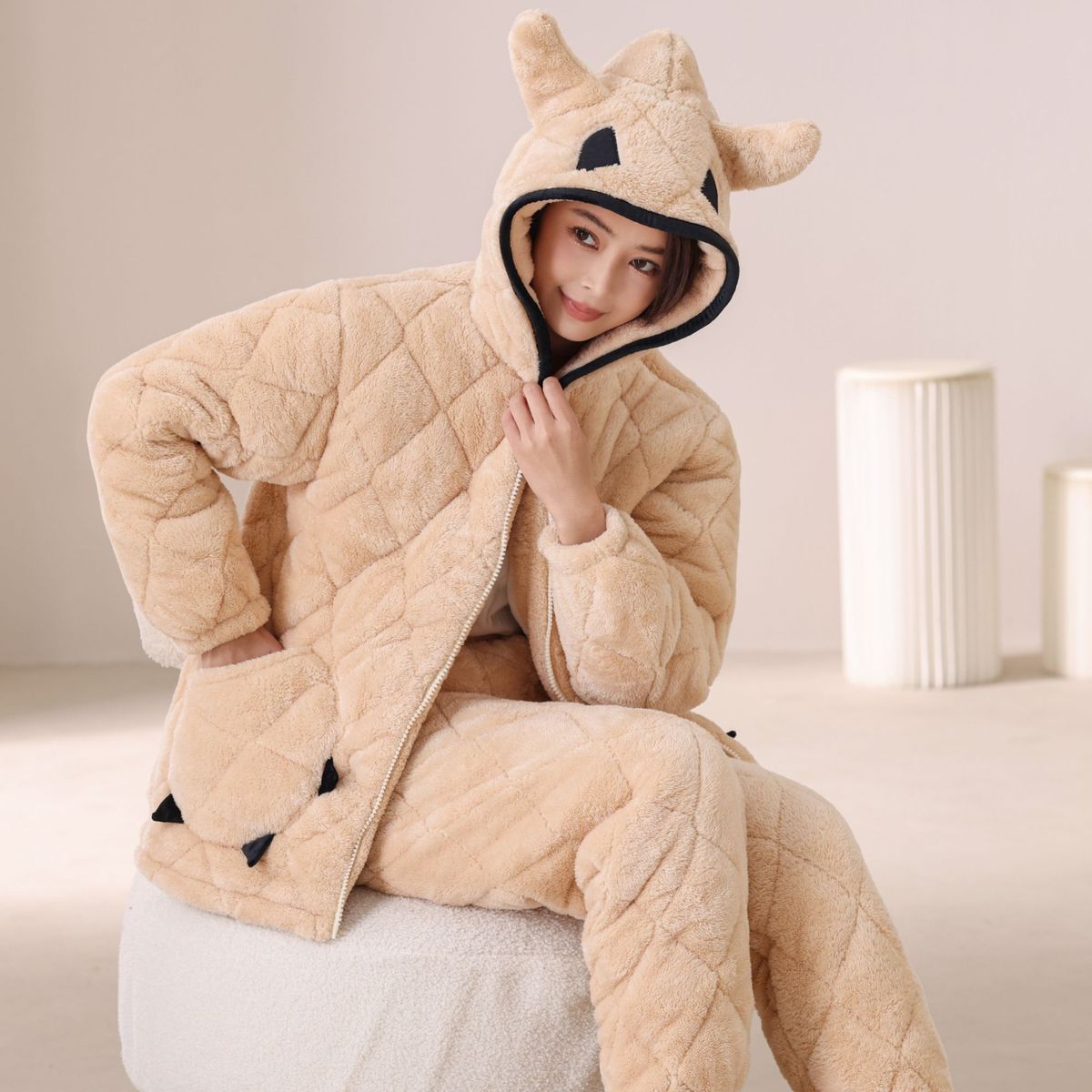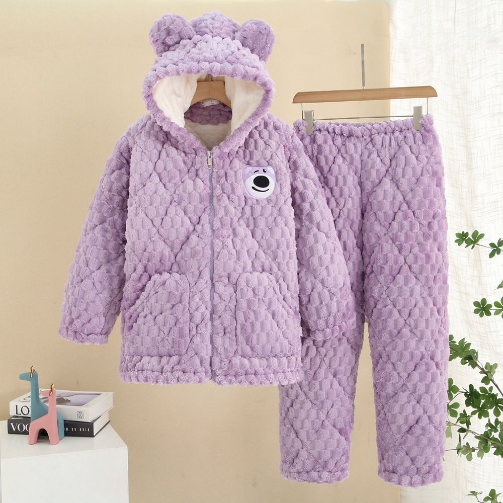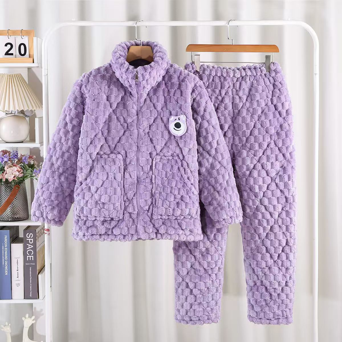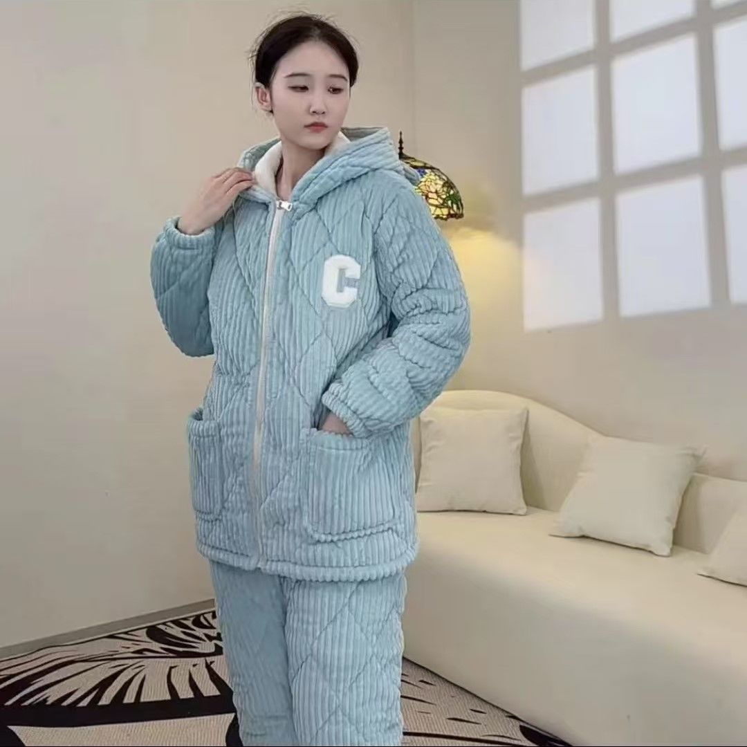 2024년 겨울 여성을 위한 새로운 스타일의 잠옷은 겨울에 따뜻하게 유지하기 위해 플란넬 3겹 플러스 벨벳을 착용할 수 있습니다. 겨울 플란넬 다용도 퀼팅스토어 가기