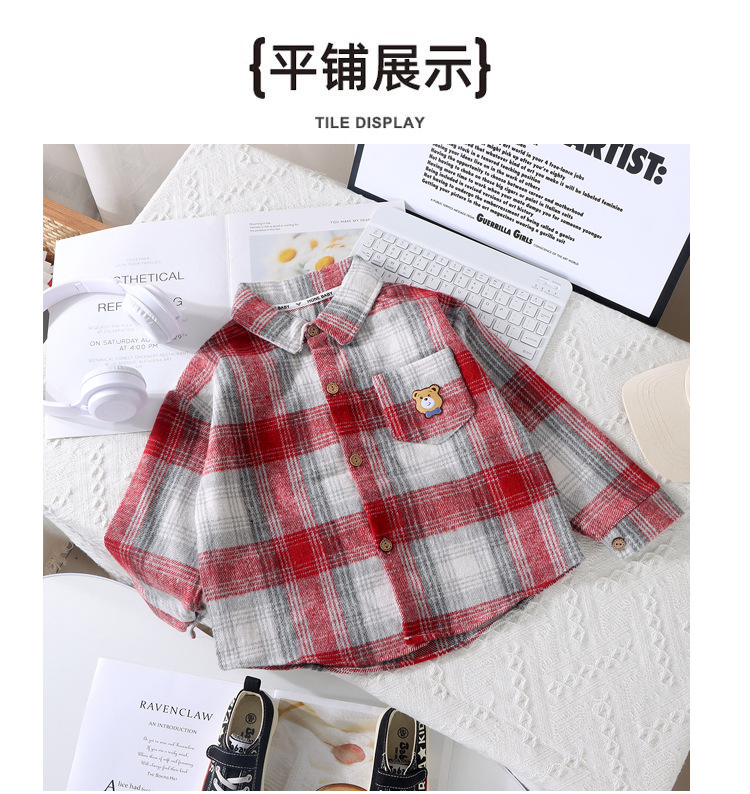 아동 의류 아동 셔츠 봄 소년과 소녀 긴팔 티셔츠 0-8 세 아기 격자 무늬 복고풍 겉옷