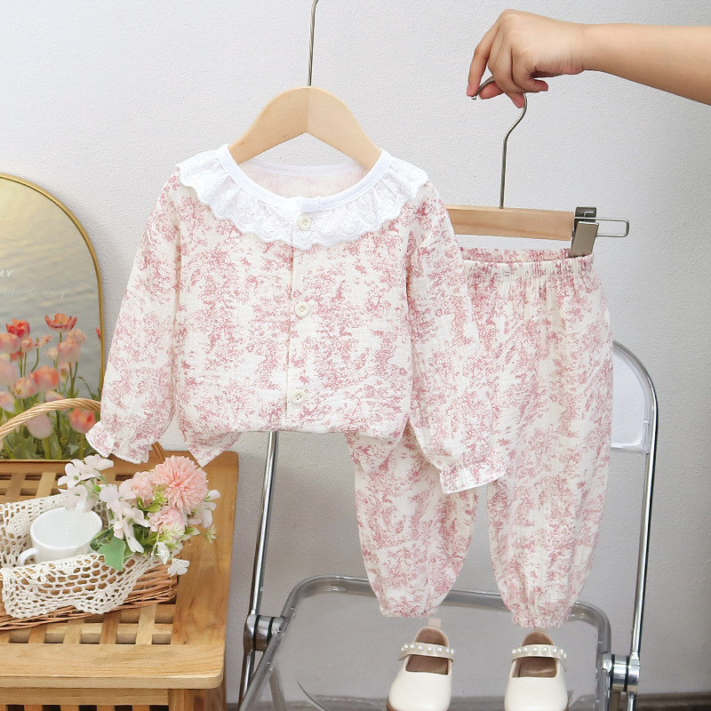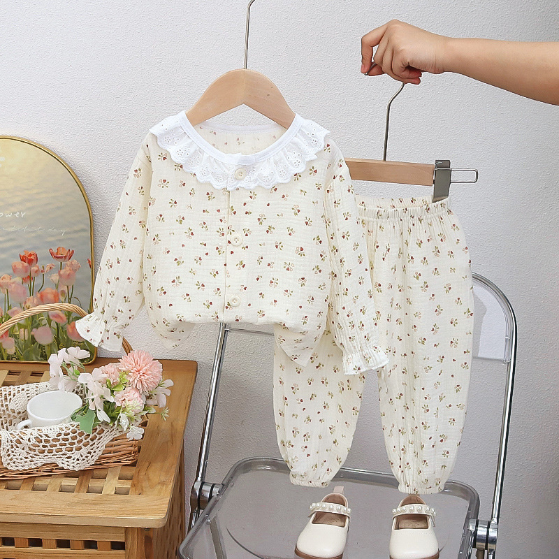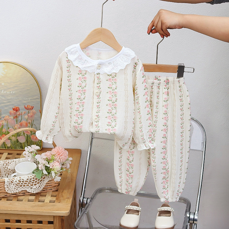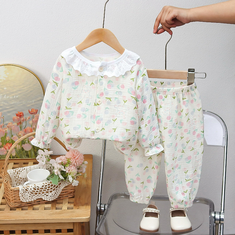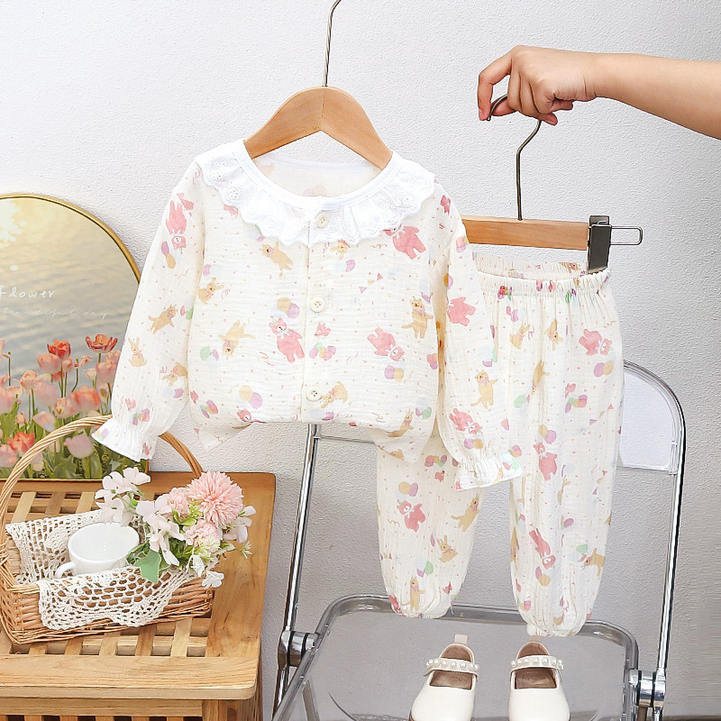 에어컨 옷 긴팔 여성 면 거즈 아기 가정 옷 긴팔 잠옷 소녀 아기 정장 얇은 여름 옷