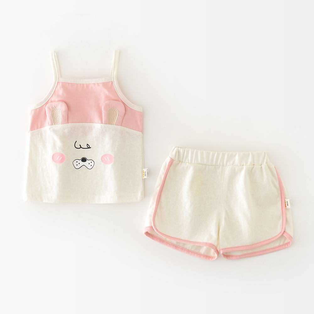 2025 여름 새로운 한국 스타일 소녀 투피스 슬링 세트 아기와 유아 귀여운 토끼 바지 세트 52062