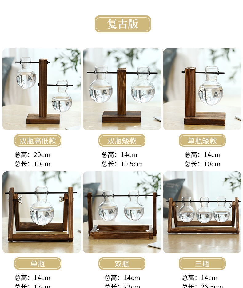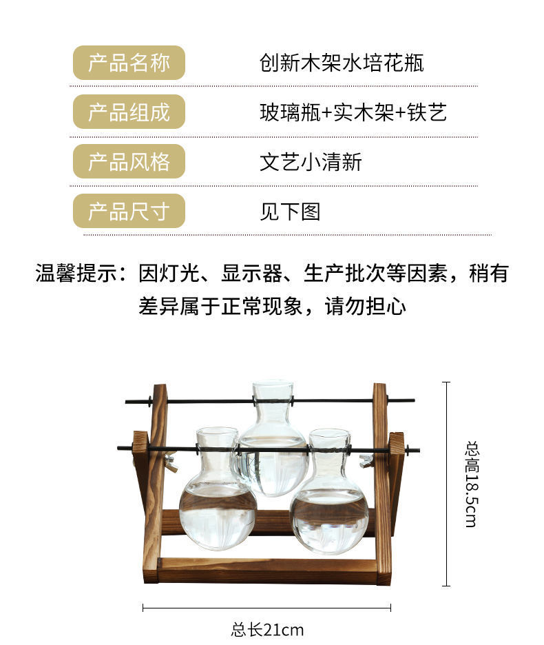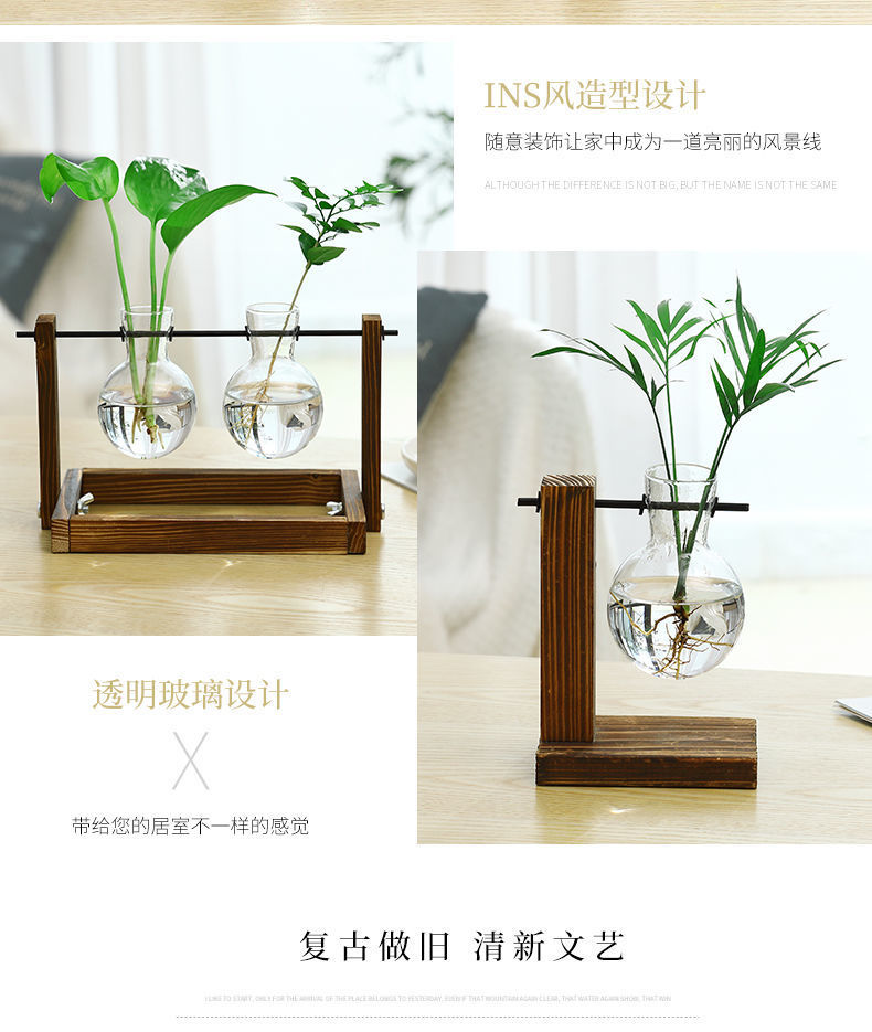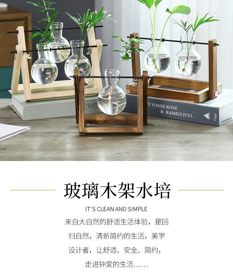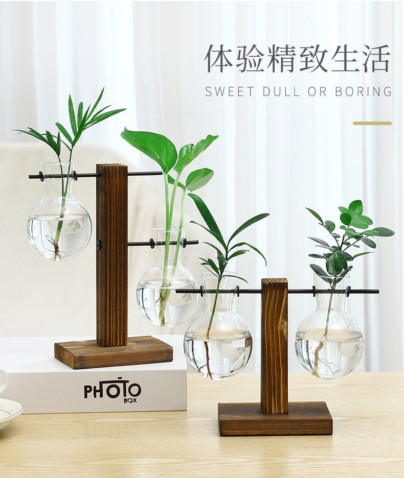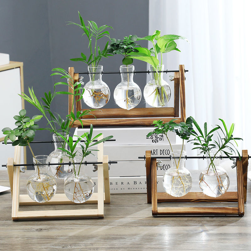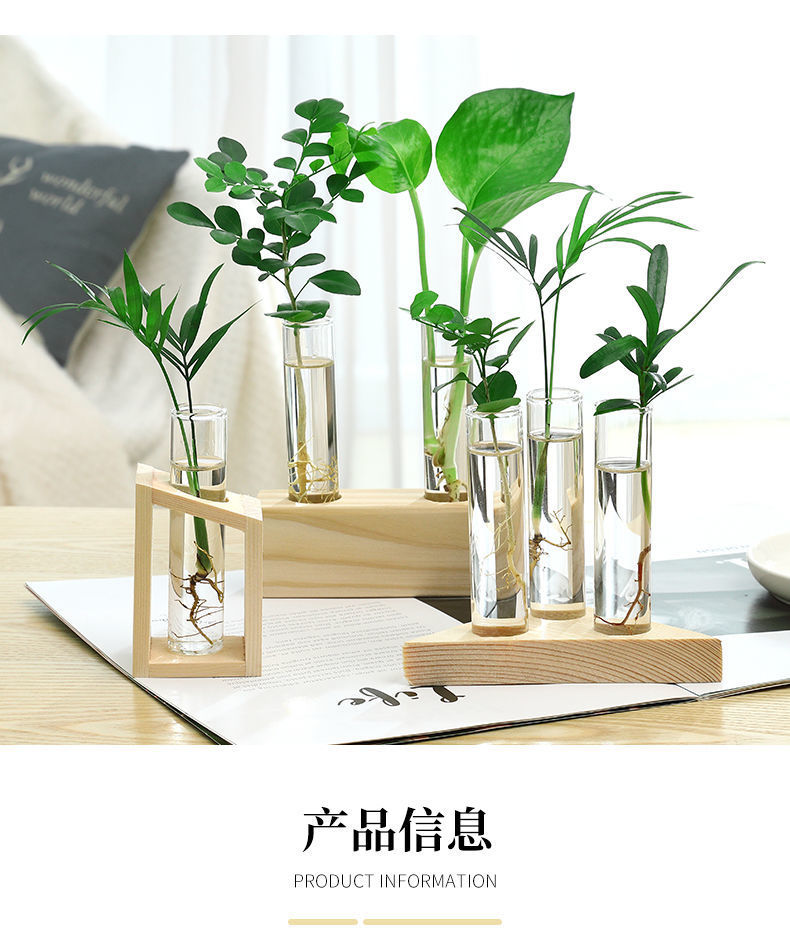 나무 프레임 데스크탑 수경 유리 꽃병 녹색 장미 식물 화분 컨테이너 장식 사무실 거실 장식 국경스토어 가기