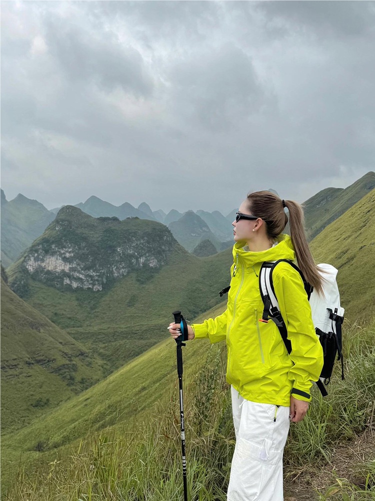 여성을위한 미국 도파민 야외 재킷 2025 봄, 가을 새로운 형광 녹색 방풍 및 방수 후드 재킷스토어 가기