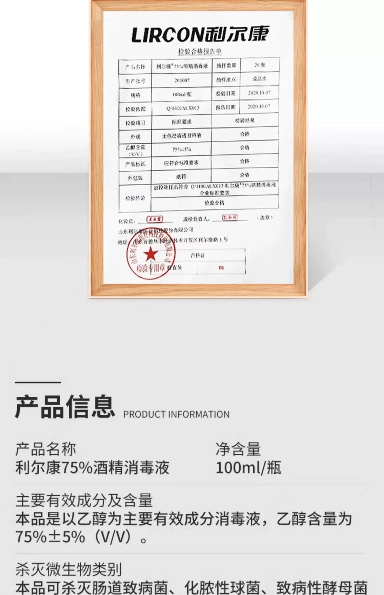 • Lierkang Ningfeier 75% 알코올 소독제 2.5L/병
