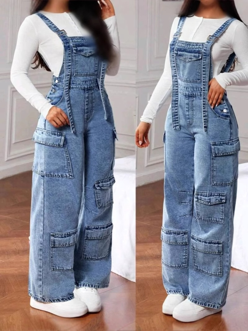 청바지 여성의 데님 바지 화물 바지 멀티 포켓 넓은 다리 화물 바지 도매스토어 가기