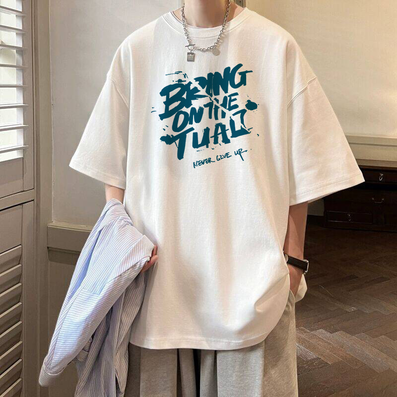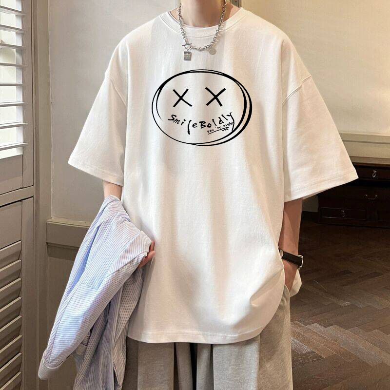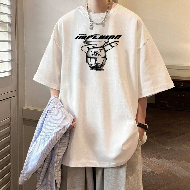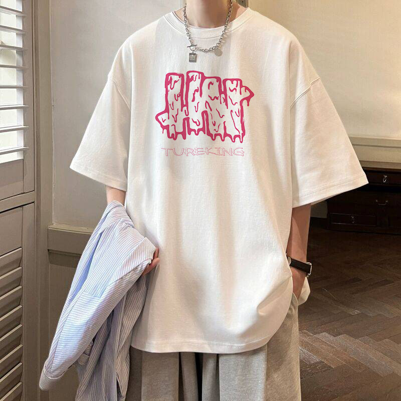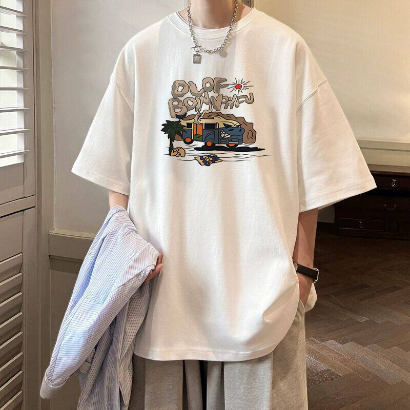 여름 트렌디 인 프린트 반팔 티셔츠 남성용 루즈 하라주쿠 Bf 올 매치 반소매 커플 반소매 탑