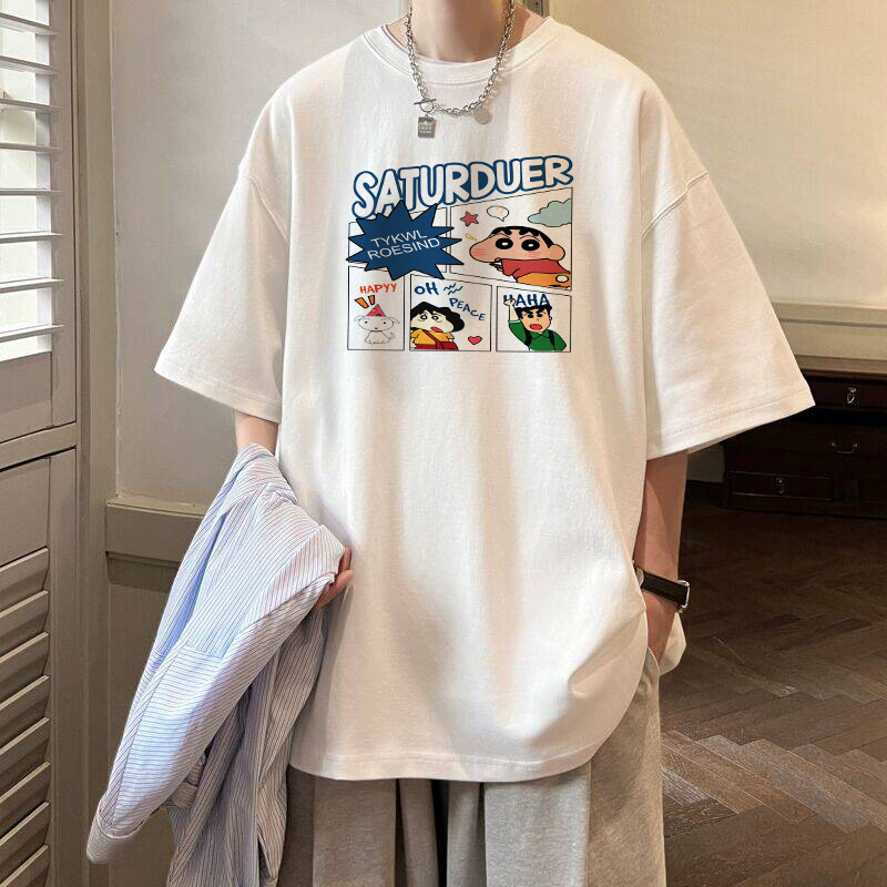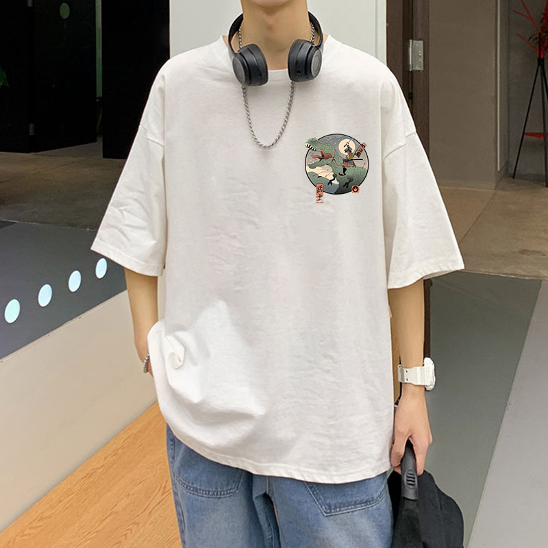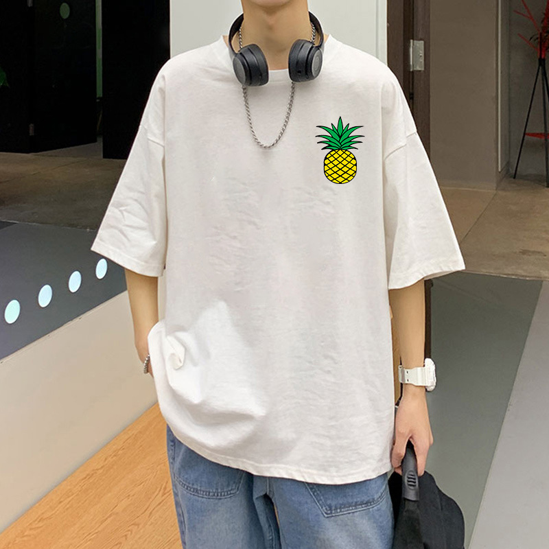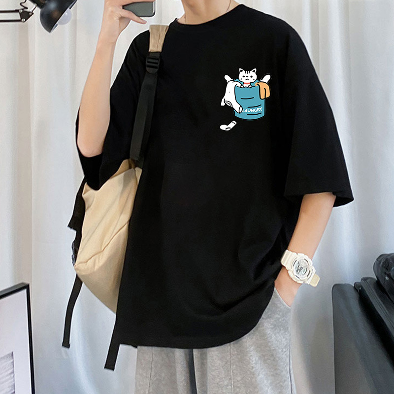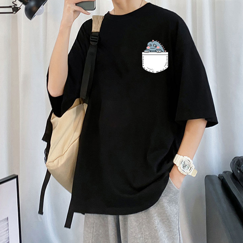 여름 트렌디 인 프린트 반팔 티셔츠 남성용 루즈 하라주쿠 Bf 올 매치 반소매 커플 반소매 탑