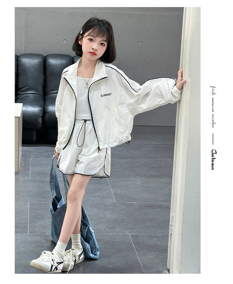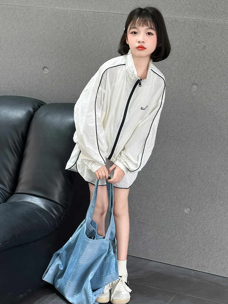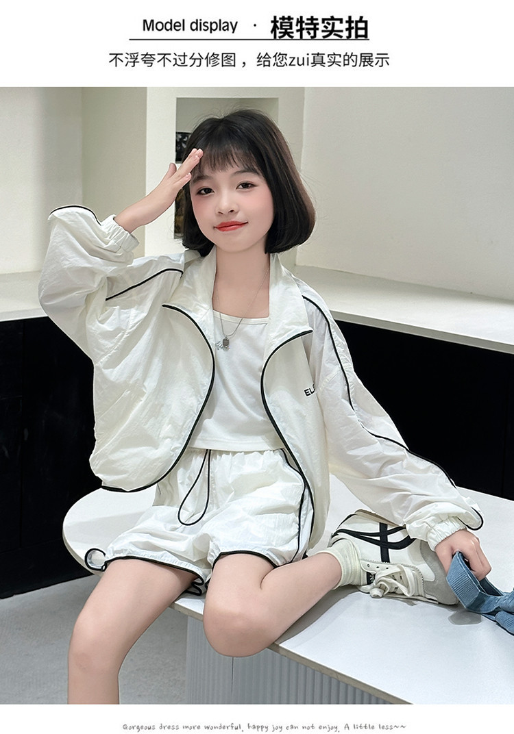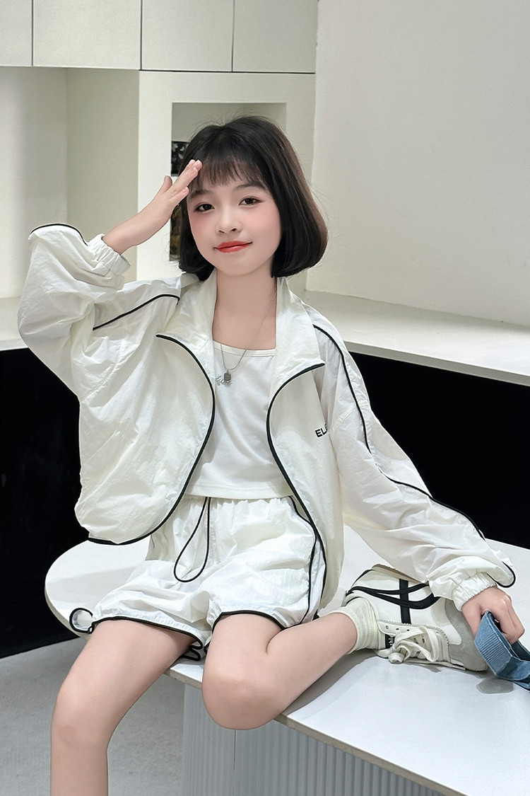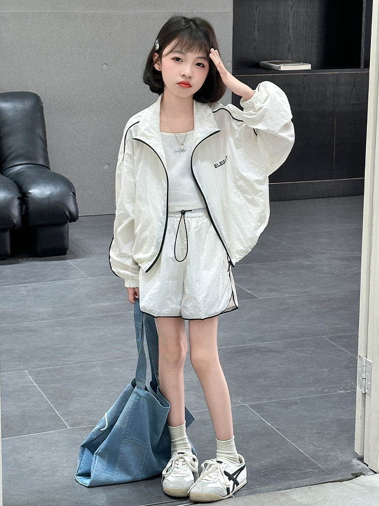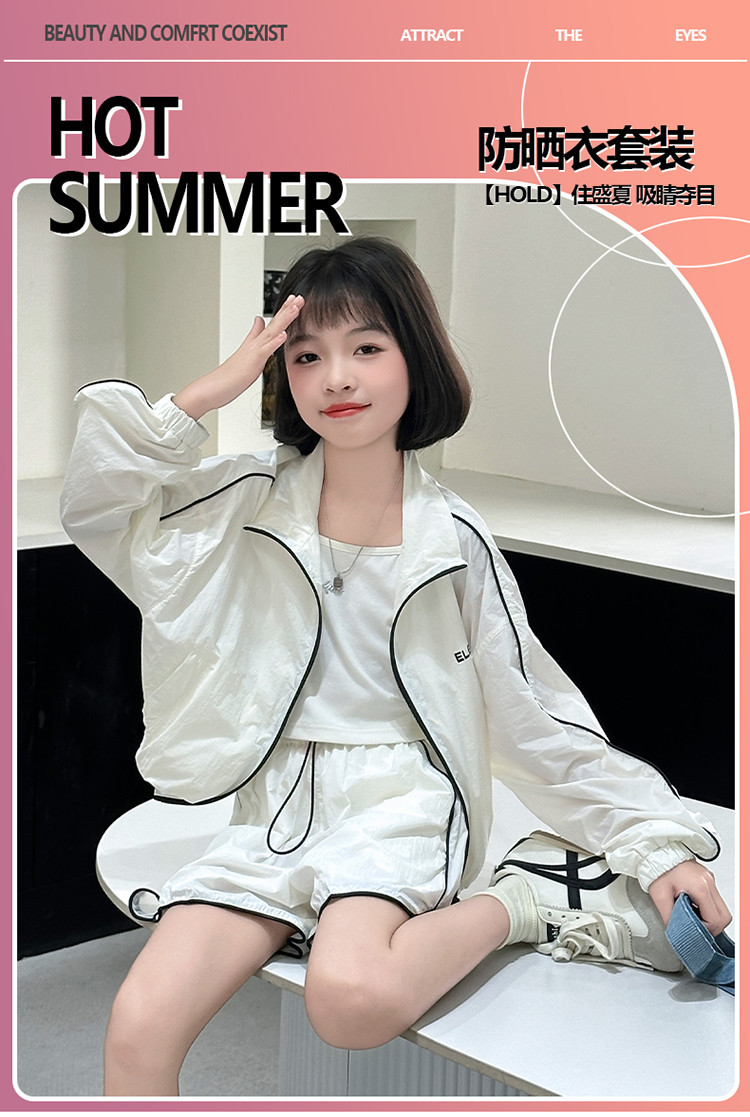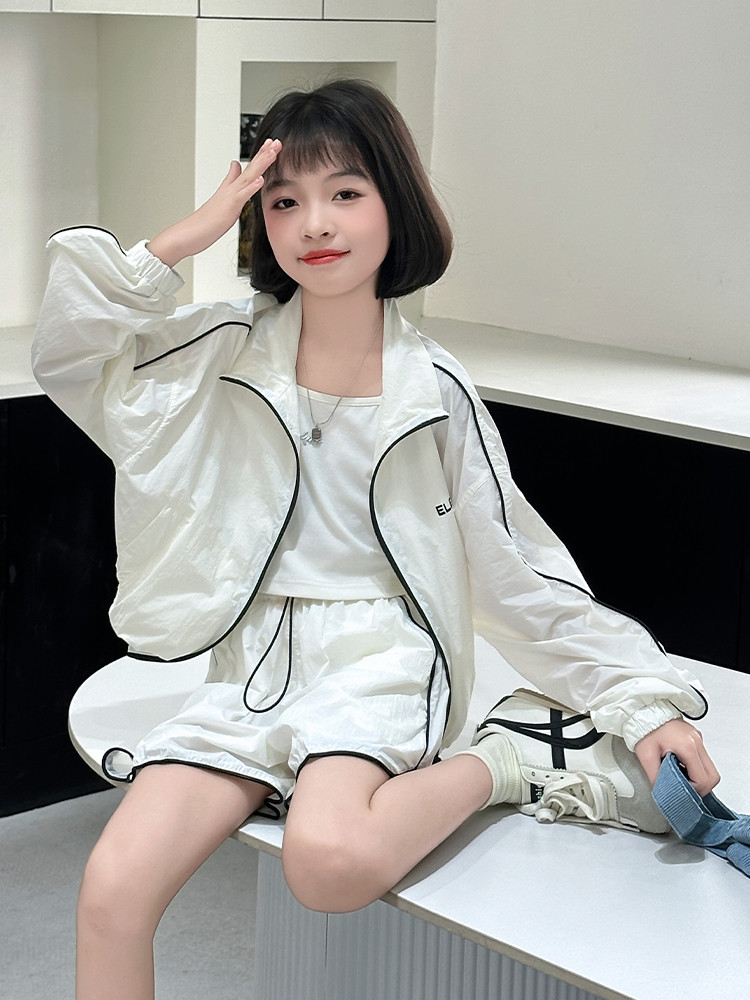 여자 여름 세트 2025 새로운 어린이 서양식 얇은 선 스크린 의류 한국식 반바지 투피스 트렌디스토어 가기