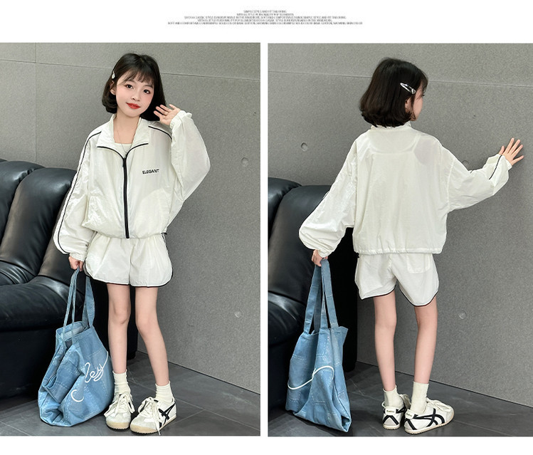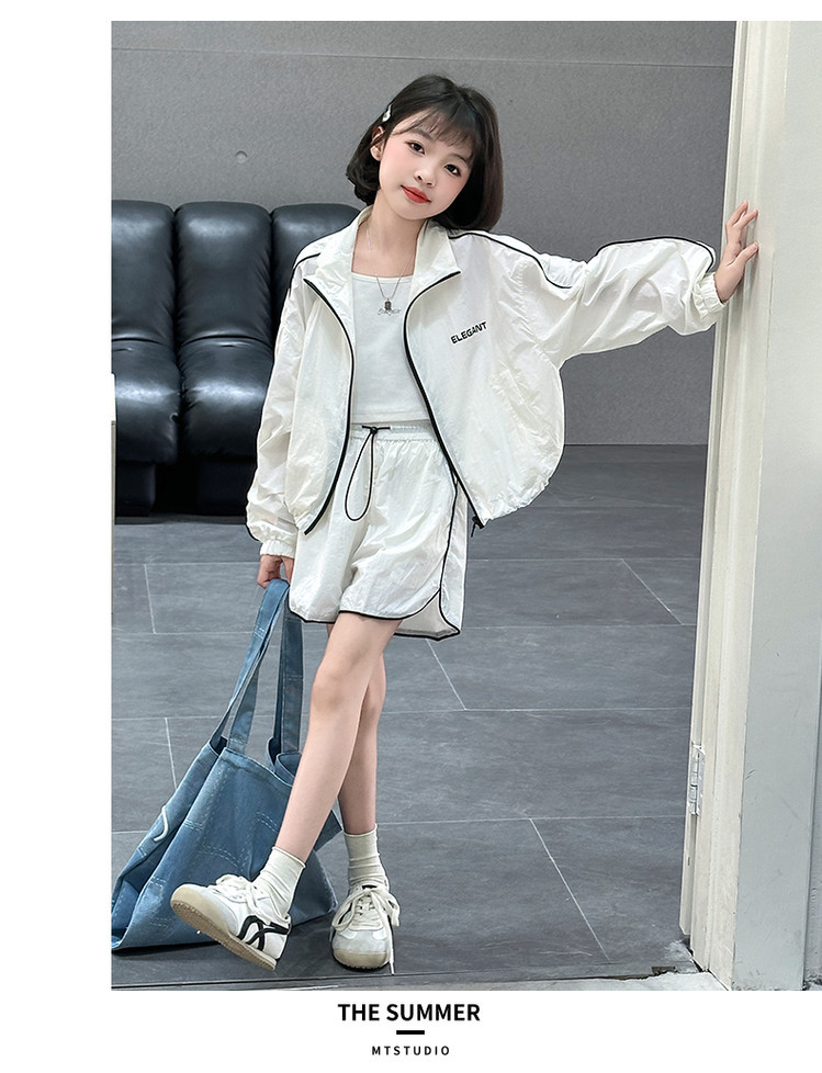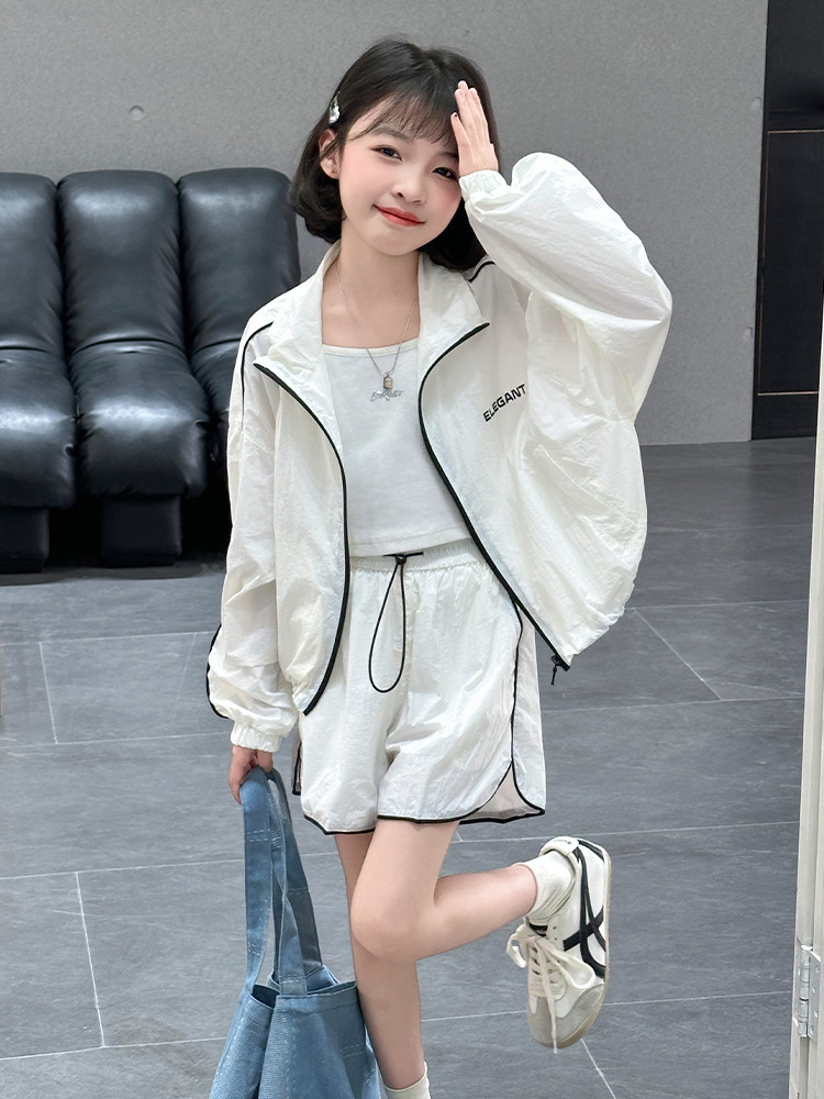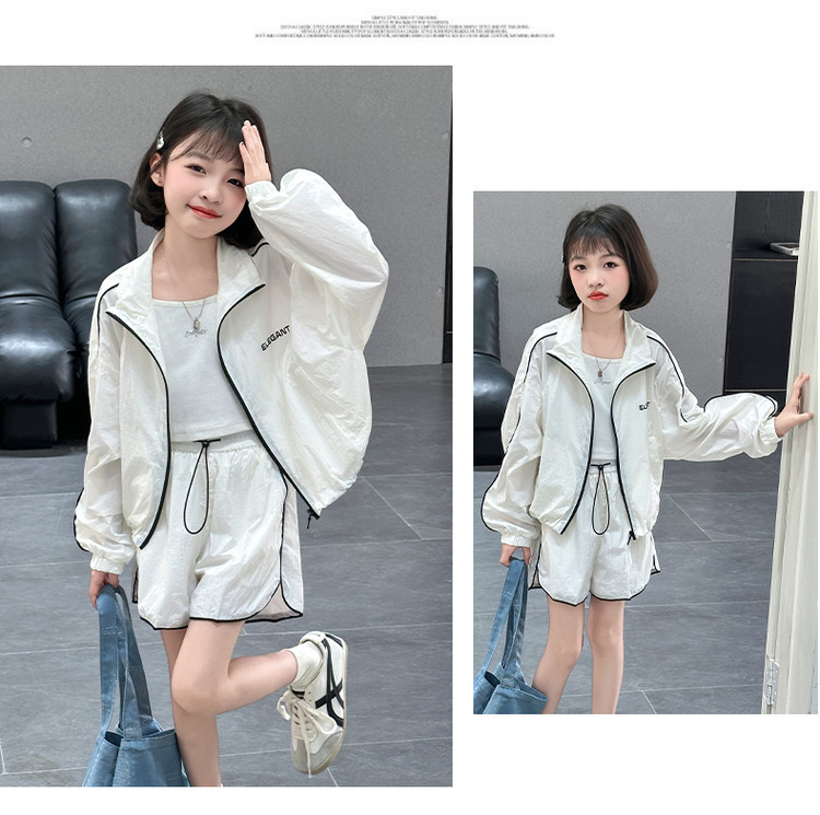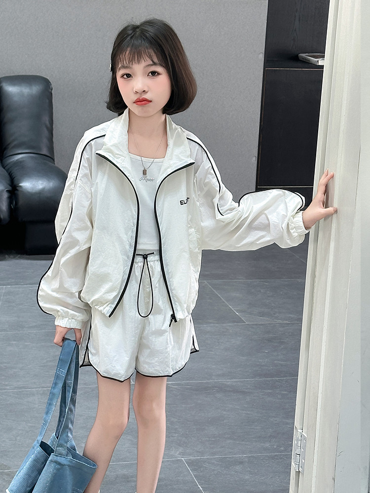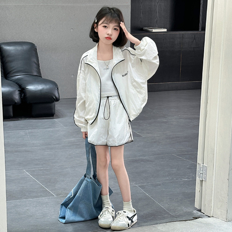 여자 여름 세트 2025 새로운 어린이 서양식 얇은 선 스크린 의류 한국식 반바지 투피스 트렌디