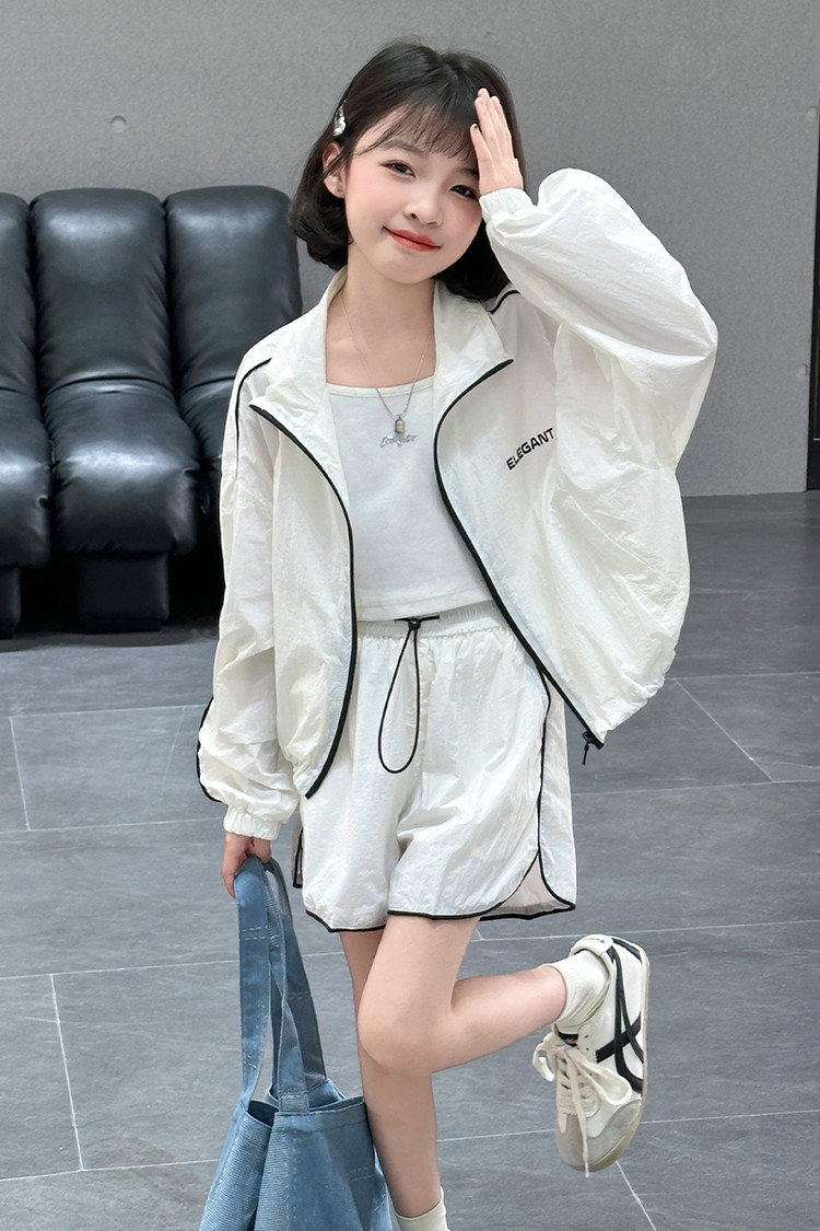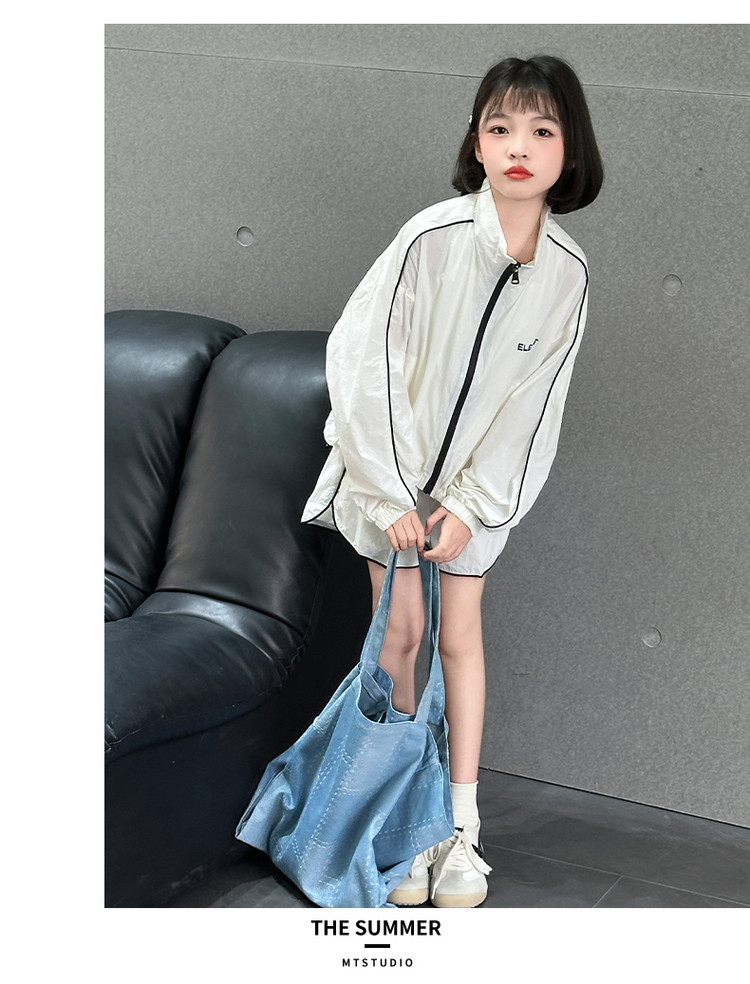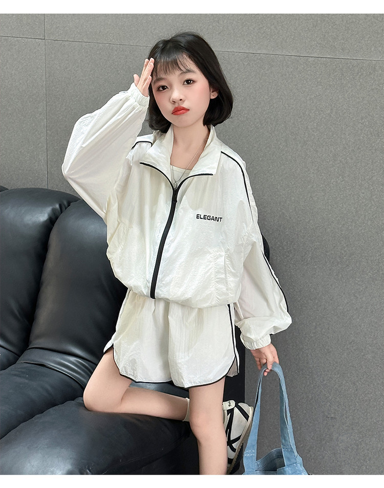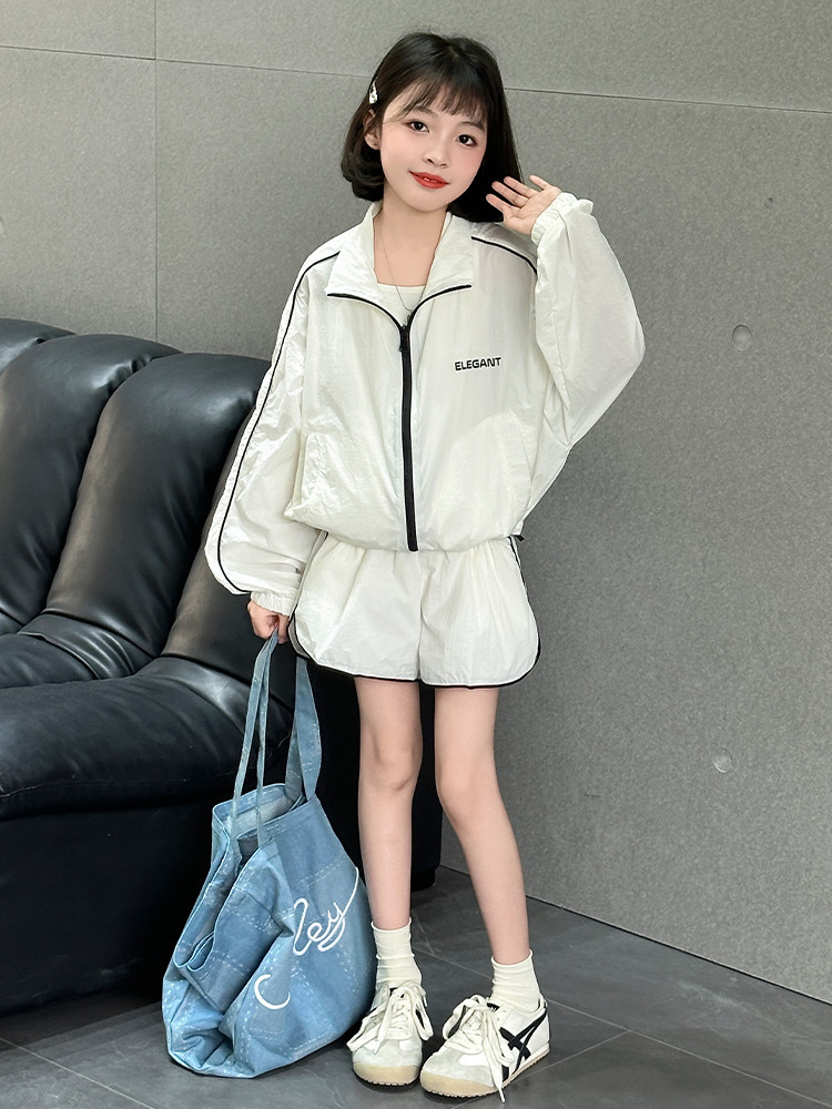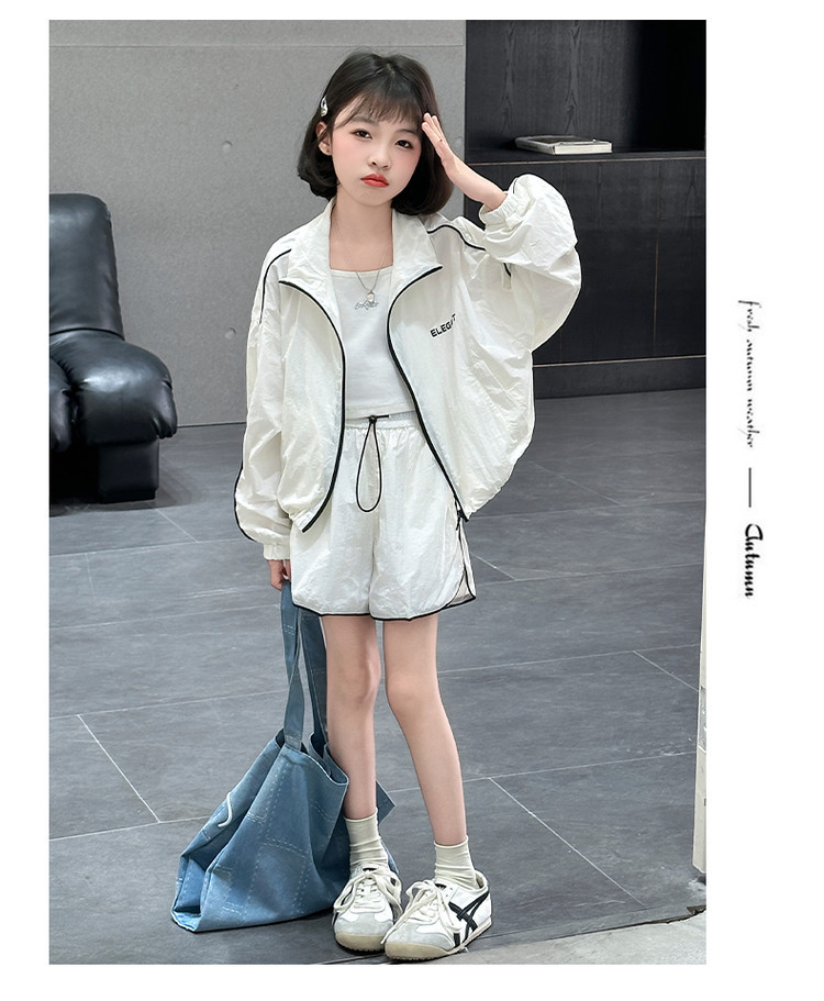 여자 여름 세트 2025 새로운 어린이 서양식 얇은 선 스크린 의류 한국식 반바지 투피스 트렌디