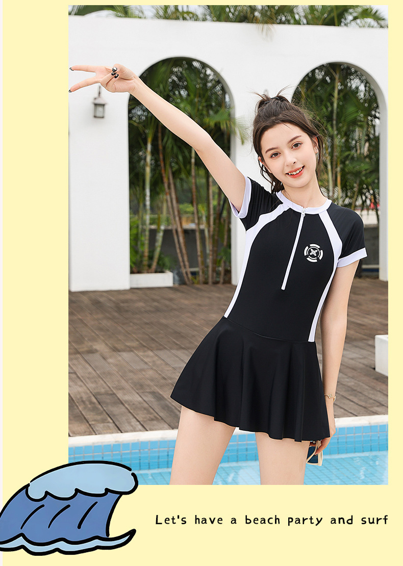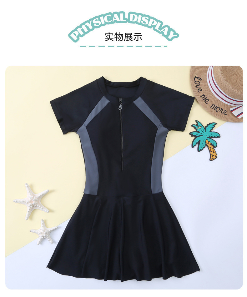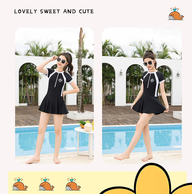 2025 새로운 단색 수영복 어린이 여름 새로운 스타일 여자 중대형 어린이 학생 소녀 원피스 스커트 수영복스토어 가기