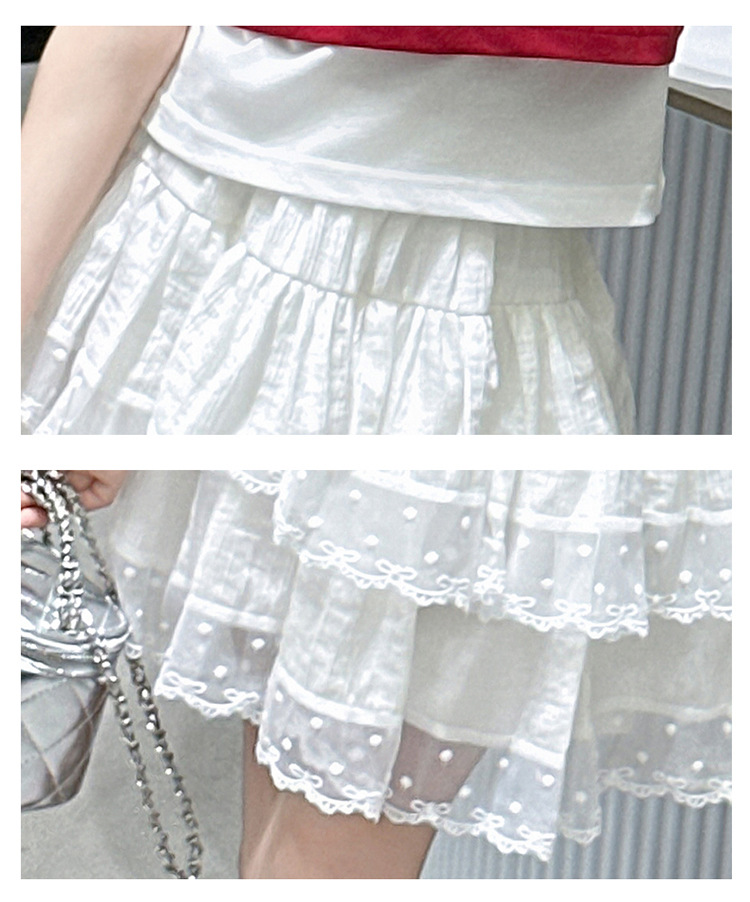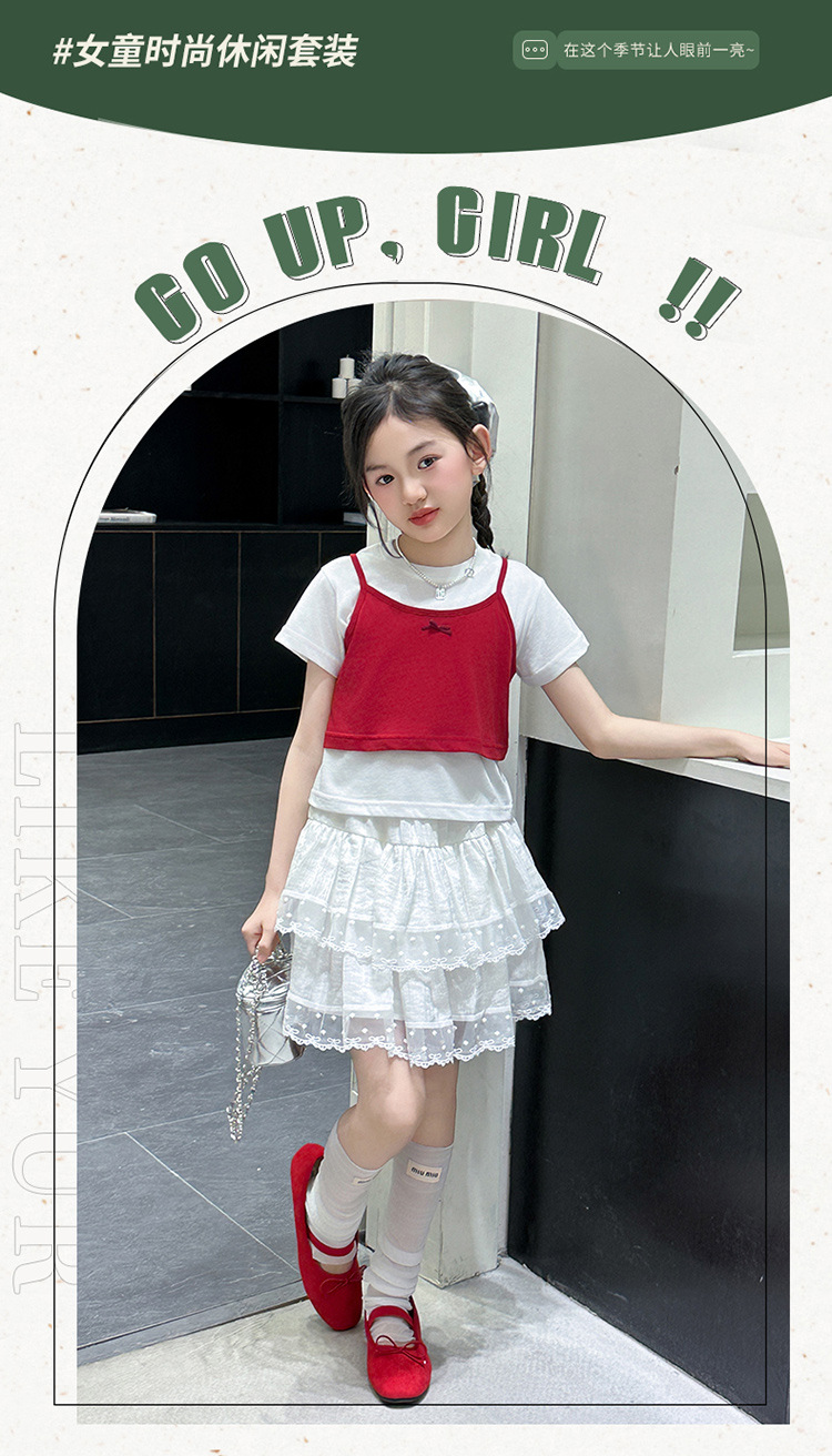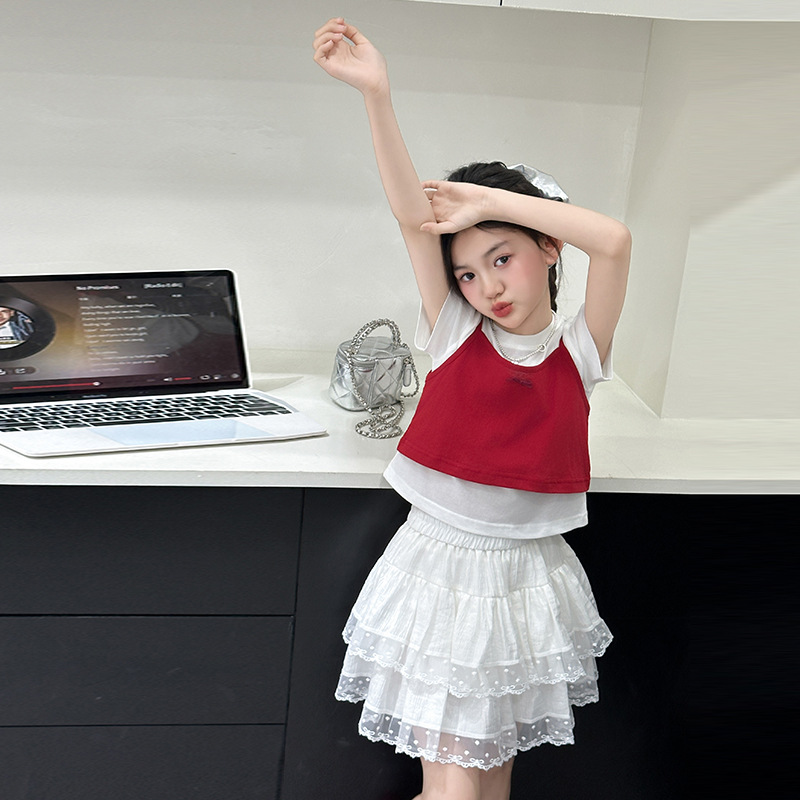 여자 2025 여름 한국 공주 반팔 3 피스 스커트 세트 큰 어린이 스타일 어린이 봄 레이스 공주 스커트
