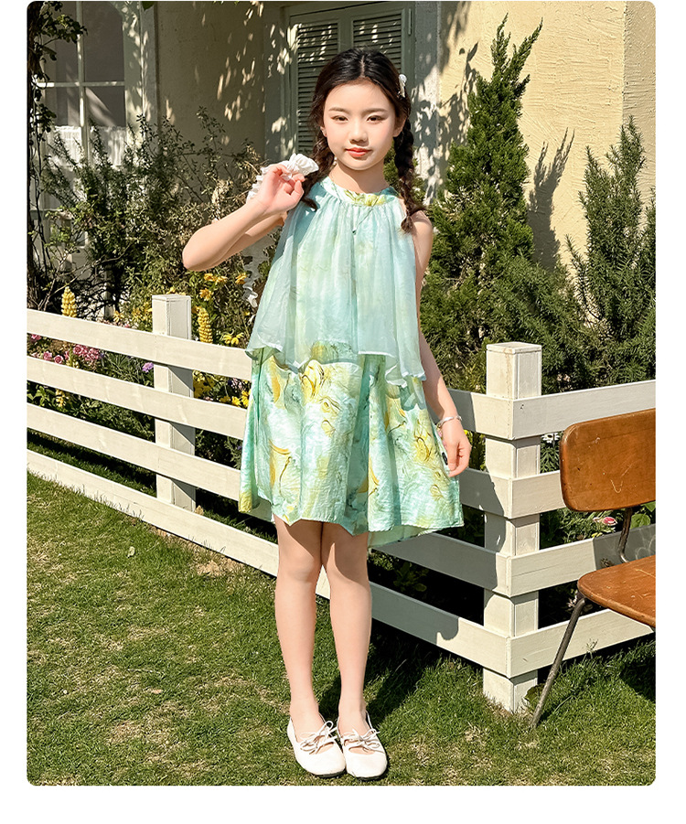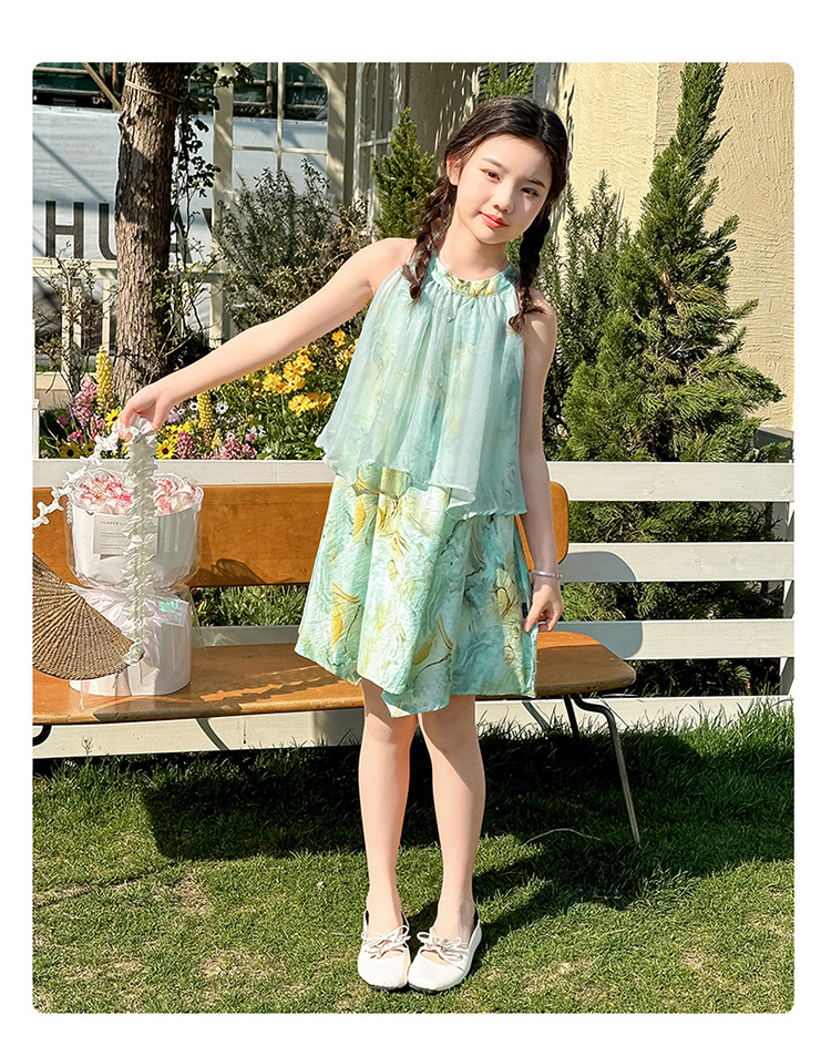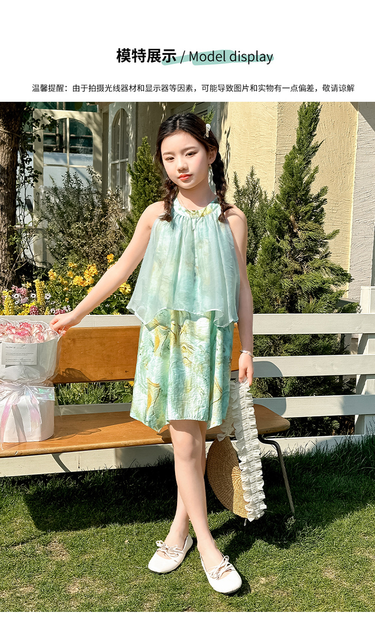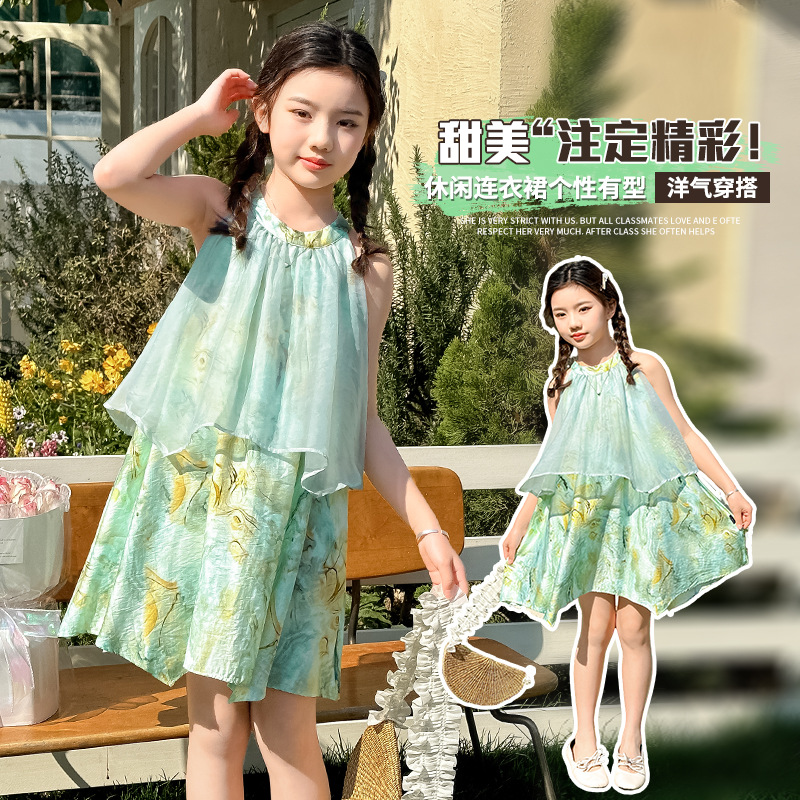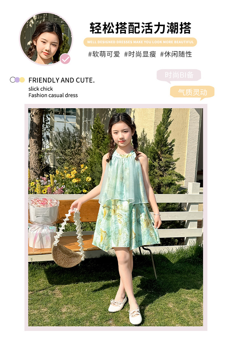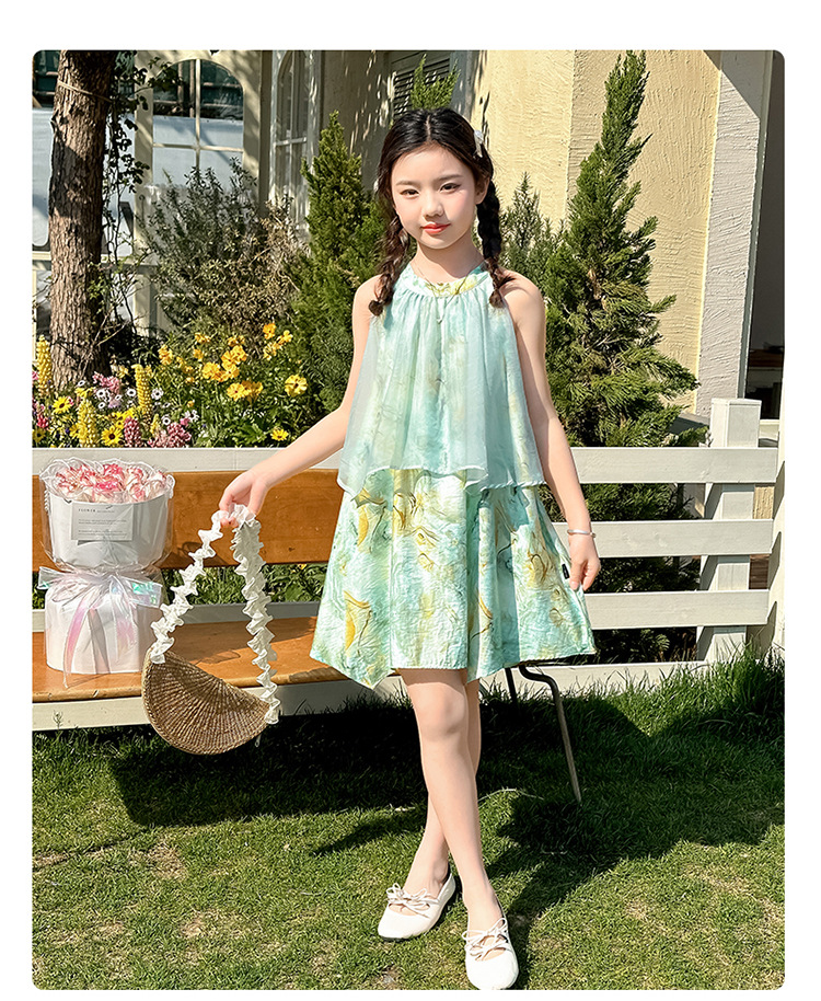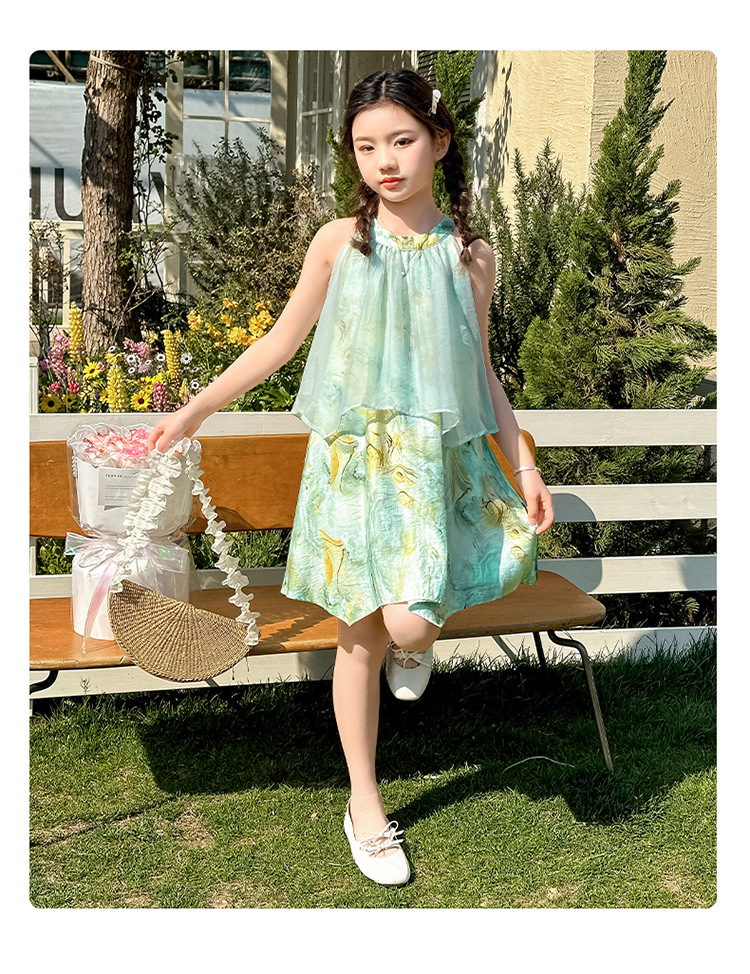 달콤한 과일과 홀터넥 꽃무늬 드레스 여아 꽃무늬 드레스 2025 여름 새로운 스타일 중국 스타일 복원