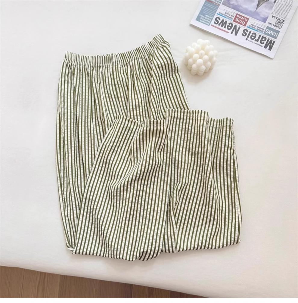 • 2078#녹색 줄무늬 바지 짧고 긴 세트